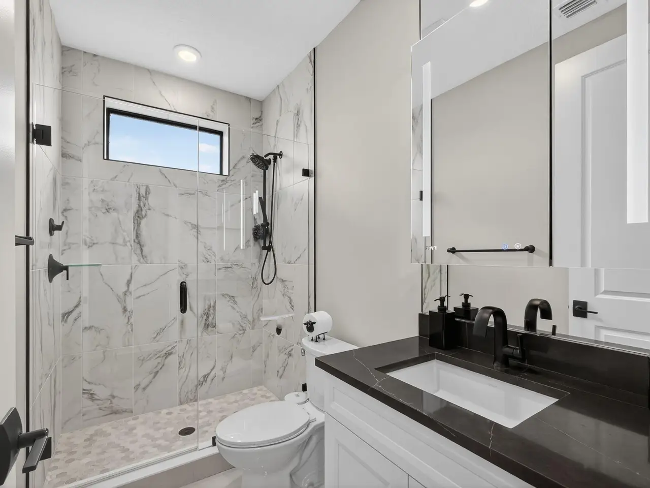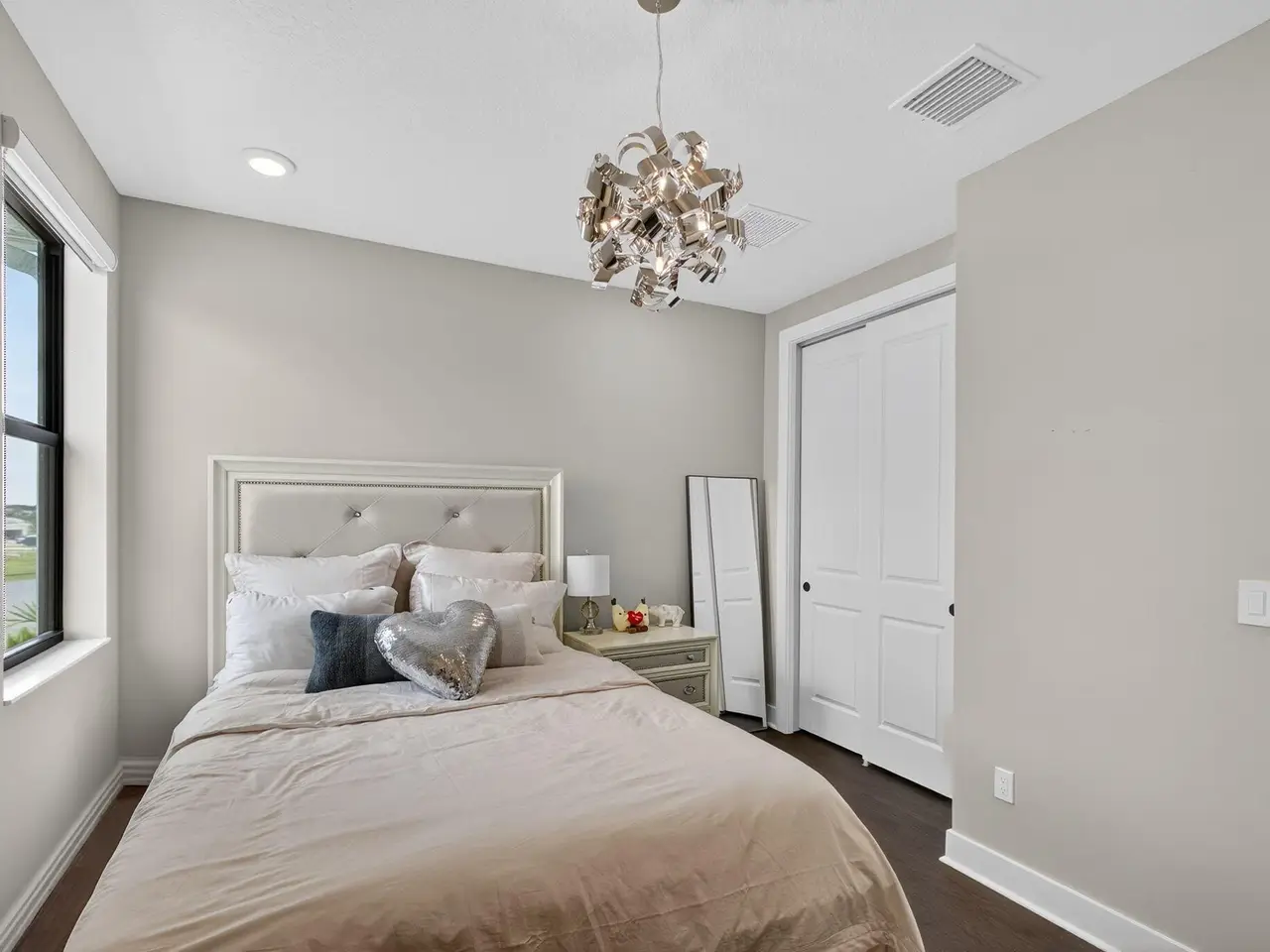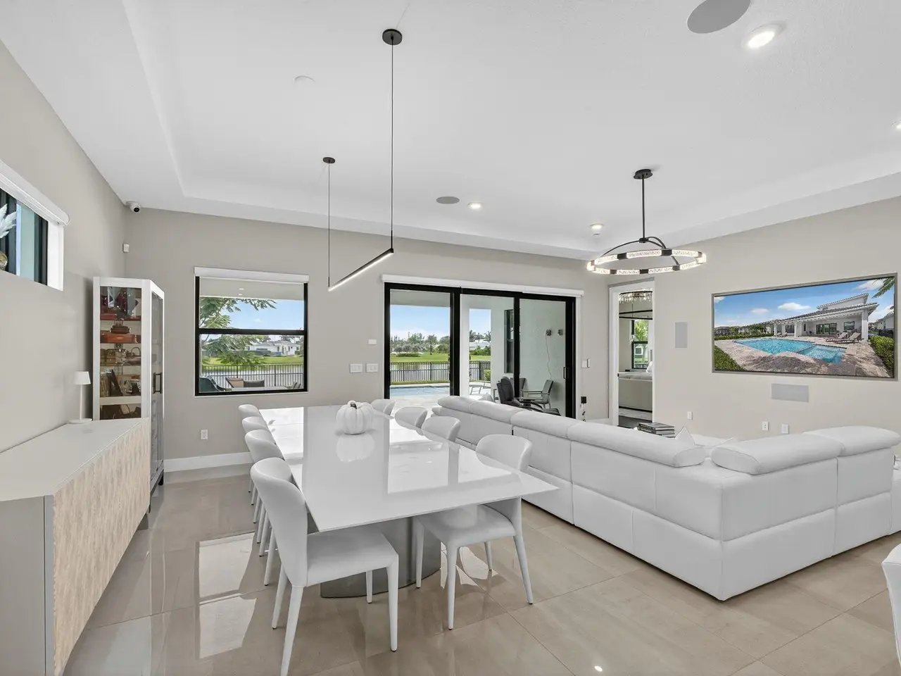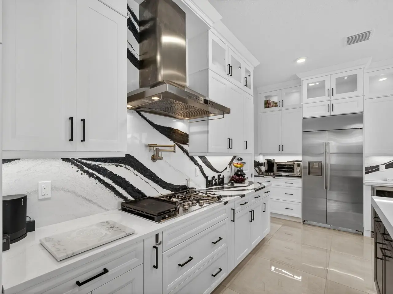 This is luxury Florida living at its finest, located on a waterfront lot, this designer styled home has been thoughtfully crafted with limitless upgrades and high-end finishes. The focal point of this home is the gourmet kitchen with waterfall quartz counters, level 7 soft close cabinets, GE Monogram SS appliances, six burner gas stove top, massive island and custom walk in butlers pantry. The luxurious primary suite features hardwood flooring, an oversized his/her walk in closet, smart mirrors and a spa like bathroom. The outdoor space is a true oasis featuring a heated pool surrounded by travertine decking, water views and a storm smart screening system. Also enjoy smart home technology, complete indoor/outdoor surround sound system and modern home theatre.