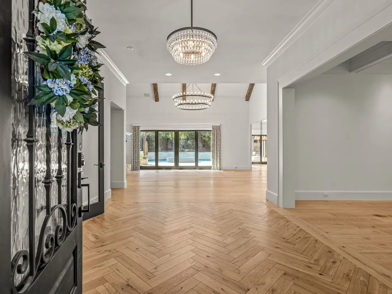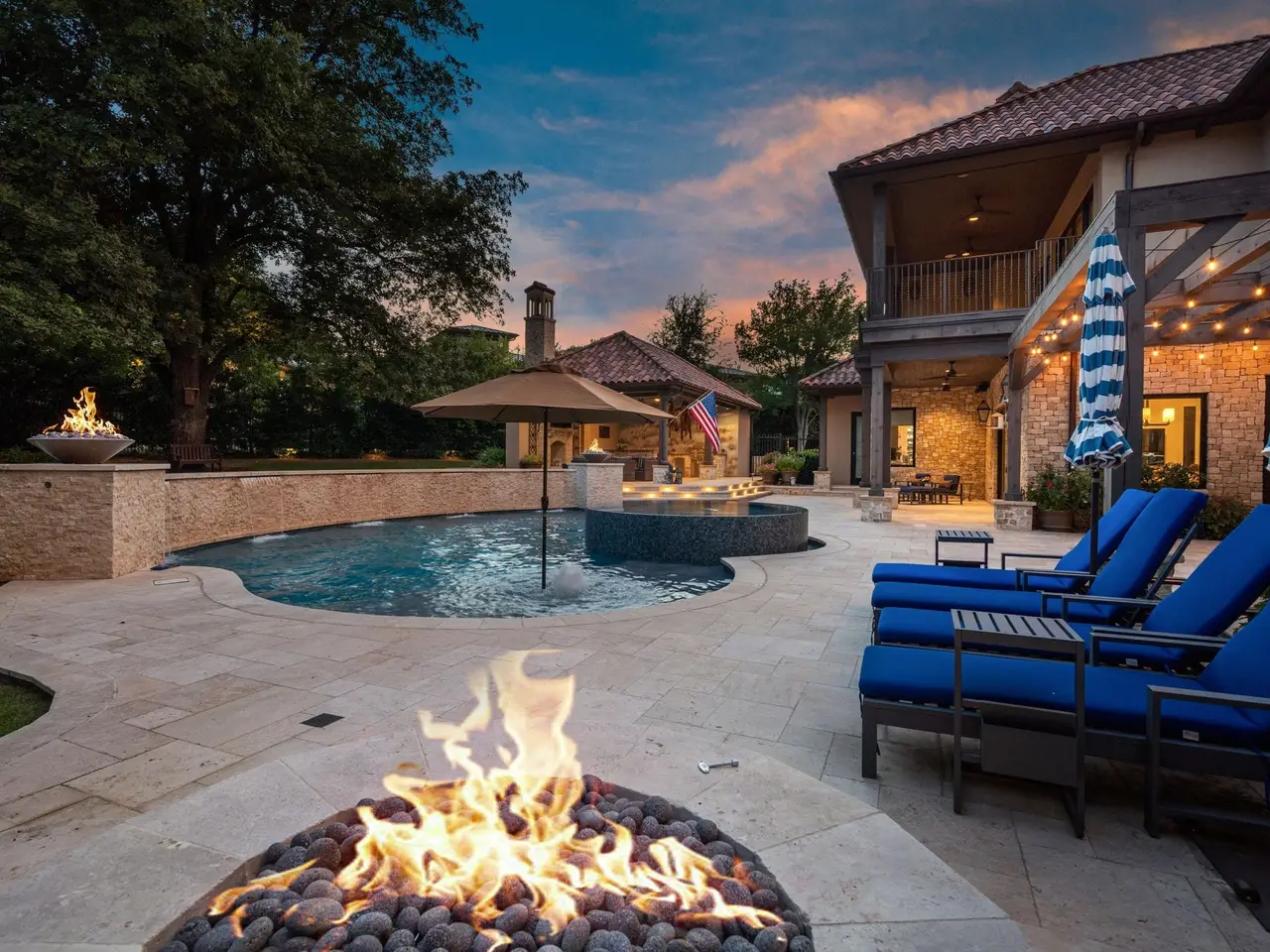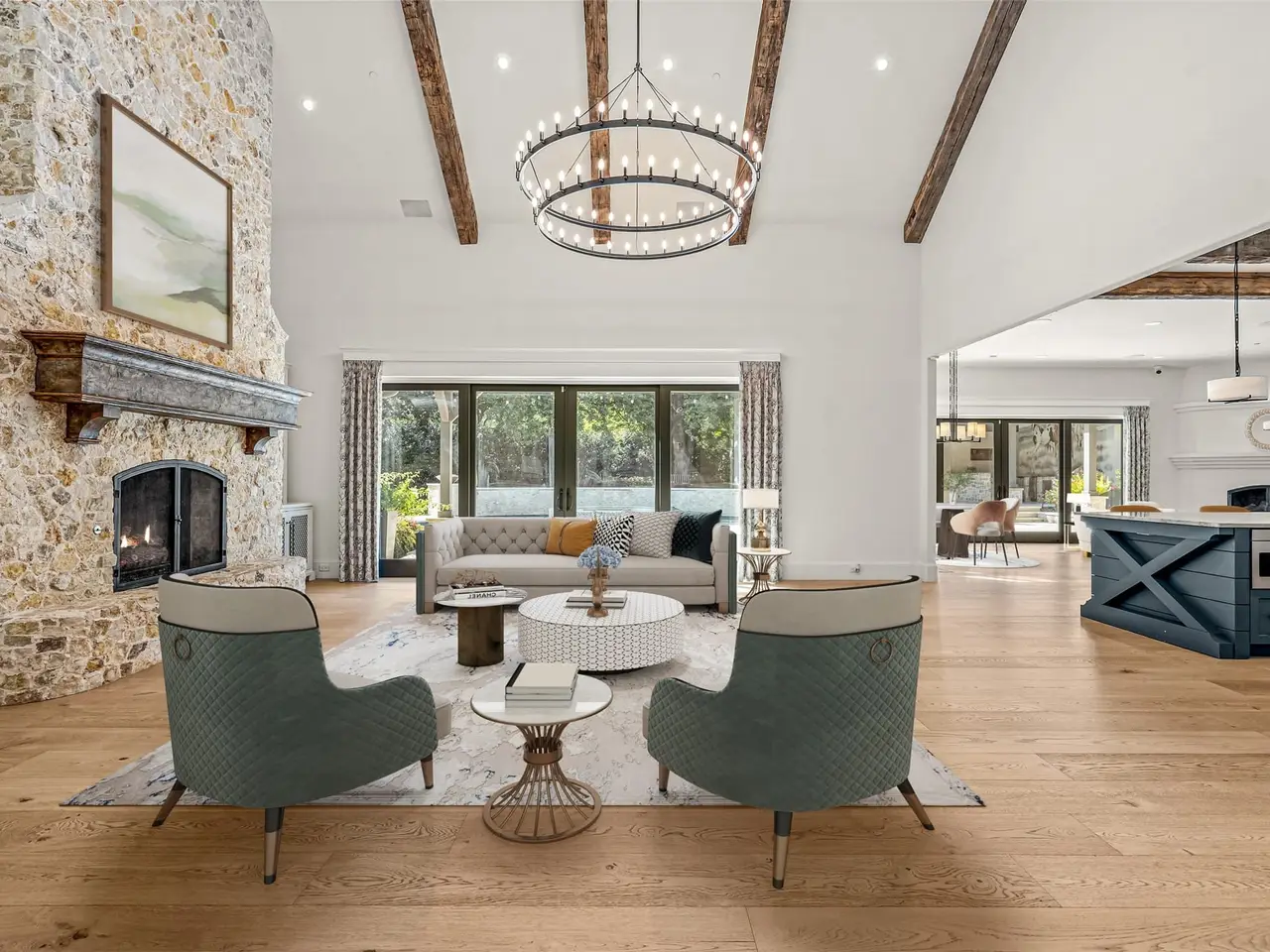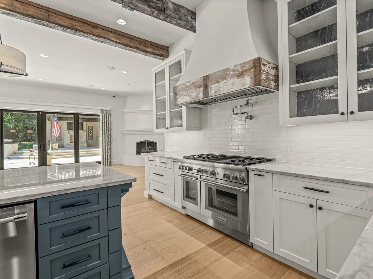 Santa Barbara-inspired estate in Vaquero, privately tucked on a cul-de-sac within the coveted guarded and gated community. This 4 bedroom, 4 full and 3 half bath home features a 4-car garage with expanded driveway for additional parking. The gourmet kitchen is equipped with Thermador appliances, quartzite countertops, custom cabinetry and reclaimed warm beams, complemented by all-new Pella windows and doors and designer light fixtures throughout. The luxurious primary suite offers a sitting area with fireplace, while the spa-like bath is finished with Cremo Delicato marble countertops, Calacatta Gold marble floors and a zero-transition oversized shower. Upstairs youll find two bedrooms, a spacious game room and media room, perfect for entertaining and family fun. The outdoor oasis includes a NEW sparkling Claffey pool and spa, fire pit, pergola with grilling station and lush landscaping. Premier location with access to Westlake Academy IB World School and the option for a Social Vaquero membership available separately.