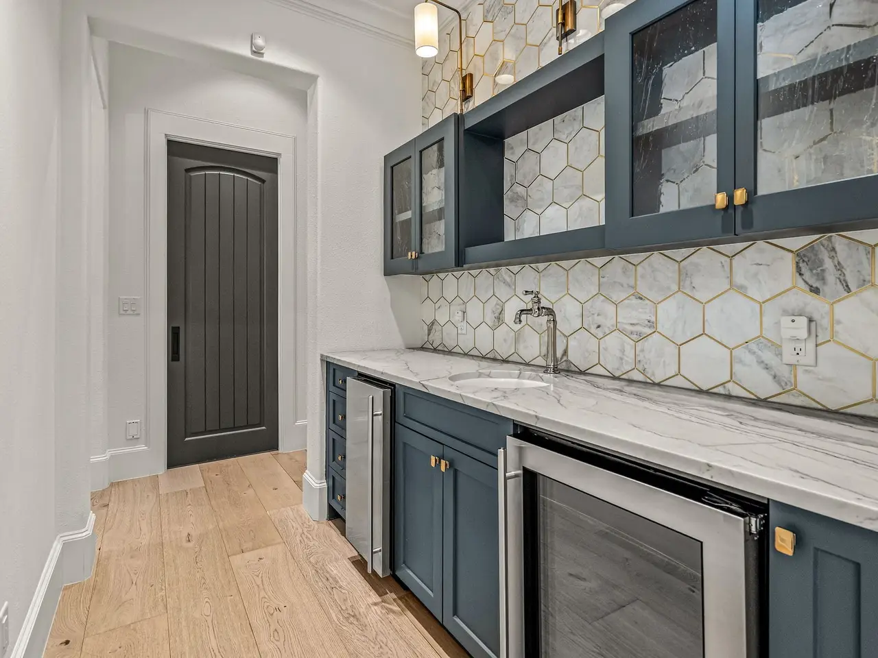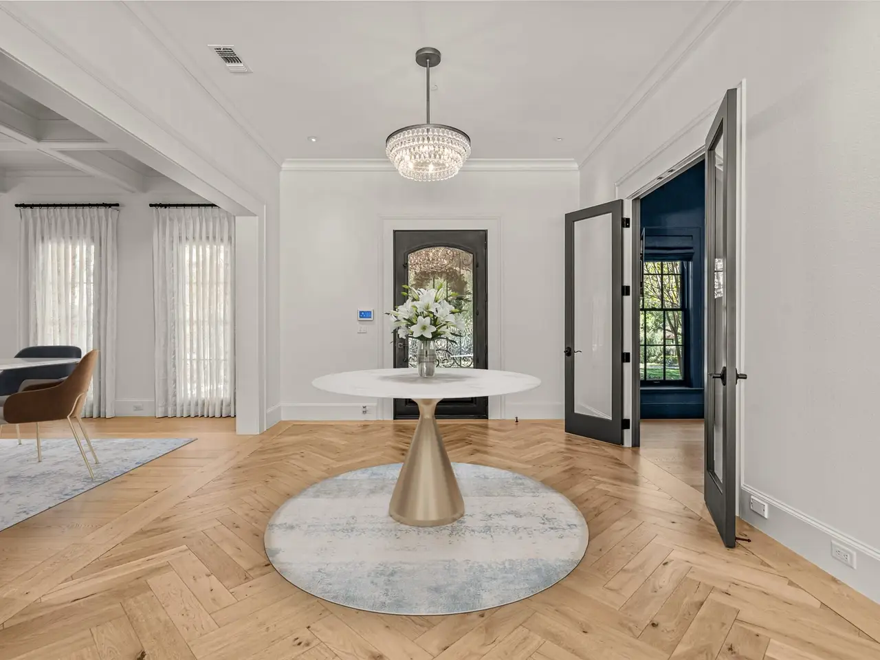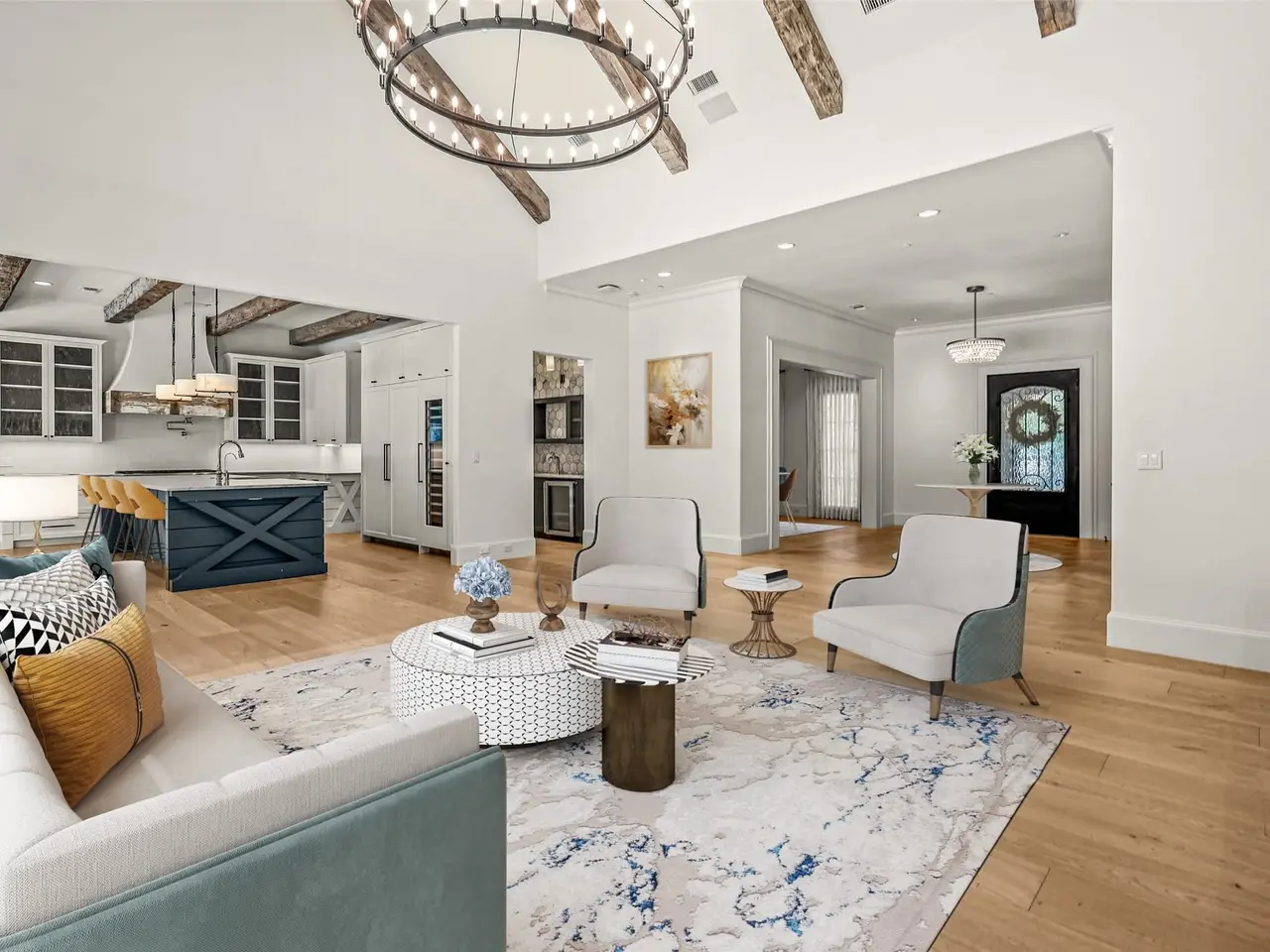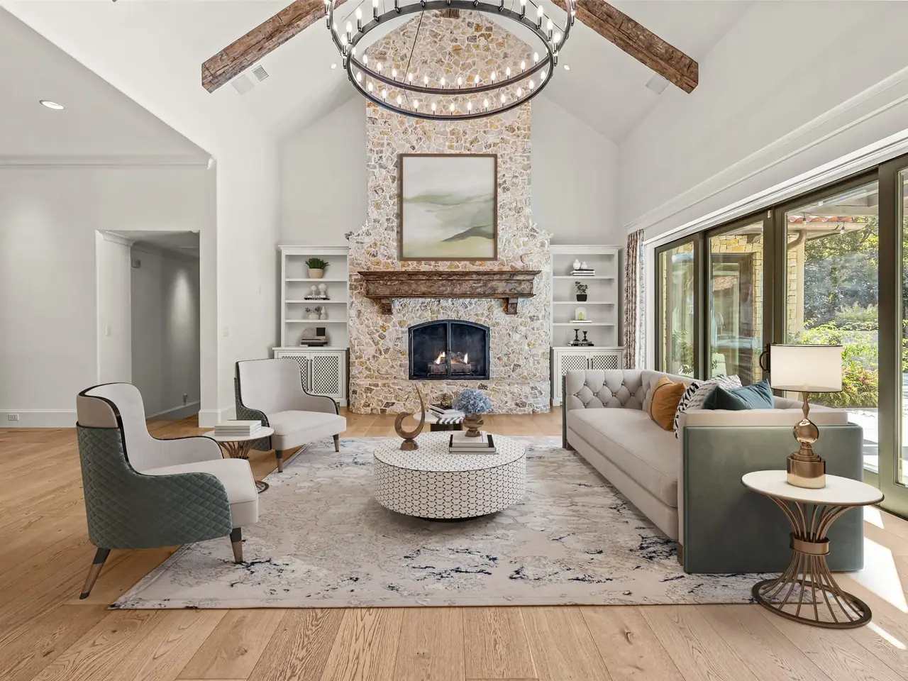 Santa Barbara-inspired estate in Vaquero, privately tucked on a cul-de-sac within the coveted guarded and gated community. This 4 bedroom, 4 full and 3 half bath home features a 4-car garage with expanded driveway for additional parking. The gourmet kitchen is equipped with Thermador appliances, quartzite countertops, custom cabinetry and reclaimed warm beams, complemented by all-new Pella windows and doors and designer light fixtures throughout. The luxurious primary suite offers a sitting area with fireplace, while the spa-like bath is finished with Cremo Delicato marble countertops, Calacatta Gold marble floors and a zero-transition oversized shower. Upstairs youll find two bedrooms, a spacious game room and media room, perfect for entertaining and family fun. The outdoor oasis includes a NEW sparkling Claffey pool and spa, fire pit, pergola with grilling station and lush landscaping. Premier location with access to Westlake Academy IB World School and the option for a Social Vaquero membership available separately.