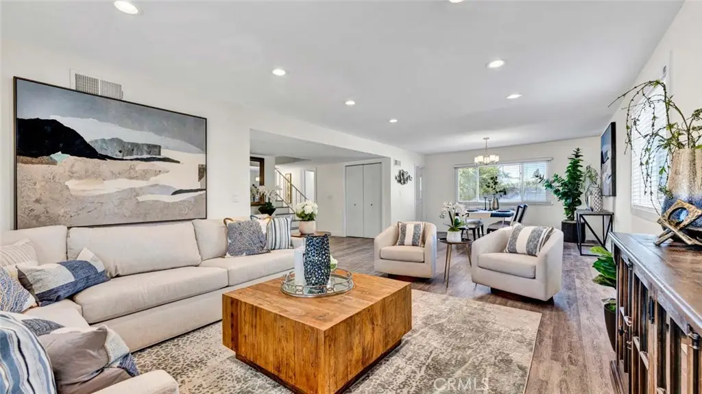 Beautifully upgraded spacious 4-Bedroom, 2.5 Bathroom Westhaven Home nestled on an interior lot in the most desirable tract in Westminster on the border of Fountain Valley, close to Mile Square Park. It boasts 2,778 square feet of open flowing living space with modern upgrades throughout, including: central A/C, dual pane windows, wood laminate flooring, extensive recessed lighting, ceiling fans, and remodeled kitchen and bathrooms. It features gorgeous curb appeal with a 3 car garage, manicured landscaping, and custom hardscape. Take the walkway to the double entry doors that open to showcase the bright open flowing first level that includes an elegant formal living room, formal dining room, family room with an entertainer's wet bar, fireplace, and breakfast nook that open to the gourmet kitchen that boasts Quartz countertops, a breakfast bar, stainless appliances (double ovens, gas cooktop, microwave niche, dishwasher), and white shaker soft-closing cabinetry. There are 4 large bedrooms, including a luxurious primary suite with walk-in closet, spacious ensuite bathroom with dual sinks & a walk-in shower. Step through dual pane sliding glass doors to the expansive park-like backyard that is extremely private with no one living behind, block wall fencing, lawn, and large patio that is perfect for outdoor BBQ's, entertaining, and relaxing in your own private oasis. Additional highlights include an inside laundry room, guest bath with dual sinks, and a direct access 3-car garage with a large driveway. Enjoy outdoor living just steps away from Cloverdale Park and within walking distance to Mile Square Park, with nearby shopping, dining, and recreation. This is a rare opportunity to own a spacious, move-in-ready home in one of Westminster's most sought-after neighborhoods.