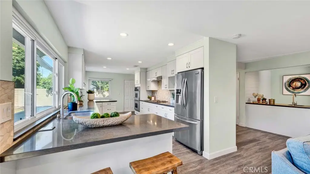 Beautifully upgraded spacious 4-Bedroom, 2.5 Bathroom Westhaven Home nestled on an interior lot in the most desirable tract in Westminster on the border of Fountain Valley, close to Mile Square Park. It boasts 2,778 square feet of open flowing living space with modern upgrades throughout, including: central A/C, dual pane windows, wood laminate flooring, extensive recessed lighting, ceiling fans, and remodeled kitchen and bathrooms. It features gorgeous curb appeal with a 3 car garage, manicured landscaping, and custom hardscape. Take the walkway to the double entry doors that open to showcase the bright open flowing first level that includes an elegant formal living room, formal dining room, family room with an entertainer's wet bar, fireplace, and breakfast nook that open to the gourmet kitchen that boasts Quartz countertops, a breakfast bar, stainless appliances (double ovens, gas cooktop, microwave niche, dishwasher), and white shaker soft-closing cabinetry. There are 4 large bedrooms, including a luxurious primary suite with walk-in closet, spacious ensuite bathroom with dual sinks & a walk-in shower. Step through dual pane sliding glass doors to the expansive park-like backyard that is extremely private with no one living behind, block wall fencing, lawn, and large patio that is perfect for outdoor BBQ's, entertaining, and relaxing in your own private oasis. Additional highlights include an inside laundry room, guest bath with dual sinks, and a direct access 3-car garage with a large driveway. Enjoy outdoor living just steps away from Cloverdale Park and within walking distance to Mile Square Park, with nearby shopping, dining, and recreation. This is a rare opportunity to own a spacious, move-in-ready home in one of Westminster's most sought-after neighborhoods.