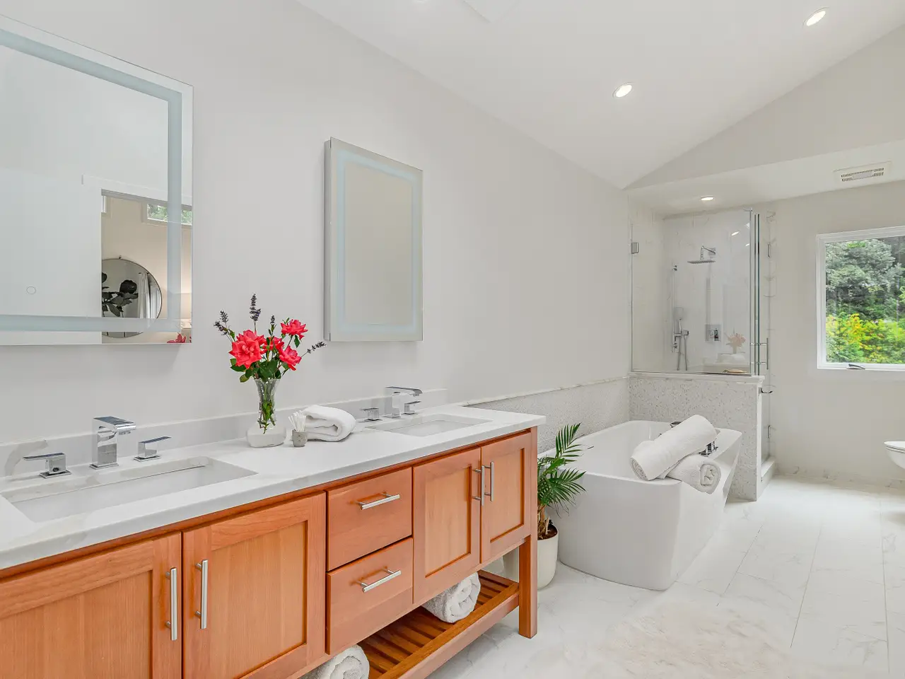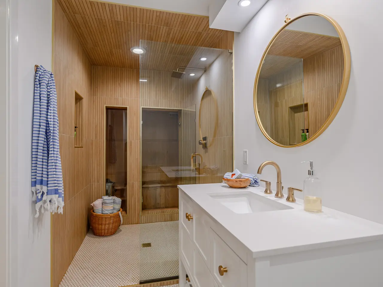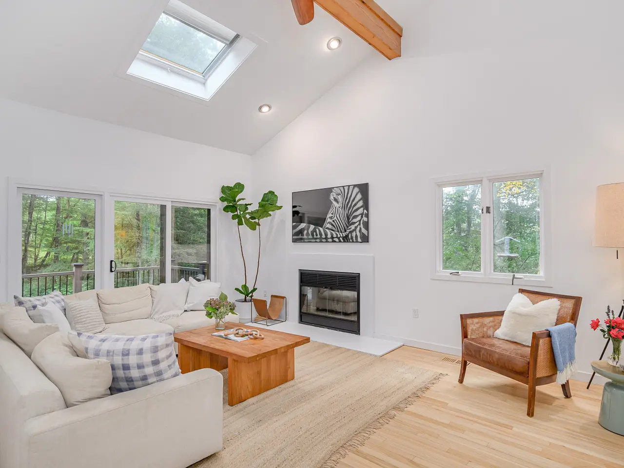 Welcome to a stunning blend of contemporary and Colonial architecture featuring the "Scandifornia" aesthetic-where Scandinavian simplicity meets California warmth. Set on over two acres of sprawling, private grounds in highly sought-after lower Weston, this light-filled contemporary Colonial creates an effortless, elegant, and cozy atmosphere. Every room in this happy home is bright and airy, designed with clean lines, a neutral palette, and thoughtful modern updates. A beautifully updated custom kitchen, flows seamlessly into the dining room with fireplace, the family/playroom, and the spacious living room with 2nd fireplace. All main living areas open through sliders to a new composite wraparound deck, ideal for indoor-outdoor living and entertaining. Rounding out the first floor is a versatile bedroom, adjacent fully updated bath and recently updated mudroom/laundry room with built-ins and half bath. Upstairs the primary suite boats radiant-heated floors, soaking tub, frameless glass shower, and a custom Berth cherry double vanity with quartz countertop offering a true retreat. Two additional oversized bedrooms share a beautifully updated hall bath. The brand-new, fully finished walkout lower level adds over 1,600 square feet of beautifully designed living space-perfect for working from home, hosting friends, or accommodating extended family-this level has it all. Anchored by an expansive media/great room, the space also features a sleek wet bar with sink, beverage fridge, and a dining/lounge area-ideal for entertaining or casual nights in. A dedicated home gym provides space to recharge, while the luxurious full bath includes an epic sauna for the ultimate in wellness and relaxation. This space offers 5th bedroom/au-pair/in-law suite flex and so much more! Whether your'e savoring the peaceful privacy of the lush grounds or enjoying the home's bright, contemporary interior, this is a unique opportunity to own a home that feels as good as it looks.