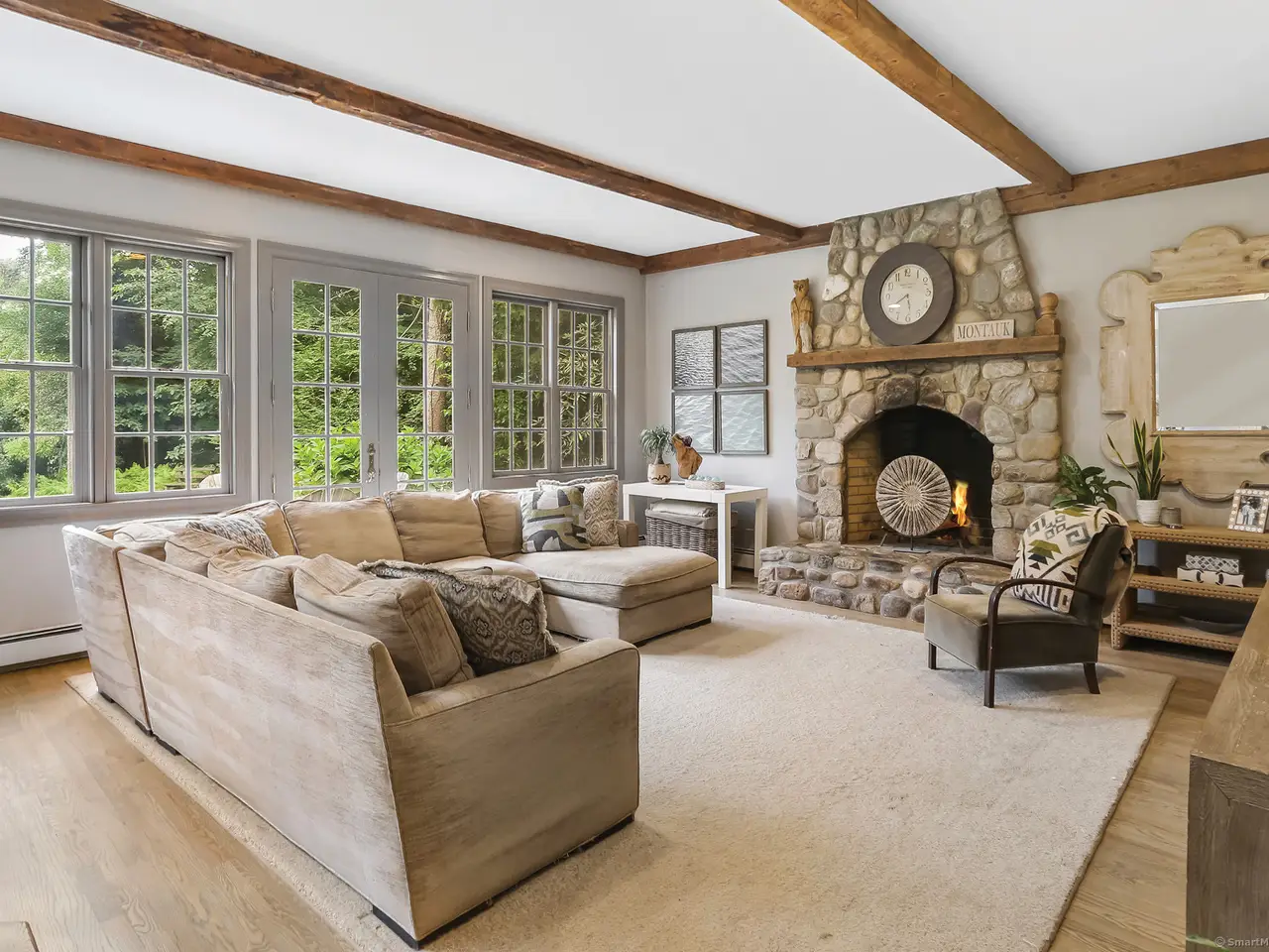 Welcome to this beautifully maintained 1945 stone-front Cape in the heart of Old Hill. Loved by the same family for 22 years, it radiates warmth and character. With five bedrooms, 5.5 baths, and two flexible spaces for home offices, it offers comfort and versatility, including a first-floor suite ideal for guests or in-laws. The light-filled kitchen flows into an inviting dining area and cozy sunken family room with a stunning river-rock fireplace-perfect for gatherings or quiet evenings. French doors open to a level backyard with a bluestone terrace, outdoor fireplace, and grilling area, creating an ideal setting for entertaining. A three-car tandem heated garage, mudroom, pantry, and laundry room add practicality, while a gracious dining room and front-to-back living room with built-ins and a second fireplace set the stage for special occasions. Upstairs, the serene primary suite offers a balcony, spa-inspired bath, and dressing room. Three additional bedroom, two additional full baths and a loft provide space for everyone. The finished lower level features a playroom, gym area, full bath, and ample storage with walk-out access to the garage. Move-in ready with room to personalize, this special home invites you to start your next chapter in one of Westport's most desirable neighborhoods. Don't miss the chance to make it yours!