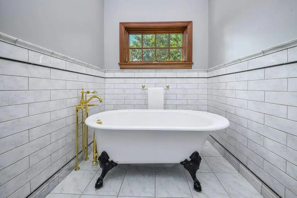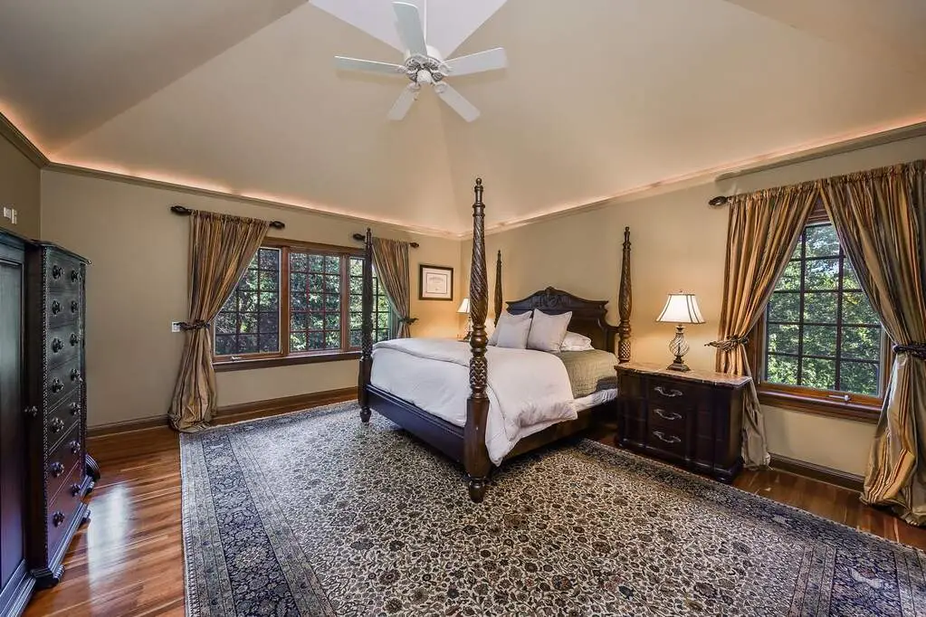 Luxurious primary suite with spa-like marble bathroom
