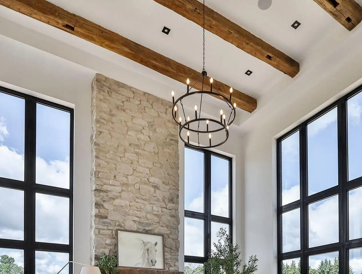 Authentic farmhouse beams & 22-foot ceilings