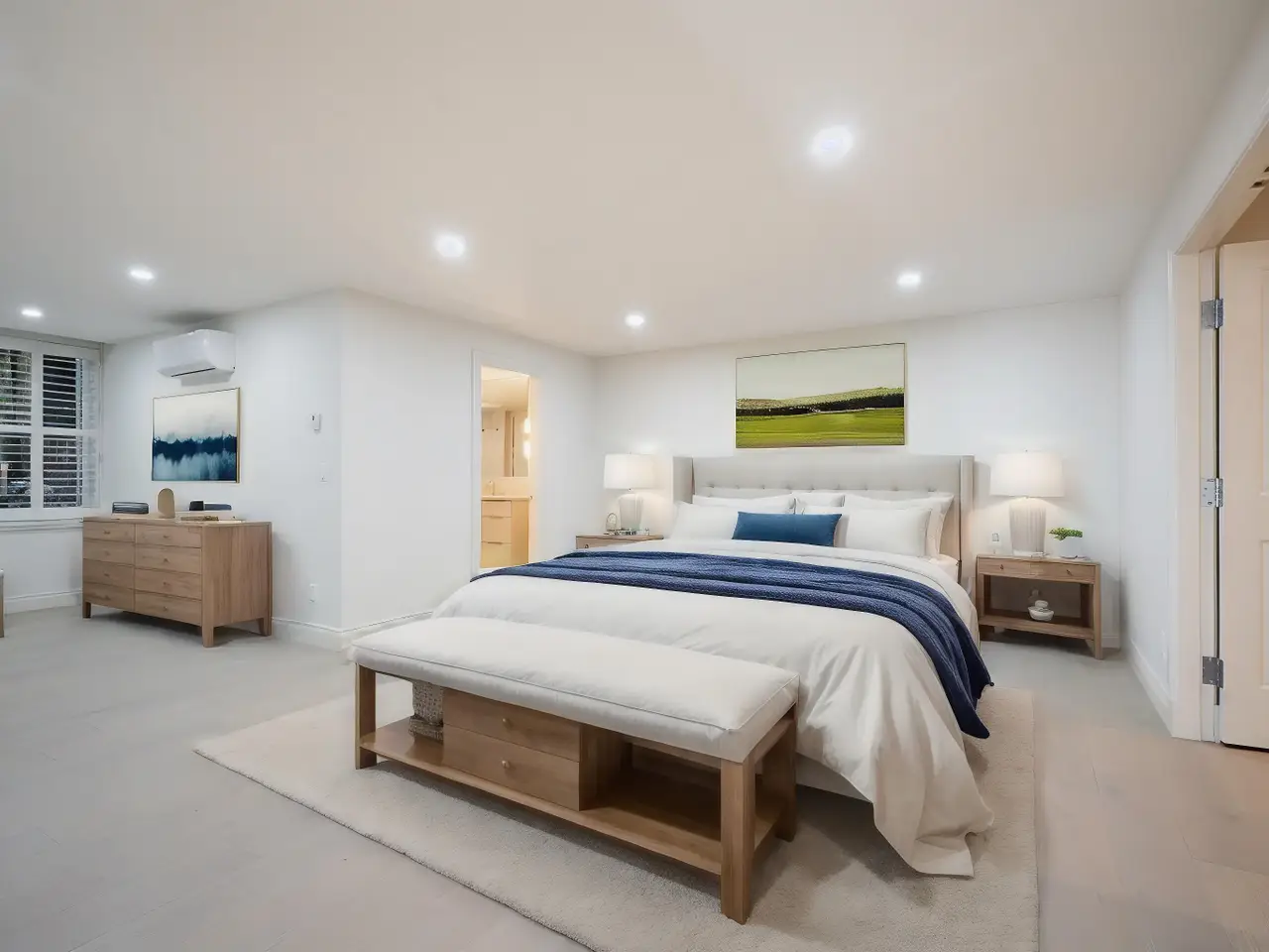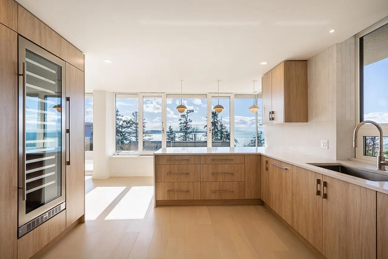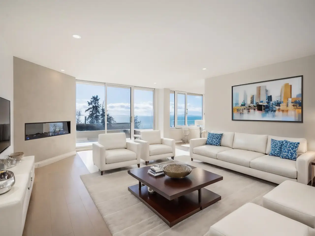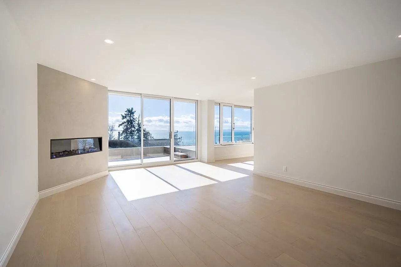 Experience the epitome of luxury living at The Contessa! One of White Rock's premier low rise concrete buildings, this magnificent SW corner unit offers unobstructed panoramic views of the ocean and islands. Boasting 2395 sqft of living space on a single level, this residence includes a beautiful outdoor patio and access to a private side yard. Step into a realm of elegance with high-end renovations throughout. The kitchen features new cabinetry, stone counters, and integrated Thermador appliances, including a built-in coffee machine and wine fridge. The primary bedroom is a sanctuary, offering a spa-like ensuite and a generously sized walk-in closet. Heat Pump, A/C, EV charger included and with only 2 homes per level, privacy is a given.