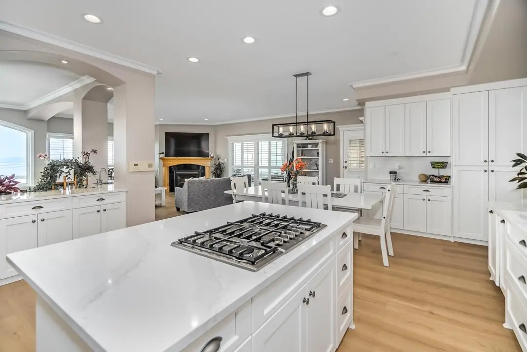 SPECTACULAR OCEAN VIEWS. The property is a secure, gated entertainer's delight. Upper floor features a newer open large bright kitchen with adjacent dining/living area with access to the private covered heated sundeck to soak in the ocean views this floor also featured a powder room and primary bedroom with five pc ensuite, fireplace and walk-in closet. Main floor has three bedrooms (one with an ensuite) and office. Downstairs has a two bedroom self-contained in-law suite with laundry, fireplace and separate entrance. House has newer engineered hardwood flooring, newer carpets, paint, crown moulding, Navien hot water system with in-floor hot water heat throughout. Maintenance free yard with inground water system. Bonus extra parking outside garage. This home truly is extremely well cared for and a pleasure to show your client.