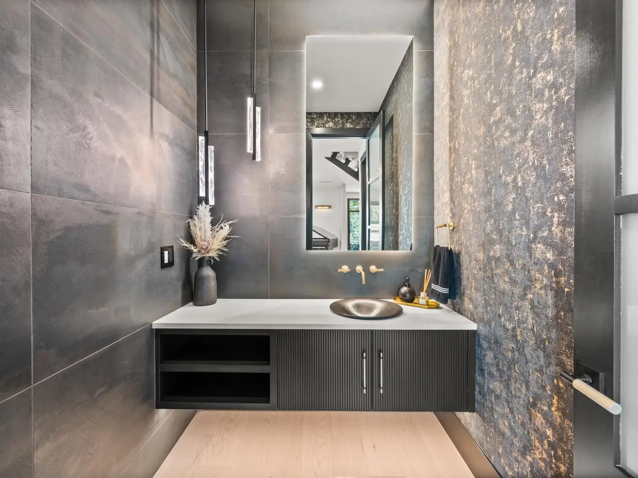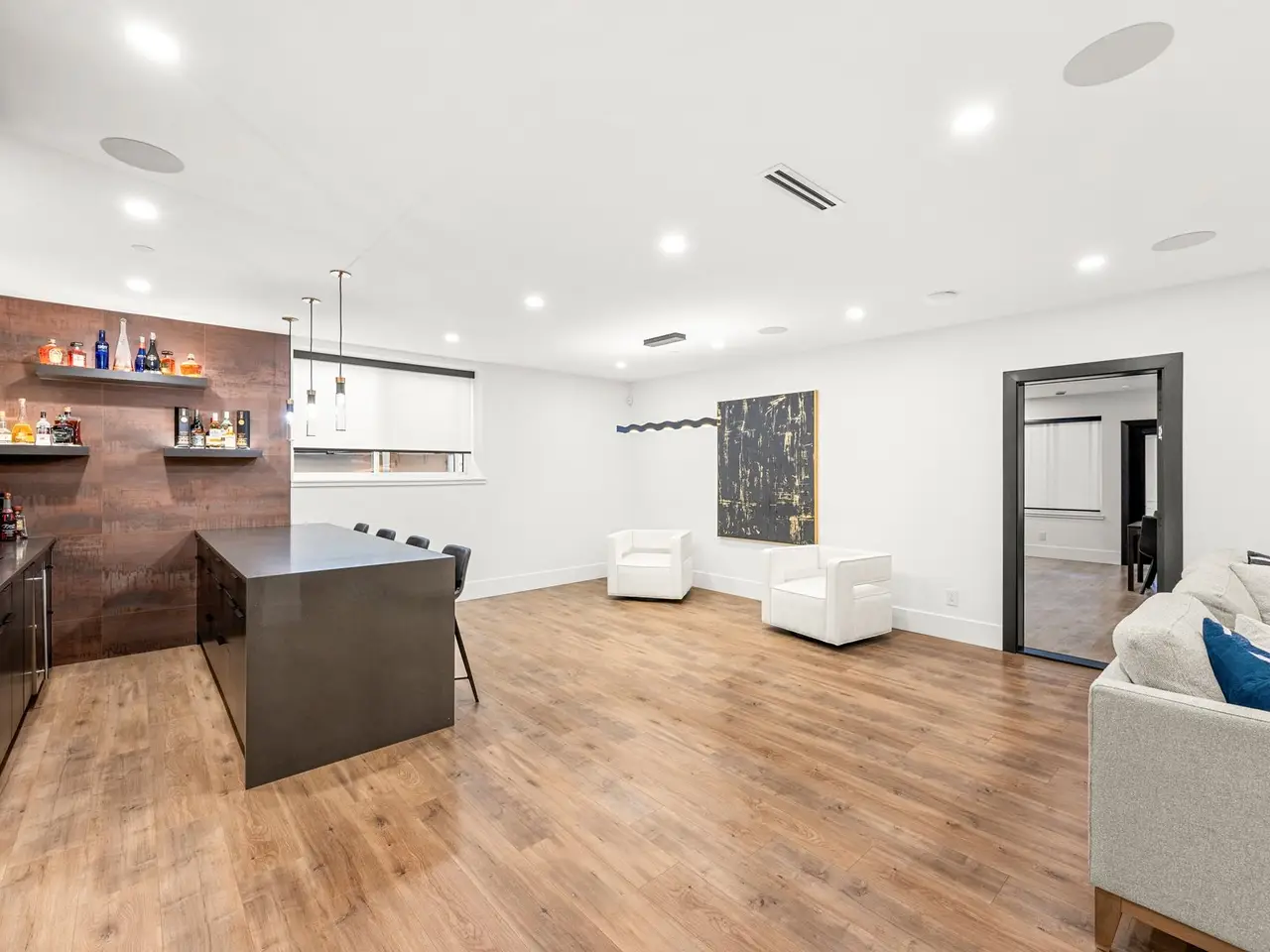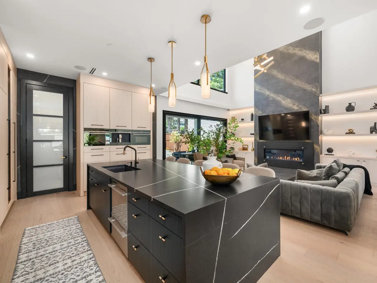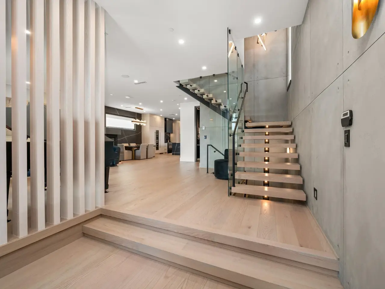 Stunning design & quality construction by Rychter Custom Homes. Elegant Hardwood, floating staircase, abundant light, & extensive wood features are just the start. Spacious covered deck access from living room with view. Radiant heat, A/C, automated blinds, Control 4 - smart home, on demand H/W, Retractable B/I Vac, Shinnoki Panel Cabinetry with integrated Liebherr Fridge, wine cooler & 24" Freezer. Fisher Paykel appliances, B/I Coffee/Espresso & Steam Oven. Spice kitchen. Covered outdoor living space with built-in barbecue station. Primary suite has open glass wall to the sundeck with view of the mountains & ocean. Additional balcony off back bedroom. 1-bed legal suite is also registered with Airbnb. Basement offers rec room with wet bar, wine storage & sauna.