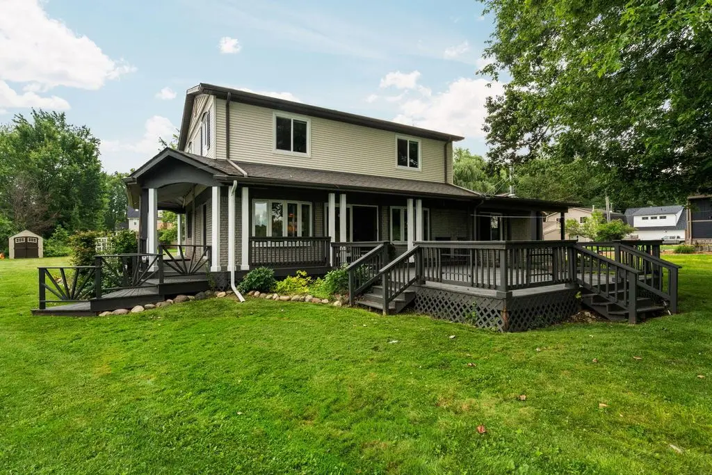 Lakefront Gem on Gallagher Lake, part of the Portage Chain of Lakes. Premier corner lot with 337 feet of newer seawall, offering panoramic, unobstructed views of Gallagher Lake with tranquil sights & sounds of nature in every season. Inside, the home offers an open-concept kitchen with a spacious island & sweeping lake views from nearly every window. Living room with fireplace & family room, perfect for entertaining. 4 bedrooms & 2 full baths including a primary suite with en-suite bath. The expansive yard offers plenty of space for outdoor funC/B?B=and ample room for all your boats & water toys. Enjoy lake life, including the terrific annual Gallagher fireworks show from your own front yard. Soak in the views from sunrise to sunset they are truly unforgettable!