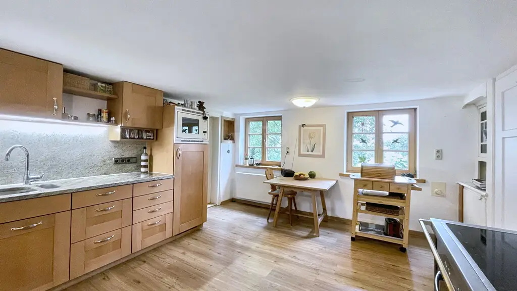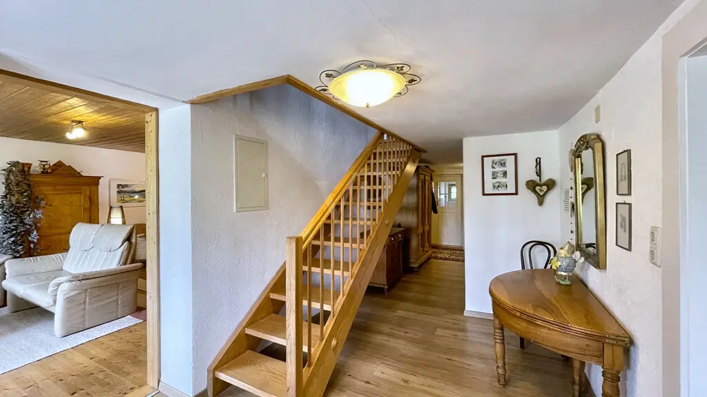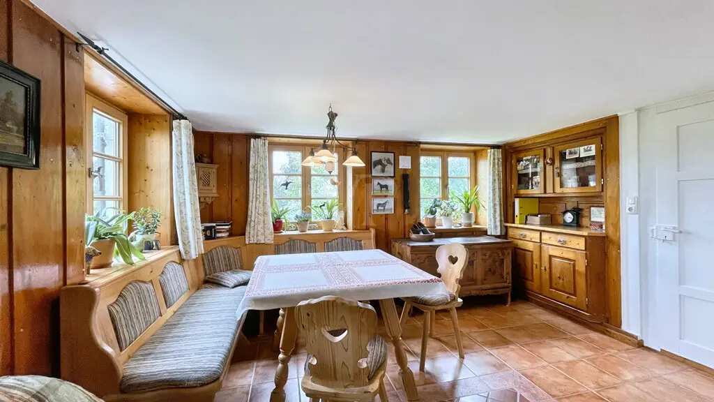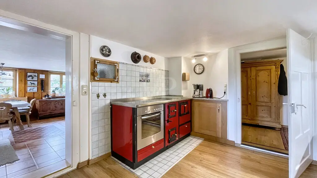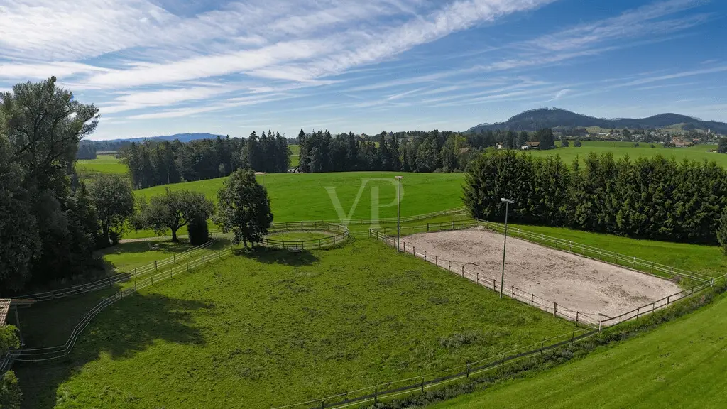Secret Sale Description Nestled between rolling hills, expansive meadows, and ancient trees, this property exudes a sense of peace and security at first glance. This equestrian center combines the traditional with the modern in a unique way—a place where nature, animals, and people live in harmony. The main building, a stately Allgäu farmhouse with a red gabled roof, was completely renovated in 1998. The property was lovingly designed and remains in a condition that still conveys a sense of security and quality of life. Inside, the house welcomes you with warm wood, a cozy tiled stove, light-filled rooms, and a parlor that exudes the character of a true home. A bathroom with a tub and shower completes the modern comforts. The property offers the best conditions for the animals: spacious paddocks, a well-maintained riding arena with floodlights, bright and functional stables with spacious stalls, a large hay storage area, and space for small animals. Chickens roam freely in the greenery, horses curiously poke their heads out of their stalls—it's a farm that's alive. The surrounding area is characterized by magnificent scenery, unobstructed views, and proximity to Wiggensbach, where all major amenities are easily accessible. Yet the farm enjoys a secluded setting – idyllically nestled in greenery, with views of the Allgäu Alpine foothills. The current owners have cherished, cared for, and loved the property for decades. They hope that buyers will appreciate this place just as much – whether for horse breeding, as a family home, or as a retreat in harmony with nature. Location Description Situated at the foot of the Blender mountain (1,072 m above sea level), the municipality of Wiggensbach, with its two districts of Ermengerst and Westenried, is rural yet relatively close to the city, as it is only about 8 kilometers northwest of Kempten (Allgäu). With approximately 5,040 inhabitants, it is one of the larger municipalities in the Oberallgäu district. On the market square in the town center, directly next to the Catholic Church of St. Pankratius, the weekly market offers the opportunity to purchase regional products once a week – every Wednesday. Furthermore, the Farmers' Museum in the Wiggensbach Information Center (WIZ) will transport you to the town's historical past. A lively club life offers opportunities for sporting, musical, or cultural activities. Wiggensbach's 27-hole golf course offers the highest tee shot in Germany. An outdoor pool, an indoor pool in the chapel garden, and numerous hiking and cycling trails round out the recreational offerings, along with activities such as aerobics, badminton, boxing, gymnastics, athletics, skiing, tennis, table tennis, gymnastics, and volleyball. Customs such as decorating the fool's tree on January 6th, raising the maypole on May 1st, and "The Other Advent" in the Catholic parish church have been established events within the community for several years. General medical care is available in Wiggensbach. In addition, you will find several physiotherapists, a dentist, and a pharmacy. Shopping options for everyday needs are also available. Wiggensbach offers an Edeka supermarket, an organic cheese dairy (which can also be visited), several bakeries, and the multi-certified Schuster butcher shop in the Ermengerst district. A daycare center, newly built in 2018, a kindergarten, and a primary school are firmly established in the village center. Distances to the nearest larger cities: -Kempten: 8 km -Oberstdorf: 47 km -Memmingen: 34 km -Munich: 133 km