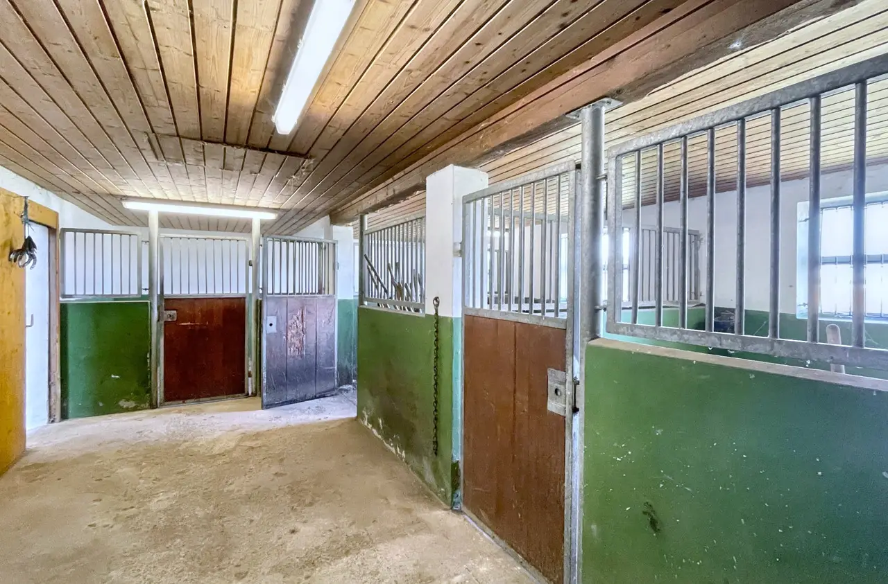 Welcome to a very special estate that combines endless possibilities for self-realization! Nestled in a picturesque landscape, this unique stud farm is a real gem for horse lovers, individualists and visionaries. Here, where "the smallest stud farm in Bavaria" was once located, you can still feel the magic of times gone by - and the potential for a vibrant future! The spacious grounds of approx. 8600 m² include six well-kept stables that are just waiting to be filled with life again. Whether you are an ambitious leisure rider, a professional horse owner or simply a nature lover with a heart for animals - this farm offers ideal conditions. However, this property is not just a dream come true for horse lovers: spacious storage areas in the stables with garages, including for carriages, equipment or vintage cars, open up numerous possibilities for use - whether as a hobby, craft or rental. The existing buildings offer space for creative ideas: Extension, studio, guest accommodation or quite simply an idyllic home with soul and history with a ceiling height of 2.50 m. The location? Close to nature and yet well connected - an ideal retreat with a real quality of life. Fulfill your dream of country living with character, history and passion. This farm doesn't just tell stories - it's waiting for the next one. Yours! Arrange a viewing appointment now - and fall in love with a piece of Bavarian cultural heritage!