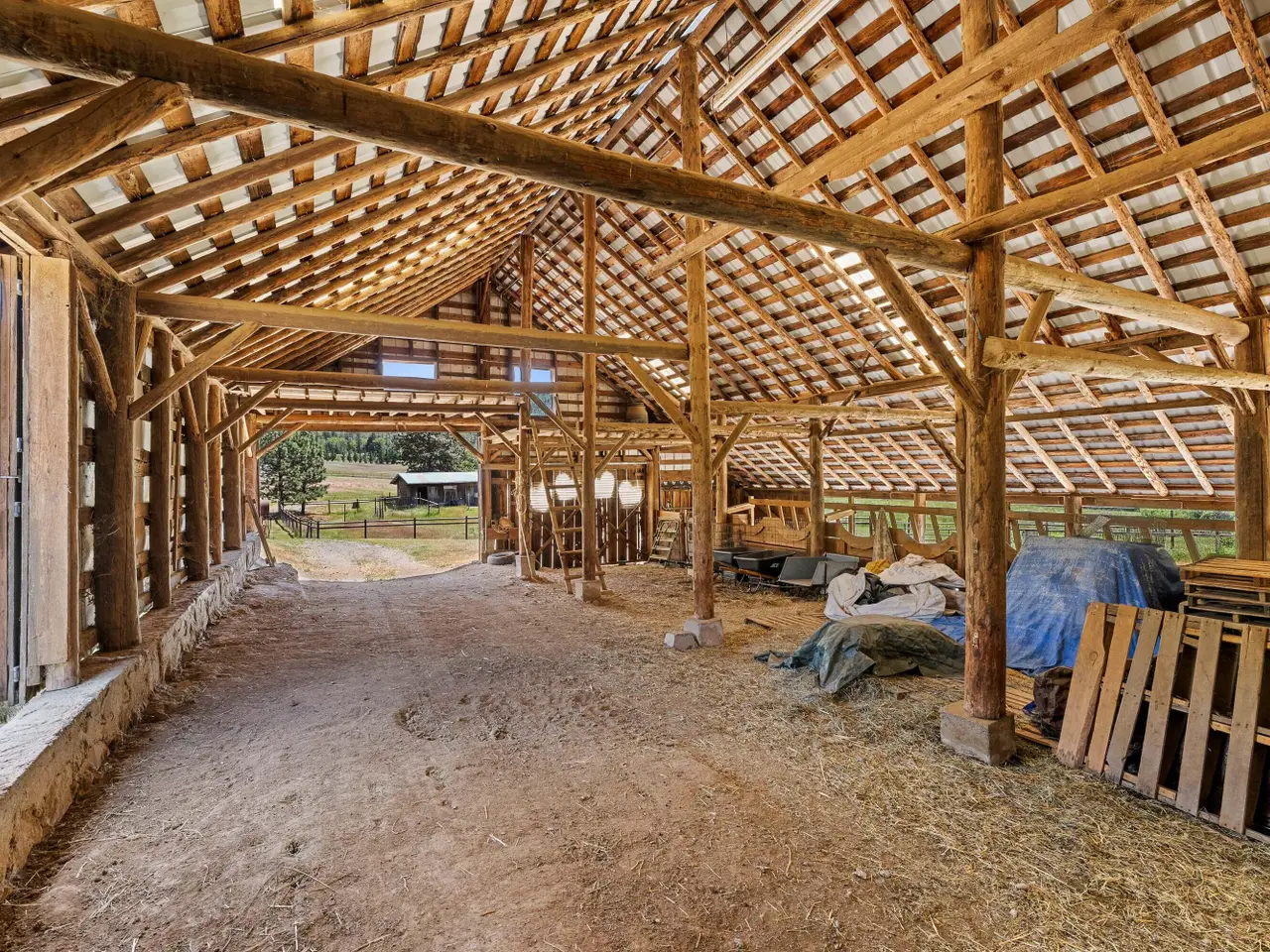 Incredible 50-acre property with panoramic views, ideal for livestock, horses, or homesteading. Features include a high-producing well, solar power, fenced garden, seasonal creek, three ponds, and wooded trails. There is a large pole barn, hay storage, corral, 2-stall horse barn with tack room, 8-stall equipment barn, mechanic's garage with a walk down mechanics pit, and garage/shop with loft and craft room. Land is currently being used for first cutting grass hay production and averages 8 tons a year. Though not certified organic, the land has been kept chemical free for the last 12 years. Frank Loyd Wright inspired 2,440 sq ft main home secluded in landscaped grounds featuring, fruit trees, berries, flowers and shrubs. Property also includes a 3BD/2BA manufactured home, that is currently rented and set well away from the main house for privacy.