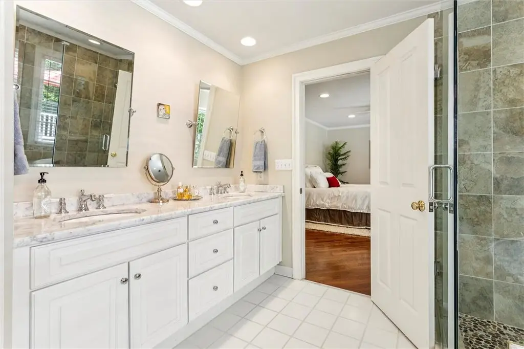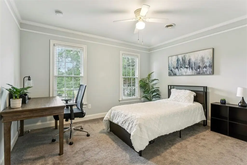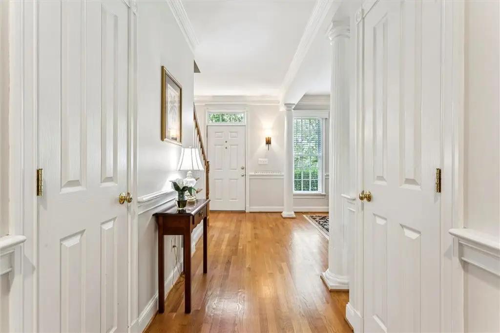 Tucked away on a quiet cul-de-sac in the gated community of Ford's Colony, 107 Gullane offers the perfect blend of comfort, style, and scenery. Enjoy peaceful pond views from the backyard. This custom 4-bedroom, 2.5-bath home features beautifully updated bathrooms and a renovated primary suite with a rooftop deck, bay windows, soaking tub, and oversized closets. The kitchen offers granite counters, custom cabinetry, and a spacious wall pantry. Additional highlights include hardwood floors, an expanded family room with gas fireplace, bonus room over the garage, custom mudroom, and a bright 3-season room. Outside, enjoy a stamped concrete patio, fire pit, and new cedar fencing. Major updates include: 50-year roof (2021), water heater (2020), HVAC systems (2021-2022), and encapsulated crawl space. All nestled within a vibrant, amenity-rich community - just steps from pools, tennis courts, and playgrounds.
