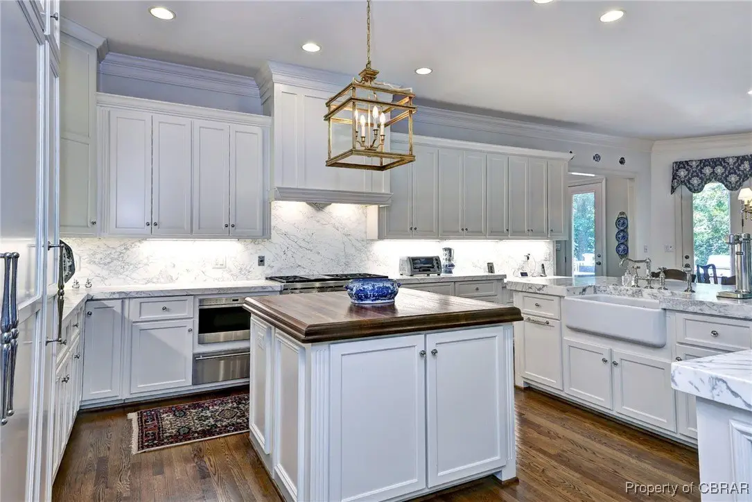 Live and enjoy the good life in this stately golf-front, brick home in wonderful Governor's Land. Fine craftsmanship, generous room sizes, soaring ceilings and luxurious materials will impress the most discriminating buyers. The kitchen is the heart of the home and can only be described as MAGNIFICENT! It is a gourmand's dream and has ample marble counter space, farm sink, walnut-topped island, breakfast bar, eat-in area, luxury appliances (Cove, Wolf, Sub Zero), pantry w 2nd Sub Zero and is open to a keeping room with fireplace. Main floor primary bedroom is the perfect retreat. Primary bath equipped with soaking tub, frameless glass shower, water closet with bidet, heated floors and towel bar. Butler's pantry, wet bar with wine cooler, temperature-controlled wine storage in lower level, plus flex spaces and 4 additional bedrooms upstairs. Stand-by generator, golf cart storage, encapsulated crawlspace, Navien hot water heater, whole-house surge protector, security system and more.