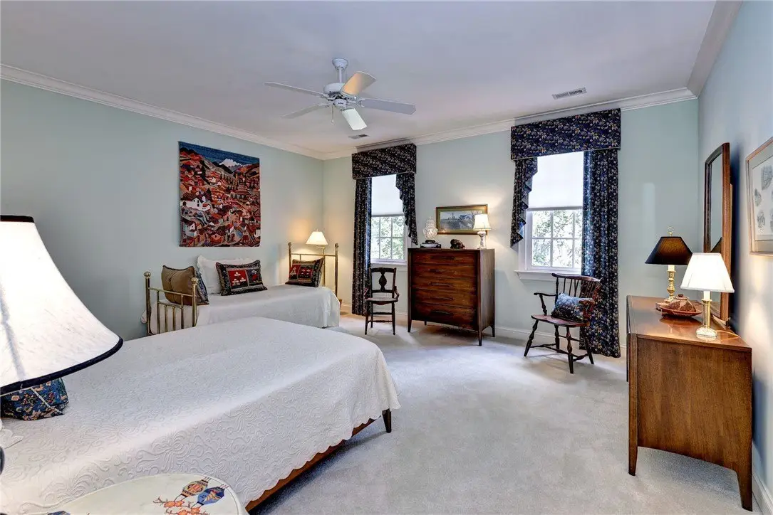 Stunning architecture, meticulous details, and a prime location with placid views of the James River! Crafted by the renowned Butch Palmer, every aspect of the home has been thoughtfully designed and executed. The residence boasts spacious rooms, exceptional millwork, and seamless flow for 1st floor living, complemented by an abundance of strategically placed windows that frame the serene views of the landscaped grounds, the protected marshlands, and the James River. Upon entering, you're welcomed by a 2-story foyer, a gracious dining room, impressive two-story Great Room overlooking the veranda and river. Proceed further to the spacious eat-in kitchen with direct access to the sunroom creating a perfect atmosphere for family and friends. The west wing offers a more intimate setting, featuring a cozy living room with fireplace, an exquisite fully paneled home office and a luxurious primary suite. On the 2nd level, one finds 3 en-suite bedrooms and a bonus room, ensuring ample space for everyone. The grounds are beautifully designed and landscaped, with room for a pool if desired! Natural beauty surrounds the home. Whether indoors or outdoors, you'll find perfection at every turn!
