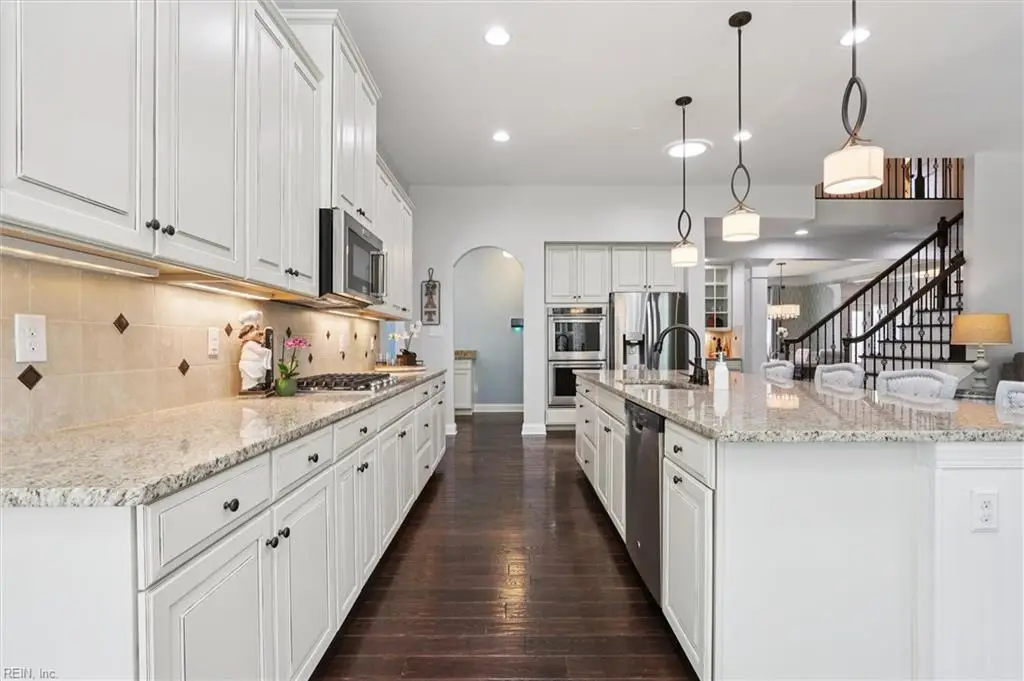 Step into unparalleled luxury with this breathtaking 6,000 SF open plan masterpiece. Crafted for seamless indoor outdoor living, every detail has been meticulously curated to satisfy the most discerning buyer seeking both elegance and ease. Five en suite bedrooms each offering privacy and style. Generous primary suite featuring a spa-caliber bath, sitting area, and an expansive walk in closet. Flowing open concept design adorns the home with light and invites effortless entertaining. The kitchen is a culinary dream with premium fixtures and finishes. Massive walk in pantry just steps away ideal for storing and organizing at luxury scale. Enjoy the sparkling pool framed by professional landscape and hardscape designs. Enjoy the elegant fire-pit lounge and dining oasis accented with strategically placed outdoor lighting that transforms evenings into serene escapes. Entertainment-Ready Lower Level ~Fully finished walk out basement. This home is more than a house it's a retreat.