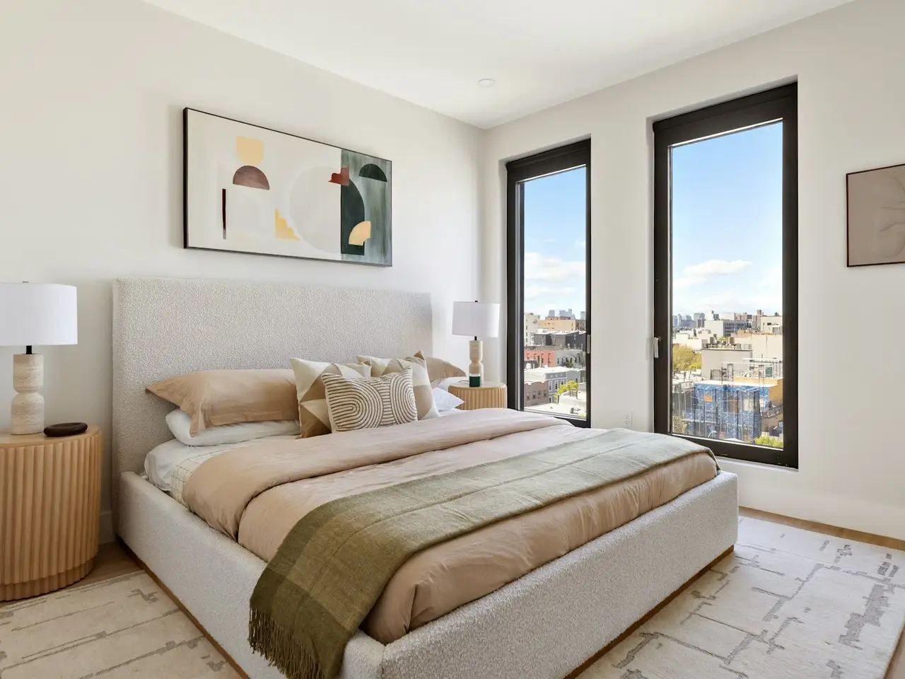 Welcome to Williamsburg's newest luxury development at 30 Bushwick Avenue, a sophisticated new condominium in the vibrant heart of one of Brooklyn's most desirable neighborhoods. This exclusive collection of 22 luxury one, two, and three bedroom residences has been meticulously crafted for those who appreciate contemporary design and superior craftsmanship. Set within a striking modern facade, 30 Bushwick Avenue offers an array of distinct floorplans, each exuding a refined elegance. As you approach this architectural gem, the building's bold exterior commands attention, with its sleek lines, reflecting the dynamic energy of the surrounding neighborhood. Inside, you'll be greeted by a chic, light-filled lobby that perfectly blends modern design with timeless comfort. Featuring marble and porcelain floor tiles, the lobby serves as a sophisticated prelude to the exceptional living spaces within. Residence 7A's 3 bedroom, 2 bathroom layout exemplifies the pinnacle of luxury living. The interiors are adorned with rich white oak engineered wood floors, creating a warm and inviting atmosphere. The spacious and open floor plan allows for effortless entertaining and comfortable living leading out to a private balcony. The state-of-the-art kitchen is a chef's dream, featuring sleek white countertops and a blend of custom painted wood shaker cabinetry and elegant open shelving that enhance the clean, modern aesthetic. High-end appliances by Bosch ensure every meal is prepared to perfection. The luxurious bathrooms are designed as private sanctuaries, boasting modern wood vanities, sleek black Moen fixtures and contemporary lighted mirrors. The spacious bedrooms features large sunny windows and large closets. This high floor unit boasts 3 private outdoor spaces. A balcony off of the living room expands your entertaining options while the balcony off of the rear bedroom provides a quiet sanctuary. Access your private rooftop cabana and enjoy sunsets over the Manhattan skyline. 30 Bushwick Avenue offers a range of thoughtfully designed amenities including a fitness room, a luxurious lobby that welcomes residents and guests alike, and a roof deck with stunning views of the city skyline. Located in the thriving neighborhood of Williamsburg, 30 Bushwick Avenue is surrounded by some of Brooklyn's most beloved dining spots, trendy shops, and cultural attractions. Explore the shops and restaurants along Graham Avenue or enjoy a day at McCarren Park, a neighborhood staple that hosts a variety of community events. With easy access to the L and G trains, travel around the city is a breeze. THE COMPLETE OFFERING TERMS ARE IN AN OFFERING PLAN AVAILABLE FROM THE SPONSOR. FILE # CD23-0230
