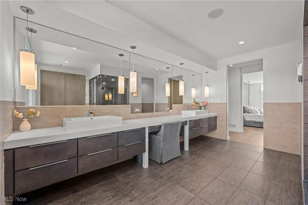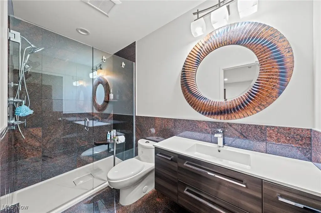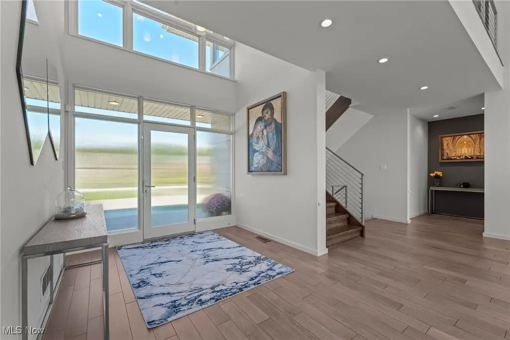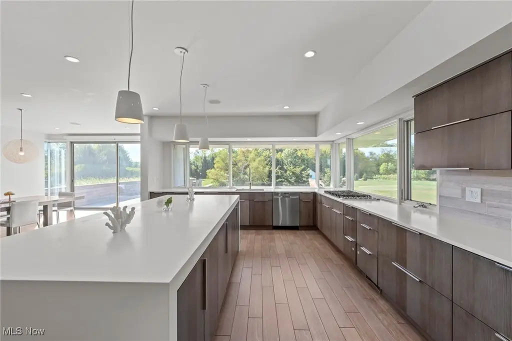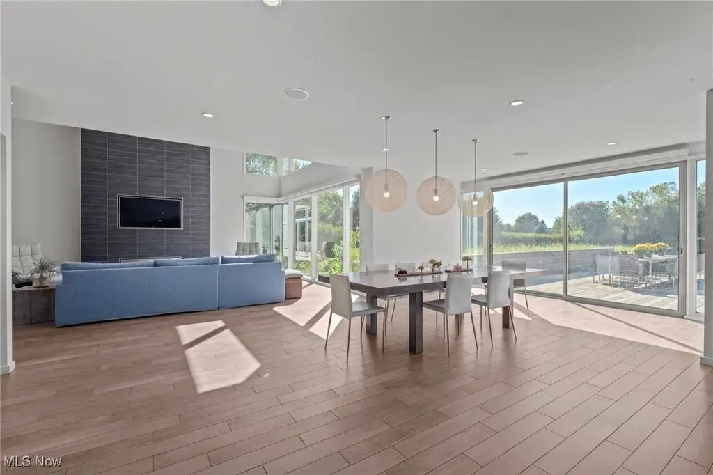 Designed by Dimit Architects and built by Payne and Payne, this remarkable custom built modern home is a true showplace! Highlighted by dramatic floor to ceiling glass walls of windows, this home is an entertainer's dream home. A wide open floor plan features a remarkable two-story Great Room with a two-story fireplace that opens into the gourmet dream Kitchen. The Kitchen features a huge center island, quartz waterfall counter tops, abundant cabinetry, and stainless steel appliances. The private first floor Primary Suite has a fabulous bath with walk-in steam shower and his and her dressing rooms. The expansive second floor has 4 spacious Bedrooms and two full baths. An amazing finished Lower Level includes a Workout Room, TV Room with golf simulator and full bath with a copper cold plunge/soaking tub. There is also a Bedroom with an ensuite full bath plus a large Bonus Room. Outdoor entertaining in the summer will be enjoyed on the incredible IPE deck and stone veranda overlooking the deep back yard. There is also a fire pit on the patio and a gorgeous landscape design. This luxurious and dramatic home has numerous amenities including a whole house generator and is truly extraordinary!