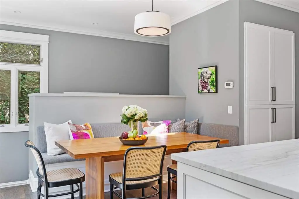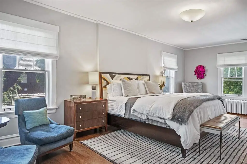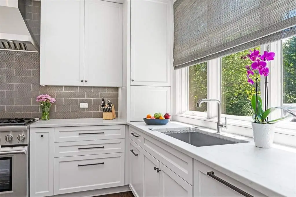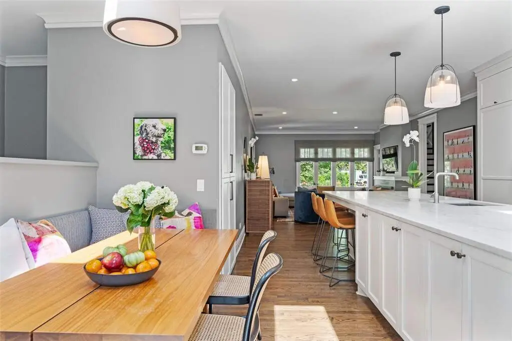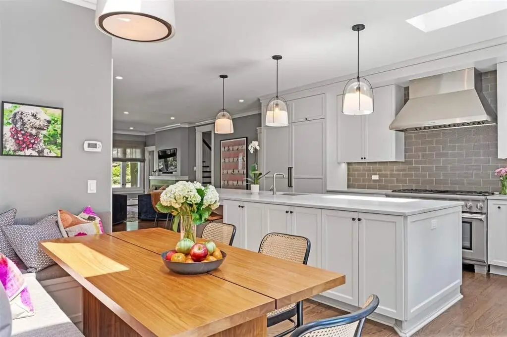 Perfectly positioned just steps from Gillson Beach and right off Sheridan Road, this classic red brick Colonial delivers timeless style in a prime location. Thoughtfully renovated, the home blends clean lines and a serene palette of soft hues with preserved original details, striking a rare balance between vintage warmth and today's modern lifestyle. Inside, original leaded glass windows and doors meet Ann Sacks tile, Visual Comfort lighting, Kallista hardware, and luxe stones and marbles-elevating the home with a perfectly refined, designer curated touch. Welcoming foyer opens into the formal living room anchored by a crisp white FP w/ a natural wood mantel flanked by built-in cabinets with leaded glass doors showcasing the beautiful craftsmanship. Living room flows seamlessly into the large dining room accented with white wainscoting, detailed crown molding, and sun-filled sitting area with original restored terracotta tile floors & oversized windows framing the lush backyard. Open family room to kitchen space anchors this special inviting space with direct access to the patio overlooking the privately lush backyard. Sunlight pours across the expansive island, topped in striking white quartzite with soft gray veining with bar seating for 5 with custom Plain & Fancy white cabinetry, s/s appliances, and Ann Sacks textured backsplash making this space as functional as it is stylish. The built-in breakfast nook with bench seating creates the perfect corner for casual meals while French doors lead outside to the back deck for easy entertaining. Chic powder room off the family room & sleek mudroom off the kitchen connects to the rare attached 2-car garage making this a dynamite feature of this home. Completely redone 2nd floor with 4 bedrooms including the ultra luxe primary suite with oversized bedroom, newly remodeled spa bath with dual floating vanities outfitted in quartz c-tops, RH fixtures, walk-in shower in Ann Sacks bricked tile and huge walk-in closet. 3 additional bedrooms share crisp hall bath w/ double vanity, warm wood cabinetry, sleek gray subway tile & glass-enclosed shower/tub combo. The 3rd floor retreat space is ideal with an optional office/playroom plus a private bedroom with full bath perfect for guests or extended family. Even the sunlit LL expands the living space with a large recreation area, laundry, utilities, and ample storage. Set on a 80 ft wide lot w/mature landscaped backyard this home hits all marks as it's turn key perfect in a very coveted East Wilmette location. Walk to town for a burger at the newly opened Small Cheval or walk down to the newly redone Plaza Del Lago for lunch to Space 519 after your peaceful morning walk on the beach. This is exactly why you leave the city or choose to upgrade-quintessential North Shore living at its finest!