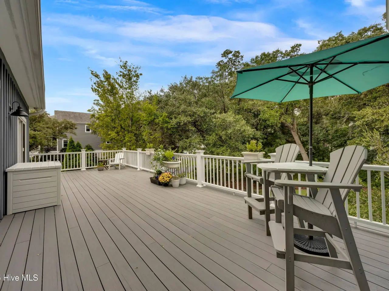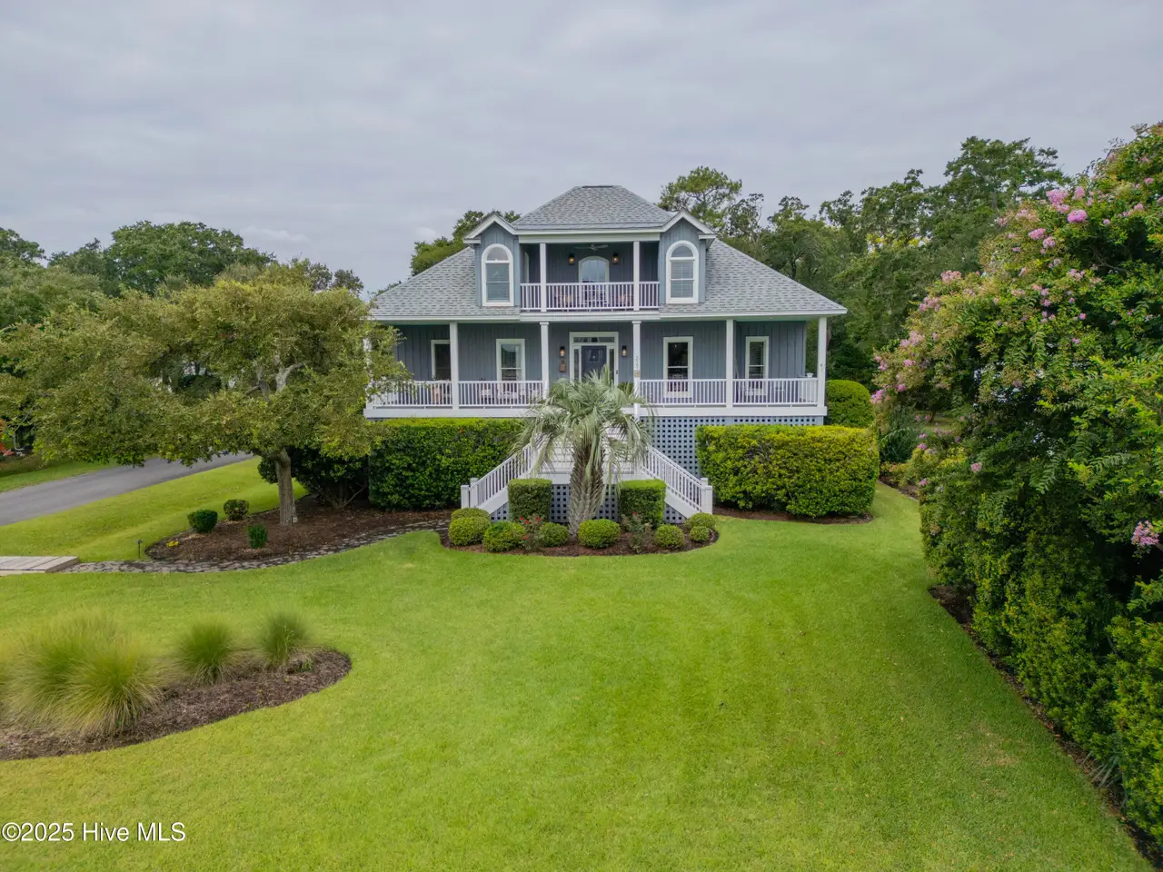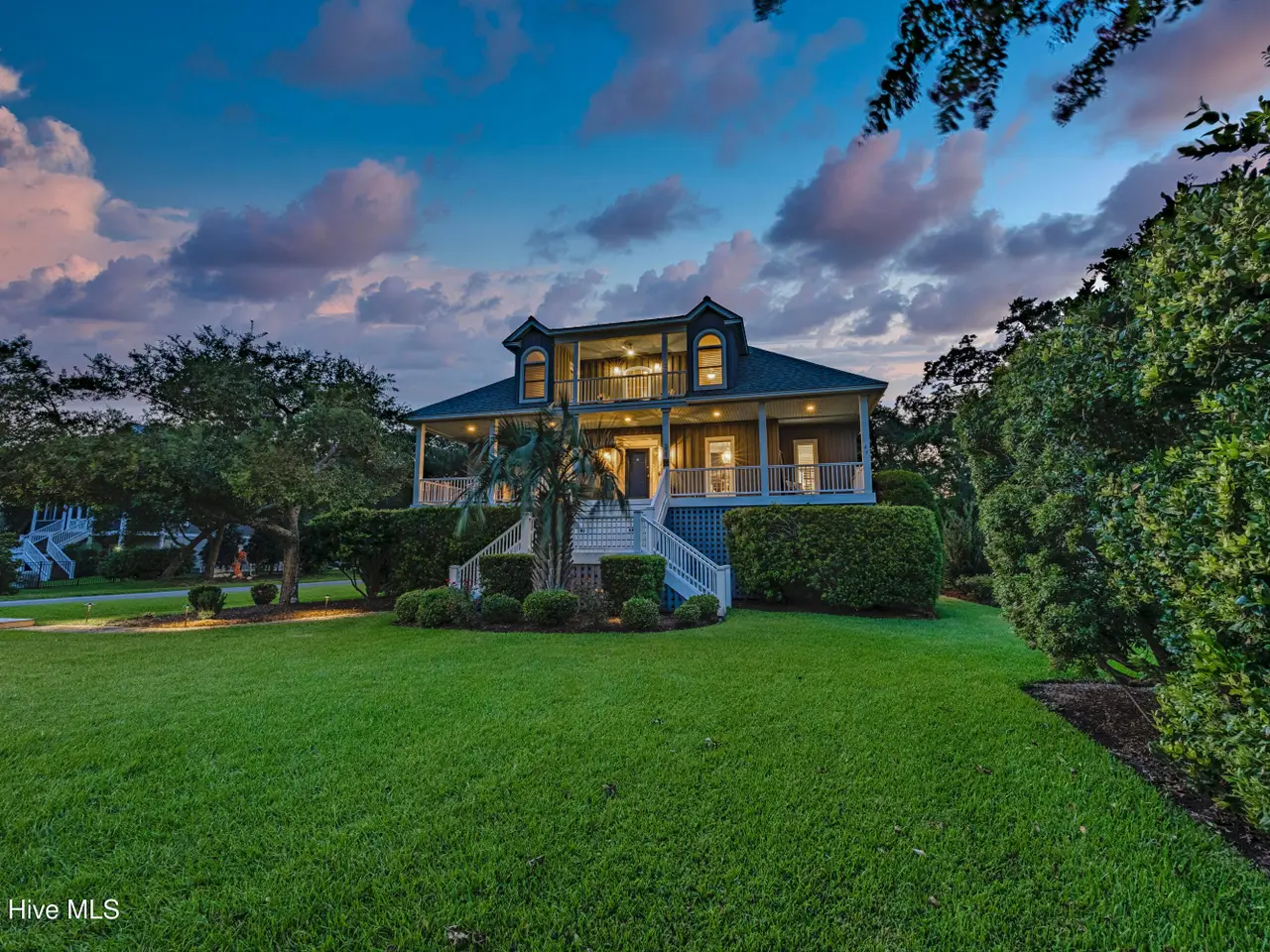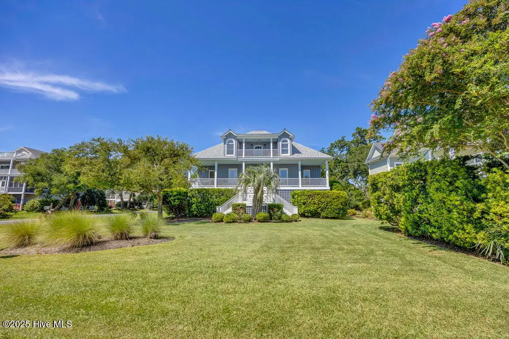 Come see this beautiful custom-built home situated on a corner lot in the waterfront community of Charleston Landing in the desirable Myrtle Grove area. The small quiet neighborhood offers access to the community pier located on the Intracoastal Waterway and includes a day dock, gazebo, and kayak launch providing easy access to Masonboro Island by kayak or boat.This 3 bedroom, 3 1/2 bath light filled residence has a wonderful floor plan and has been meticulously maintained and updated. Enjoy views of the Intracoastal Waterway from the welcoming front porch on this second-row home. To maximize views, a recently added upper-level covered porch is perfectly situated for watching the sunrise with partial views of Masonboro Island and the ocean. A gorgeous new kitchen was added in 2022 offering an abundance of cabinets, Piracema granite countertops, stainless steel appliances, coffee station, breakfast area with built ins, beverage refrigerator and the perfect elevated book shelf over the door leading to the screened in back porch. The living room has custom-built in cabinets which were added in 2023, flanking the new electric fireplace and mantle. Refinished oak hardwood floors can be found throughout the main level in all living areas and the spacious primary bedroom, located just off the living room. The generous sized primary bedroom has plantation blinds, a walk-in closet, and convenient access to the expansive back deck. The primary bathroom offers a double vanity, tile floors with a separate garden tub and shower with dual shower heads. At the front of the home, is the perfectly updated powder room and a formal dining room with direct access to the kitchen. Upstairs you will find 2 guest bedrooms, 2 full bathrooms, a family room, and 2 additional spaces currently used as music alcove and an office space. Just through the office area at the front of the home you will find the newly added covered porch.