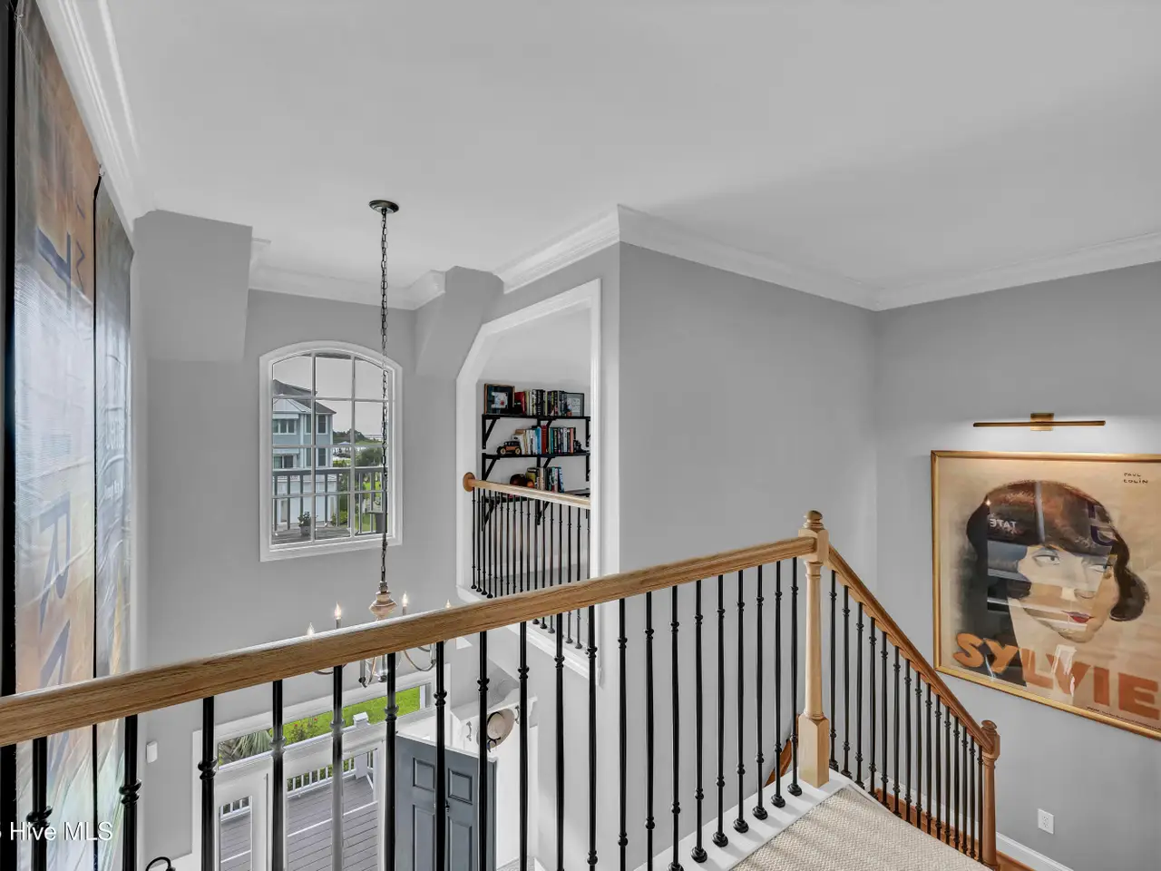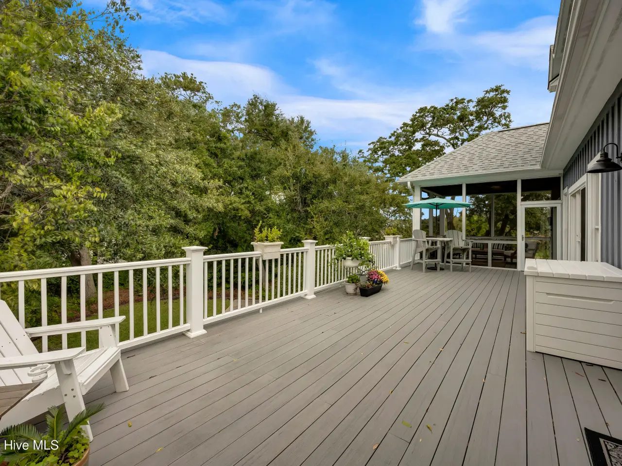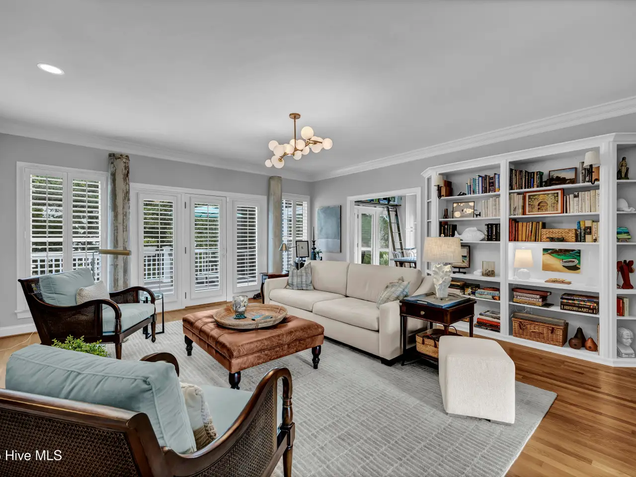 Come see this beautiful custom-built home situated on a corner lot in the waterfront community of Charleston Landing in the desirable Myrtle Grove area. The small quiet neighborhood offers access to the community pier located on the Intracoastal Waterway and includes a day dock, gazebo, and kayak launch providing easy access to Masonboro Island by kayak or boat.This 3 bedroom, 3 1/2 bath light filled residence has a wonderful floor plan and has been meticulously maintained and updated. Enjoy views of the Intracoastal Waterway from the welcoming front porch on this second-row home. To maximize views, a recently added upper-level covered porch is perfectly situated for watching the sunrise with partial views of Masonboro Island and the ocean. A gorgeous new kitchen was added in 2022 offering an abundance of cabinets, Piracema granite countertops, stainless steel appliances, coffee station, breakfast area with built ins, beverage refrigerator and the perfect elevated book shelf over the door leading to the screened in back porch. The living room has custom-built in cabinets which were added in 2023, flanking the new electric fireplace and mantle. Refinished oak hardwood floors can be found throughout the main level in all living areas and the spacious primary bedroom, located just off the living room. The generous sized primary bedroom has plantation blinds, a walk-in closet, and convenient access to the expansive back deck. The primary bathroom offers a double vanity, tile floors with a separate garden tub and shower with dual shower heads. At the front of the home, is the perfectly updated powder room and a formal dining room with direct access to the kitchen. Upstairs you will find 2 guest bedrooms, 2 full bathrooms, a family room, and 2 additional spaces currently used as music alcove and an office space. Just through the office area at the front of the home you will find the newly added covered porch.