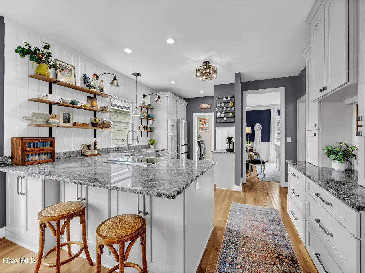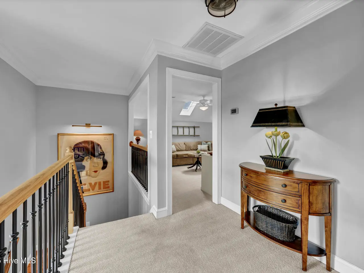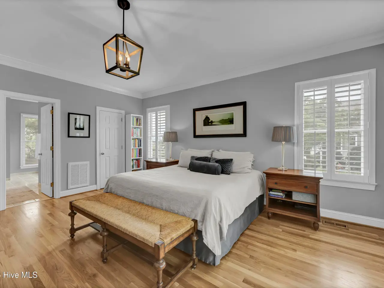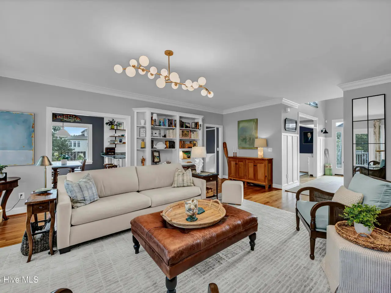 Come see this beautiful custom-built home situated on a corner lot in the waterfront community of Charleston Landing in the desirable Myrtle Grove area. The small quiet neighborhood offers access to the community pier located on the Intracoastal Waterway and includes a day dock, gazebo, and kayak launch providing easy access to Masonboro Island by kayak or boat.This 3 bedroom, 3 1/2 bath light filled residence has a wonderful floor plan and has been meticulously maintained and updated. Enjoy views of the Intracoastal Waterway from the welcoming front porch on this second-row home. To maximize views, a recently added upper-level covered porch is perfectly situated for watching the sunrise with partial views of Masonboro Island and the ocean. A gorgeous new kitchen was added in 2022 offering an abundance of cabinets, Piracema granite countertops, stainless steel appliances, coffee station, breakfast area with built ins, beverage refrigerator and the perfect elevated book shelf over the door leading to the screened in back porch. The living room has custom-built in cabinets which were added in 2023, flanking the new electric fireplace and mantle. Refinished oak hardwood floors can be found throughout the main level in all living areas and the spacious primary bedroom, located just off the living room. The generous sized primary bedroom has plantation blinds, a walk-in closet, and convenient access to the expansive back deck. The primary bathroom offers a double vanity, tile floors with a separate garden tub and shower with dual shower heads. At the front of the home, is the perfectly updated powder room and a formal dining room with direct access to the kitchen. Upstairs you will find 2 guest bedrooms, 2 full bathrooms, a family room, and 2 additional spaces currently used as music alcove and an office space. Just through the office area at the front of the home you will find the newly added covered porch.