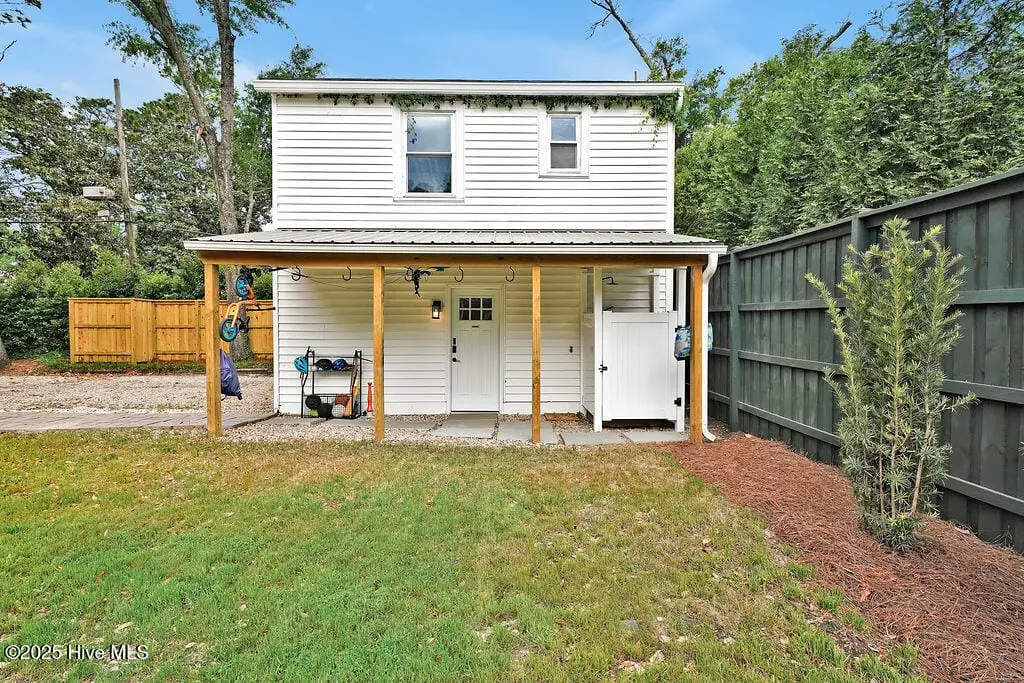 Step into this beautifully renovated, stately brick 4BR/2.5BA home nestled in the heart of Country Club Pines, one of Wilmington's most sought after neighborhoods, just moments from Cape Fear Country Club. Situated on a spacious corner lot with mature trees and classic curb appeal, this home offers the perfect blend of timeless charm and modern updates for today's lifestyle. Inside, a welcoming foyer leads to a large living room with a cozy fireplace, ideal for family gatherings. The adjoining sunroom is full of natural light, perfect for a morning coffee nook, playroom, or reading space. A flexible office or bonus BDR with attached half bath adds versatility for remote work or guests. The fully renovated kitchen features stainless appliances, a gas range, and opens seamlessly to the dining area, creating a great flow for entertaining. A dedicated laundry room and thoughtful updates throughout add to the home's comfort and function. Upstairs, the spacious primary suite includes a full bath and walk in closets. Two additional bedrooms and another full bath complete the second floor, perfect for growing families or visiting guests. Enjoy the outdoors from your large screened-in back porch, or take advantage of the detached garage-finished and perfect media/flex space with murphy bed and 2nd floor apartment, ideal for guests, or income potential. Recent upgrades include: All new windows & exterior French doors, updated kitchen & bathrooms, fresh interior & exterior paint, tankless gas hot water heater. Located in midtown Wilmington, you're just minutes from Historic Downtown, top schools, shopping, dining, and medical facilities. The coastal charm, tree lined streets and true sense of community this area is known for make this a place you'll love to call home. (Detached garage and 2nd floor apartment add 896 sq ft).
