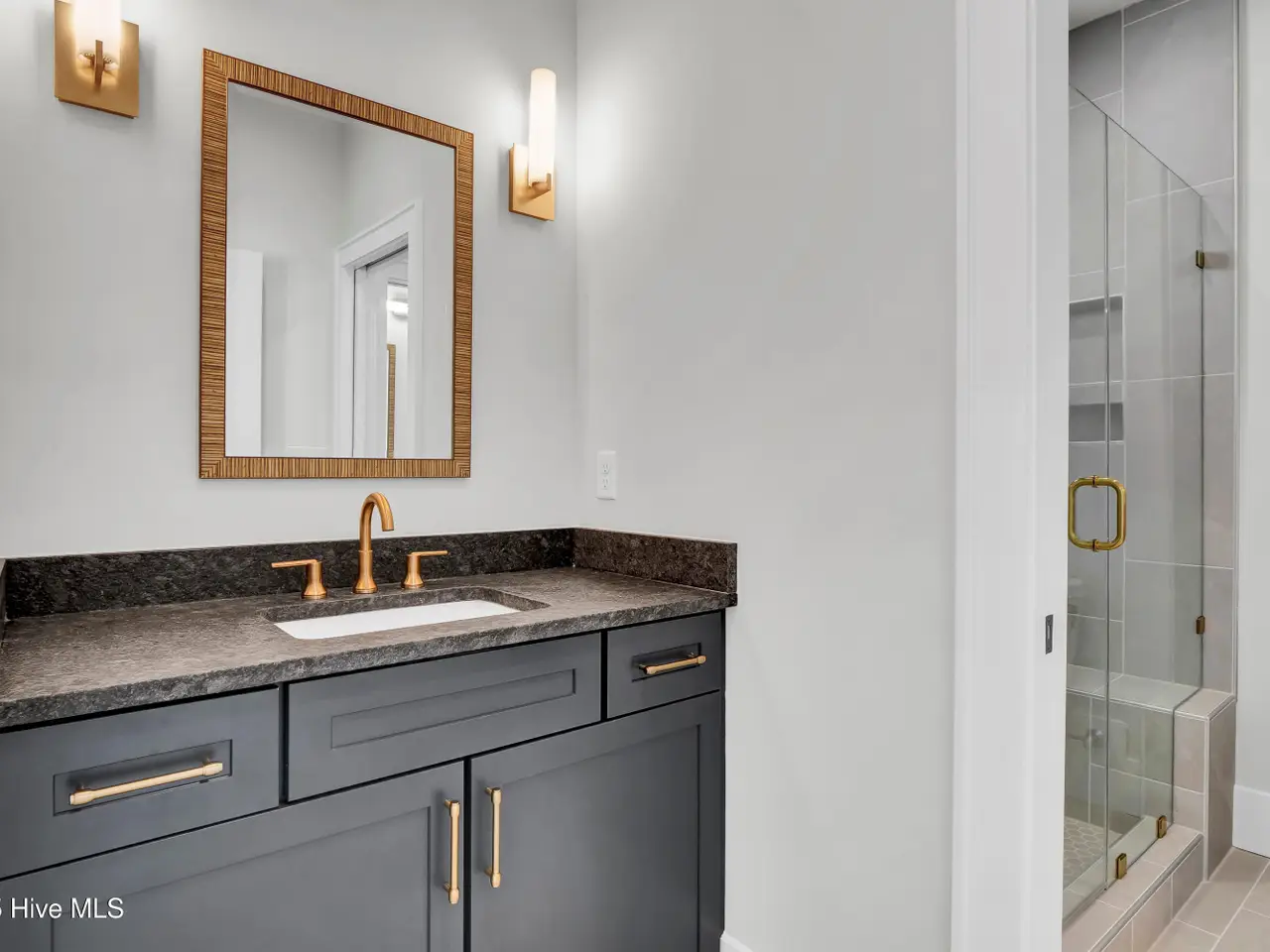 Introducing the exclusive custom home by Shenandoah Homes, a modern coastal dream come to life. 3,185 heated square foot home that presents primary first floor living with a design layout that is perfect for family and friends to enjoy. The exterior will feature incredible Hardie siding with a beautiful charcoal metal roofing and bracket details will give this timeless exterior something to rave about. As soon as you step through the front door, you'll be greeted with an incredible foyer with the clean-line iron stair railing that carries your eye up to the 2nd floor. Ahead, your eyes will wonder through the gathering room with views to the lush backyard and pool. The primary master suite will provide a gorgeous trim feature wall, pendant lighting, and incredible design elements in the master bath. Upstairs will house bedrooms 2-4, in addition to a spacious lounge with mini office or storage room. Whether you are cozied up on the gracious front porch that overlooks Lebanon Chapel park or enjoying the privacy of the large covered back patio and yard with its natural gas fireplace, outdoor grill and plunge pool, you are bound to pick the perfect spot to relax and enjoy the beautiful outdoor spaces.
