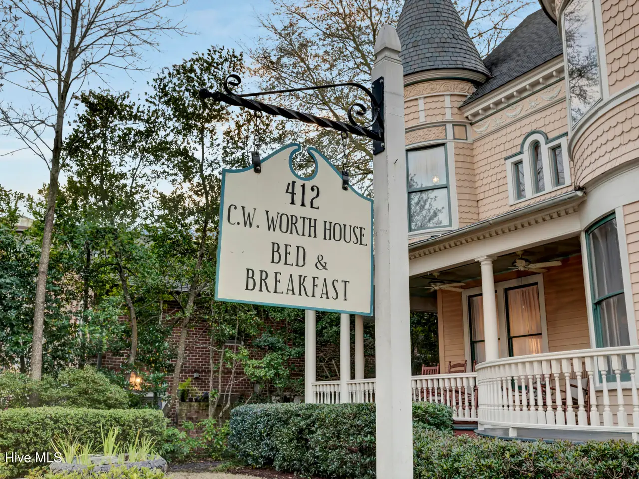 Charming Victorian Estate in Wilmington Historic District Nestled in the heart of the Wilmington Historic District, this unique Victorian residence offers a rare blend of historic elegance and modern comfort. Spanning approximately 6,290 square feet, the property features eight distinctive bedroom suites, each with its own private bath and unique character, making it ideal for a spacious family home or continued use as a luxury bed and breakfast. The main level is designed for both comfort and entertaining, showcasing formal gathering areas, a recently updated kitchen, and a large primary suite. A stylish powder room is cleverly tucked beneath a handcrafted wooden staircase, adding a touch of architectural charm. The second and third floors house the remaining seven bedroom suites, along with generous additional living spaces that offer flexibility for guests or family. Outside, enjoy Southern living at its finest with a welcoming wrap-around front porch and a private back porch that overlooks a serene garden and pond, surrounded by mature landscaping and towering trees for ultimate tranquility. An alley-access drive at the rear of the home leads to an additional vacant parcel, currently used for parking but equally suited for expansion, gardening, or outdoor gatherings. Located just minutes from downtown Wilmington, the Riverwalk, and top dining destinations, this property offers both historic charm and prime convenience. Currently operating as the CW Worth House Bed and Breakfast, it provides a seamless opportunity for continued business or conversion to a grand private residence.