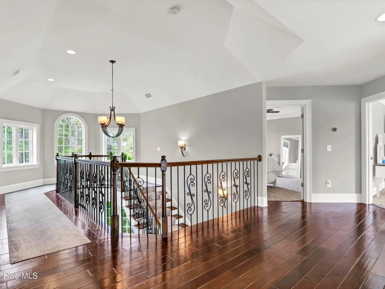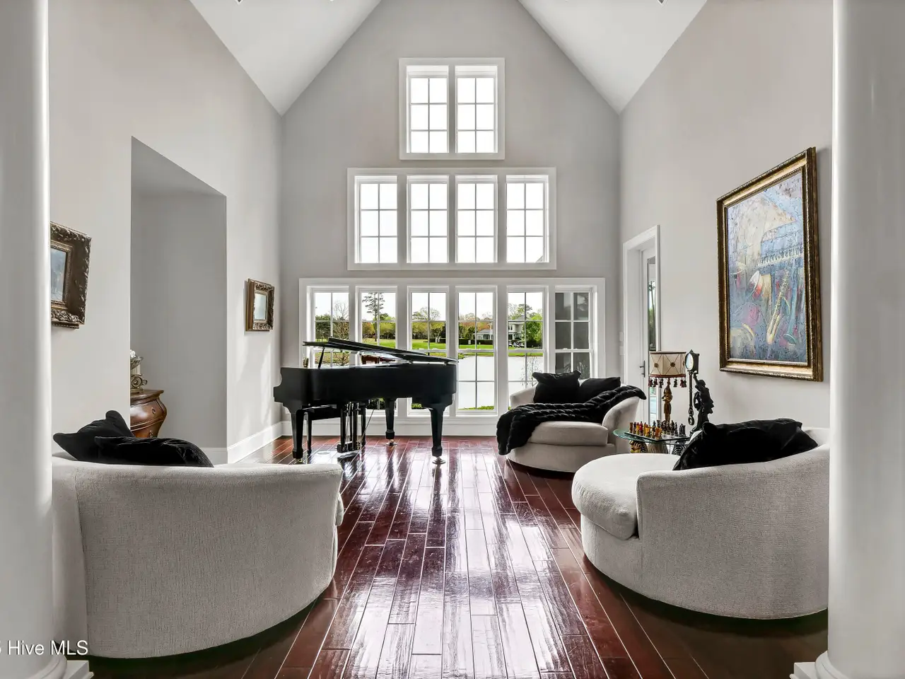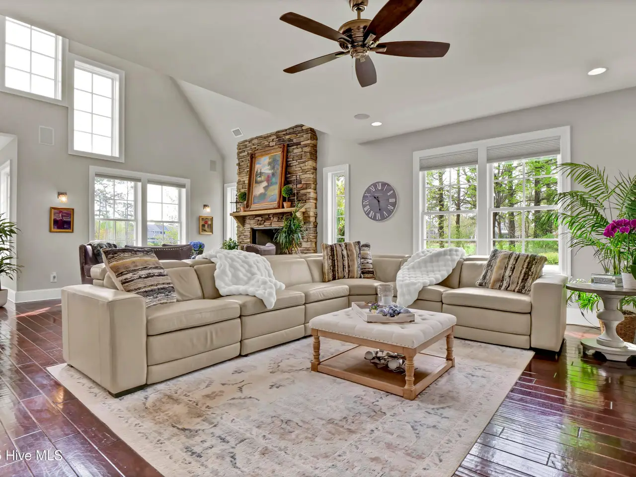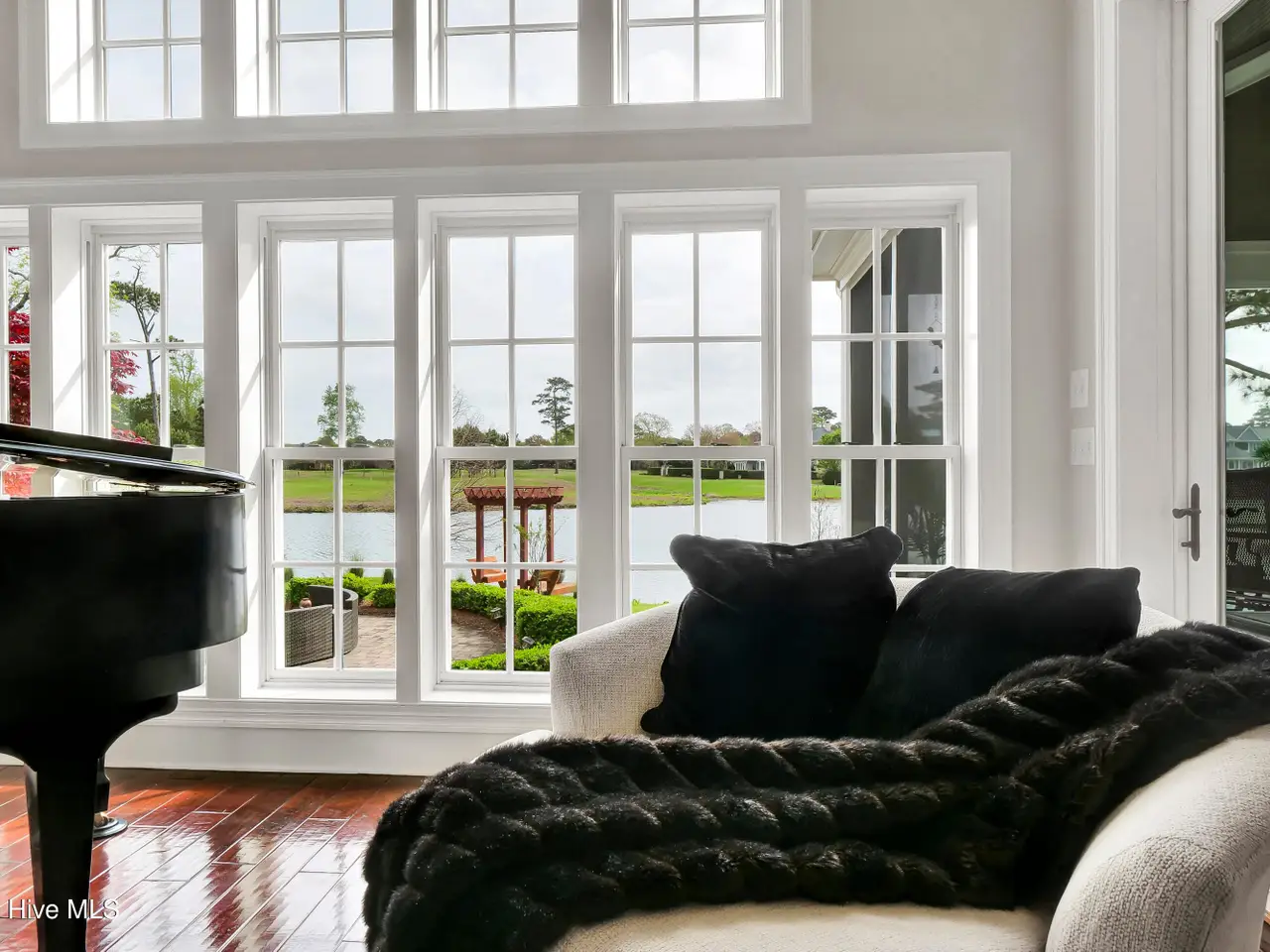 Situated on a quiet, private cul-de-sac in a peaceful peninsula-like setting is where you'll find this lovely lakefront Landfall sanctuary with Marsh #8 golf course views. Let your cares slip away as you gaze at swans gliding across the water, turtles basking in the sun or a variety of birds dancing in the breeze. The interior is equally as serene, as a Koi pond with fountain greets you in the foyer along with wood floors & soft, soothing colors that carry throughout formal and informal areas of this stunning residence. You'll love hosting memorable gatherings with family & friends in your gorgeous gourmet Kitchen complete with beautiful new quartz countertop, a Thermador professional series 6 burner natural gas range & 2 ovens, Thermador refrigerator, new dishwasher new microwave, beverage refrigerator, even reverse osmosis, a prep sink & roll out shelves. The generous Kitchen opens to formal & informal living & dining spaces with a stacked stone natural gas or woodburning fireplace. You'll find 2 offices/bedrooms with adjoining balcony and full bath on the first level; upstairs enjoy 4 bedrooms including the oversized Primary Suite with vaulted ceilings, a reading/exercise/meditation area, spacious walk-in closet, sizable jetted tub AND separate jetted shower. Heaven inside & out. Instantly fall in love with the incredible outdoor space - whether entertaining on your lanai, telling tales around the firepit, or simply sitting under the arbor near the water feeling the sunshine. Other special features of this amazing home include 107 windows including floor to ceiling in the Great Room offering abundant natural light, repainted interior, 2 on-demand hot water systems, whole house water filtration system, irrigation system on a well, efficient geothermal heating & cooling for very low energy bills, Laundry Room with sink & cabinets, wired for sound, oversized 2 car garage and fenced backyard. Wow.