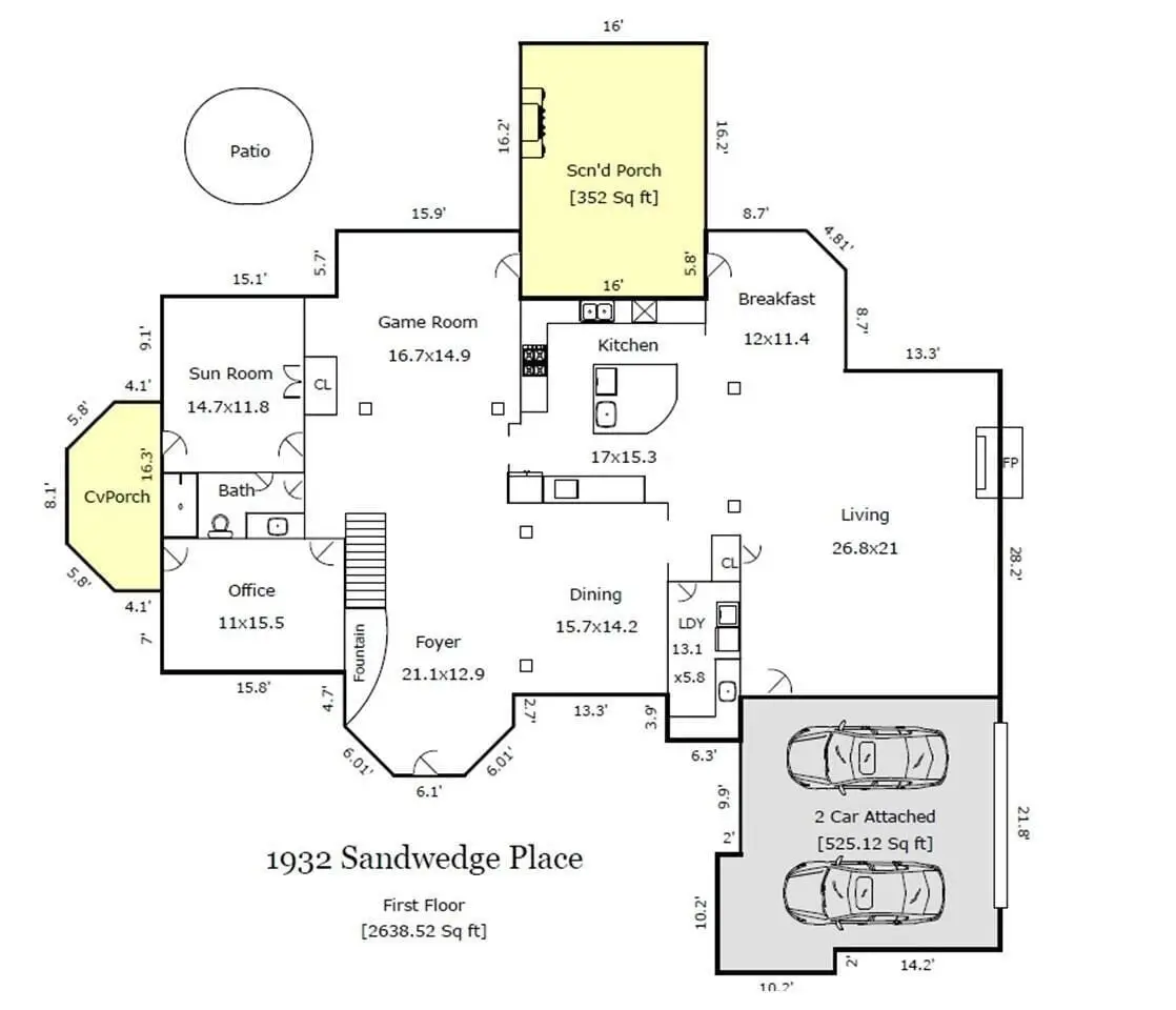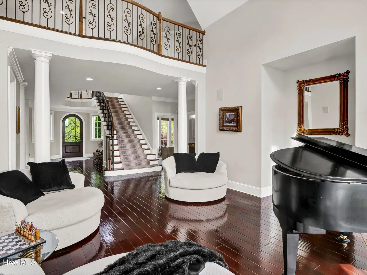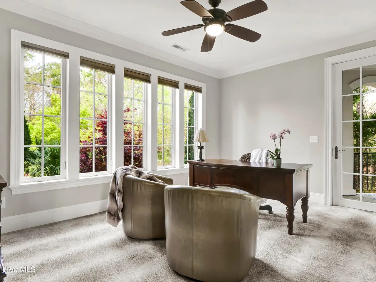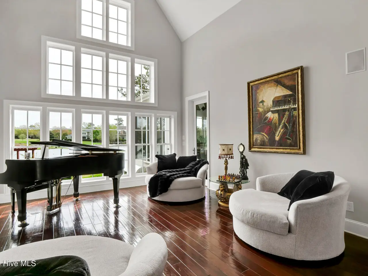 Situated on a quiet, private cul-de-sac in a peaceful peninsula-like setting is where you'll find this lovely lakefront Landfall sanctuary with Marsh #8 golf course views. Let your cares slip away as you gaze at swans gliding across the water, turtles basking in the sun or a variety of birds dancing in the breeze. The interior is equally as serene, as a Koi pond with fountain greets you in the foyer along with wood floors & soft, soothing colors that carry throughout formal and informal areas of this stunning residence. You'll love hosting memorable gatherings with family & friends in your gorgeous gourmet Kitchen complete with beautiful new quartz countertop, a Thermador professional series 6 burner natural gas range & 2 ovens, Thermador refrigerator, new dishwasher new microwave, beverage refrigerator, even reverse osmosis, a prep sink & roll out shelves. The generous Kitchen opens to formal & informal living & dining spaces with a stacked stone natural gas or woodburning fireplace. You'll find 2 offices/bedrooms with adjoining balcony and full bath on the first level; upstairs enjoy 4 bedrooms including the oversized Primary Suite with vaulted ceilings, a reading/exercise/meditation area, spacious walk-in closet, sizable jetted tub AND separate jetted shower. Heaven inside & out. Instantly fall in love with the incredible outdoor space - whether entertaining on your lanai, telling tales around the firepit, or simply sitting under the arbor near the water feeling the sunshine. Other special features of this amazing home include 107 windows including floor to ceiling in the Great Room offering abundant natural light, repainted interior, 2 on-demand hot water systems, whole house water filtration system, irrigation system on a well, efficient geothermal heating & cooling for very low energy bills, Laundry Room with sink & cabinets, wired for sound, oversized 2 car garage and fenced backyard. Wow.