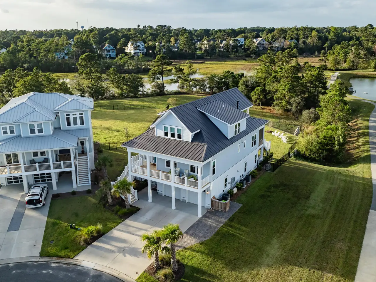 Luxury Coastal Living with UNBELIEVABLE MARSH VIEWS! Welcome to this stunning 5 bedroom, 5 Bath home in the highly sought-after Waterstone community, offering show-stoping marsh views and spacious yard ready for the ultimate backyard retreat (pool gas hook up has already been installed). Inside, you'll find a chef's Kitchen with quartz countertops, GE Cafe appliances, beverage fridge, ice maker, custom backsplash and a dedicated wine room that will be the envy of the neighborhood. The family room features wood beams and an upgraded stone fireplace, while the master suite includes its own fireplace, spa- style bath with glass shower and custom closet organizers.Enjoy the outdoors year-round with a screened porch, outdoor fireplace, built-in BBQ, outdoor shower, and covered inclosed dog run. Additional upgrades include luxury vinyl flooring, epoxy-coated garage and dog run floors, mahogany porch ceiling, deck railing, stair lighting, retaining wall, exterior fencing, foam insulation, reverse osmosis water system, and a durable metal roof rated for high winds. The home combines thoughtful design, modern upgrades, and unbeatable marsh view-a rare opportunity to live the coastal lifestyle in true luxury.Definitely a must see!