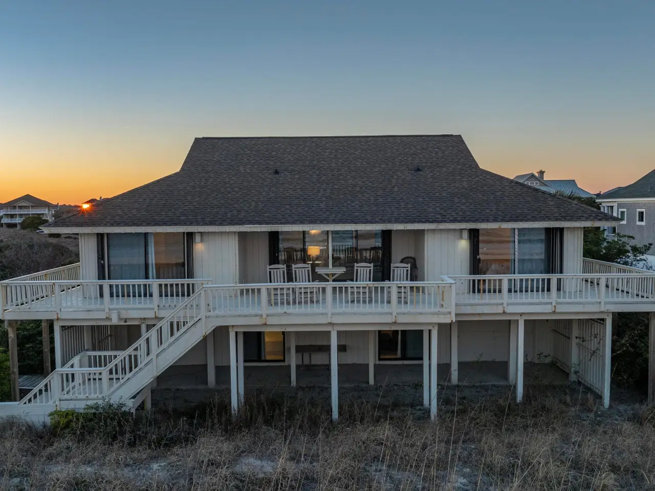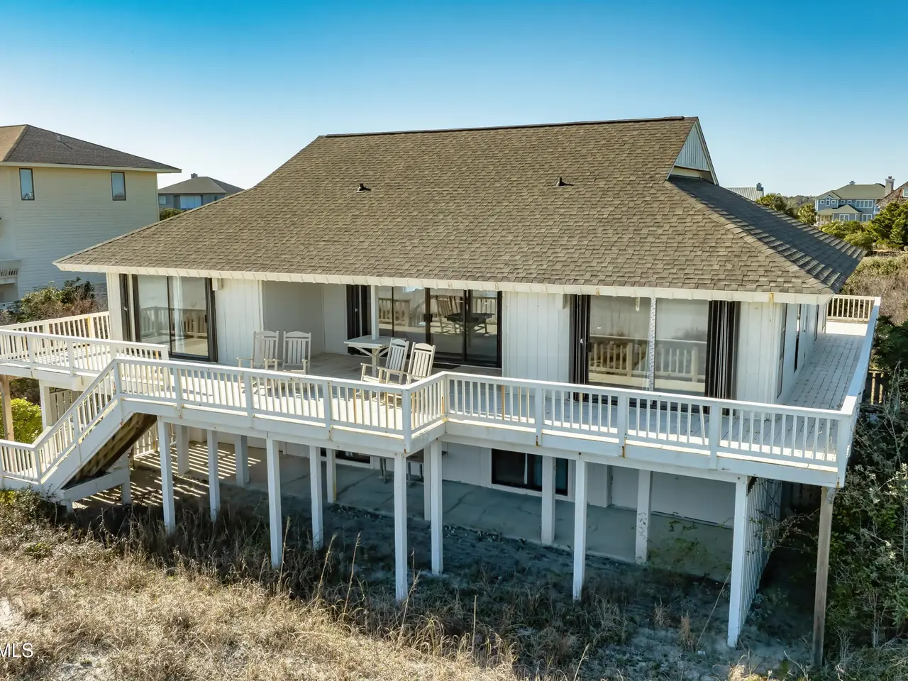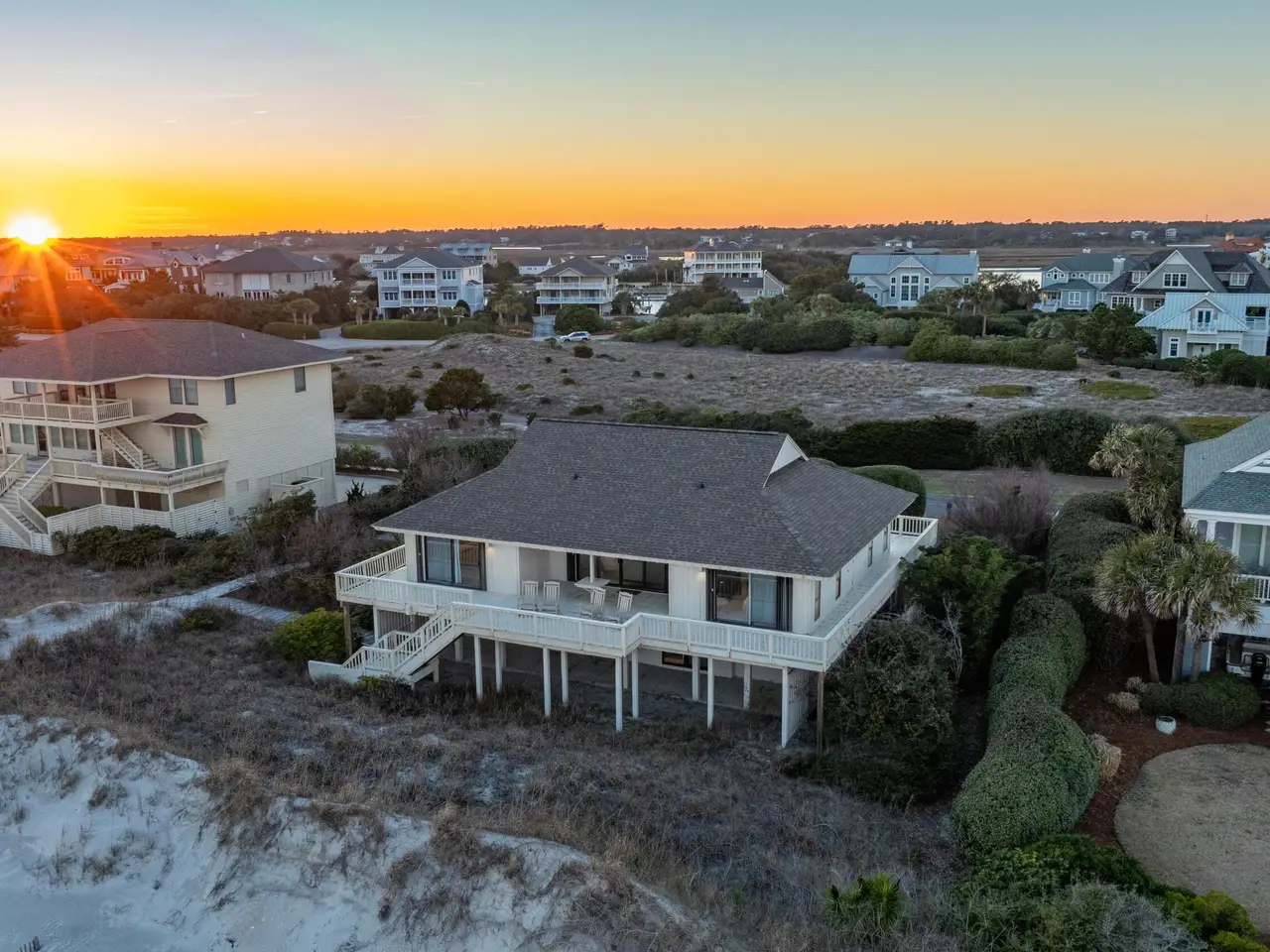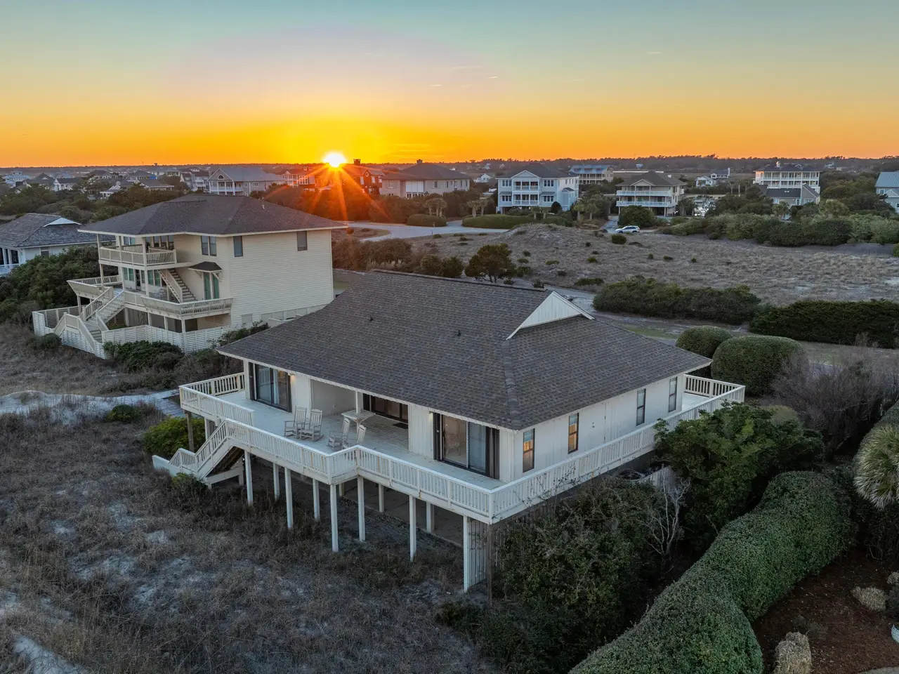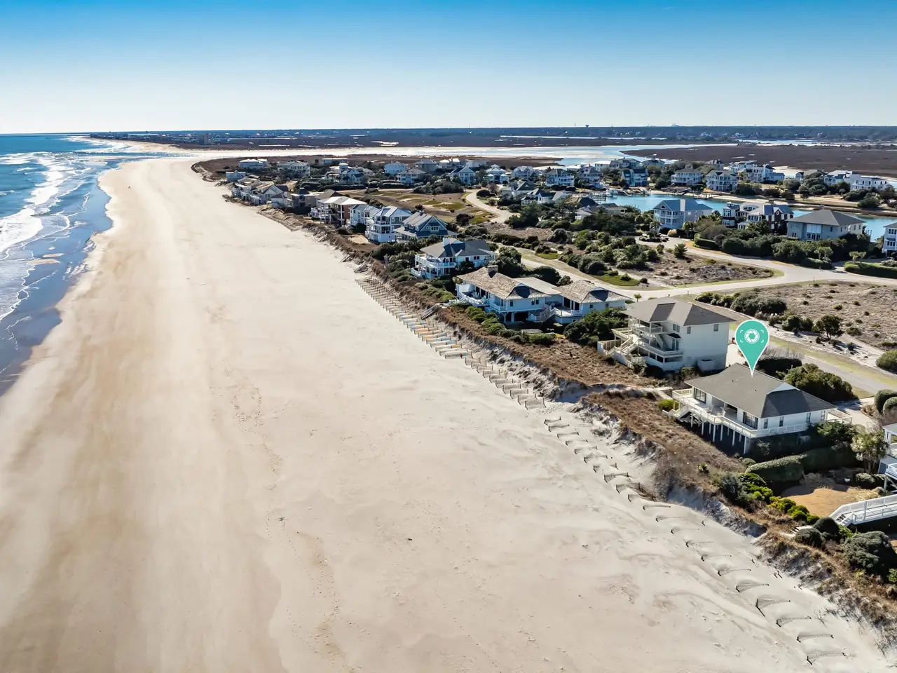 Figure 8 Island stands as North Carolina's most exclusive private island - renowned for its seclusion, prestige, and extraordinary coastal beauty. This 4-bedroom, 3-bathroom oceanfront residence sits on 0.61 acres of pristine beachfront and is uniquely grandfathered into a setback that places it slightly ahead of its neighbors, capturing sweeping, unobstructed ocean views from its wraparound decks.A comprehensive survey completed in July 2025 confirmed that the dune line remains strong and the First Stable Line of Vegetation has not shifted, verifying that the lot retains full buildability and ample space for a future home. Preliminary architectural drawings by Kersting Architecture for a 4,900 square foot custom build further showcase the site's potential.Protected by high, wide dunes ensuring excellent storm resilience and bordered by HOA-owned conservation land across the street, the property enjoys exceptional privacy and enduring natural beauty. The existing home features dual garages, a guest suite on the lower level, and a bright, open main living area upstairs with panoramic ocean vistas, a spacious kitchen, and three additional bedrooms.With recent new-construction sales on Beach Rd S closing at $12.5 million and $13.9 million, this property presents tremendous upside for those seeking to design and build a premier coastal estate. Buyers may also apply for membership at the exclusive Figure 8 Island Yacht Club, where the current owner holds a founding membership.Enjoy, renovate, or rebuild138 Beach Rd S represents an unmatched opportunity to invest in lifestyle, privacy, and long-term appreciation on one of the East Coast's most coveted shorelines.