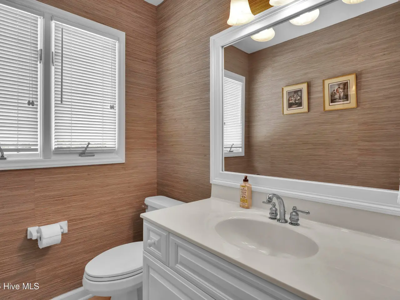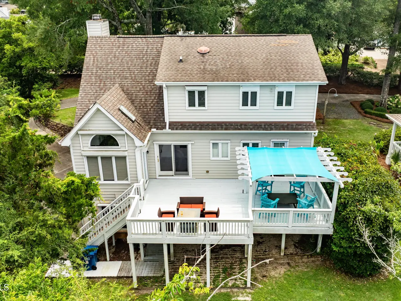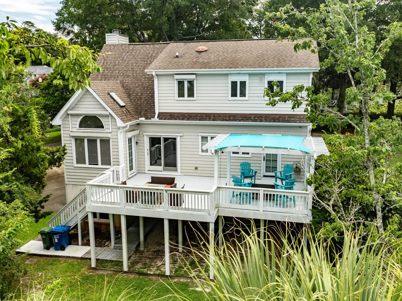 The drawbridge to Wrightsville Beach is the epicenter of the bubble and the best life in the Wilmington area. While this house is only 2371 square feet, it packs a punch with its rocking chair front porch, open floor plan, three bedrooms, 4 1/2 baths plus additional suite with kitchenette on the ground floor and two car garage. The elevated back deck overlooks, a beautifully landscaped pond and the Airlie Place neighborhood pool and clubhouse that is shared with the adjacent 9 neighbors. Nicely updated with quartz counters and updated baths, hardwood flooring, and great natural light. At the foot of the street is North Carolina scenic byway Airlie Road with three waterfront restaurants, including Dockside, Fish House and Bridge Tender. An easy walk or bike to the beach and start the day off with a stroll around the loop.