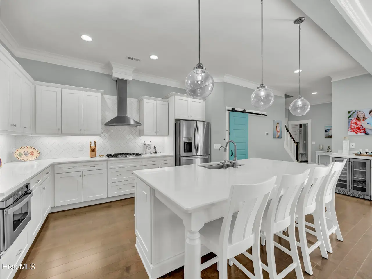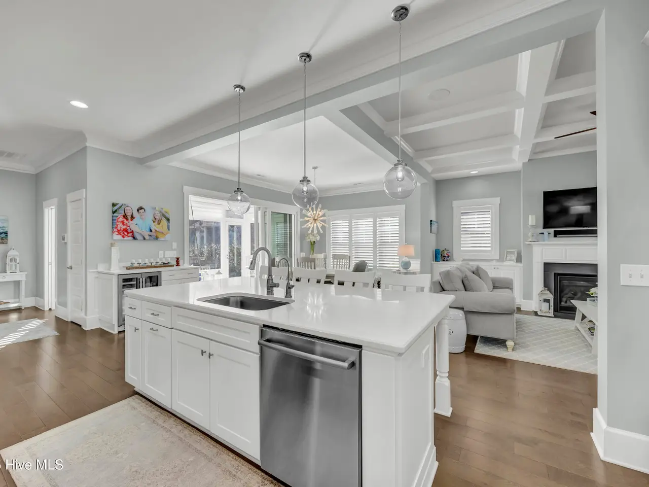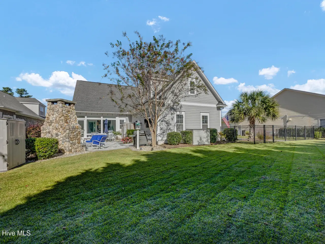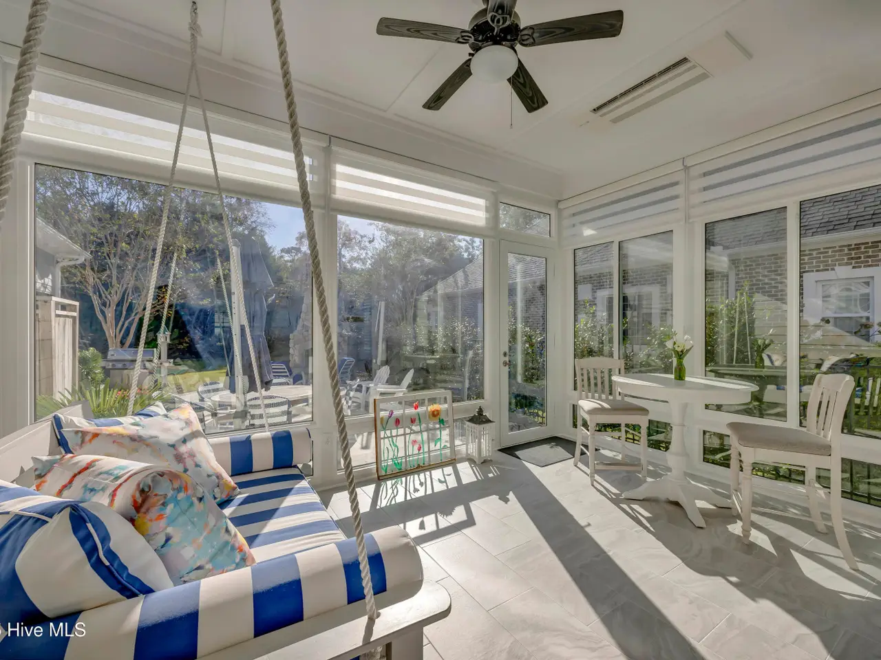 Welcome to a Southern Coastal Luxury home loaded with upgrades!! Located in the premier waterfront community of Helms Port, a family neighborhood with the finest amenities including a spacious clubhouse,a luxurious pool overlooking breathtaking views of the marina and beyond. Enjoy a white sandy beach to launch your kayak or paddle board and then store it afterwards. Here comes the sun, in this light and airy spacious home with 10 ft. ceilings, open floorplan with a beautiful sunroom overlooking an outdoor oasis of fun. Featuring a flagstone patio with a custom stone fireplace, gas grill, TV and outdoor shower makes for memorable family and friend time. The beautifully landscaped yard is fenced in and provides enough space for a future pool. This home is ideal with the primary suite downstairs and 2 bedrooms upstairs with large great room providing space for the children. Then, for guests, there is a 4th bedroom located discreetly over the garage with ensuite bath and separate thermostat. Upgrades are abounding with Plantation shutters throughout, premier sheer shades in the sun room, coffered ceiling, built ins and gas fireplace in living room. The kitchen is well appointed with a spacious island, double ovens, gas cooktop, reverse osmosis, and a separate beverage fridge. A dedicated office/study is tucked away from the rest of the home, providing a quite space for work. If that isn't enough, there is a whole house generator, abundant storage in the walk in attic, natural gas. This home has been meticulously maintained and the upstairs HVAC was replaced this year. Come enjoy this peaceful paradise with all the extras!