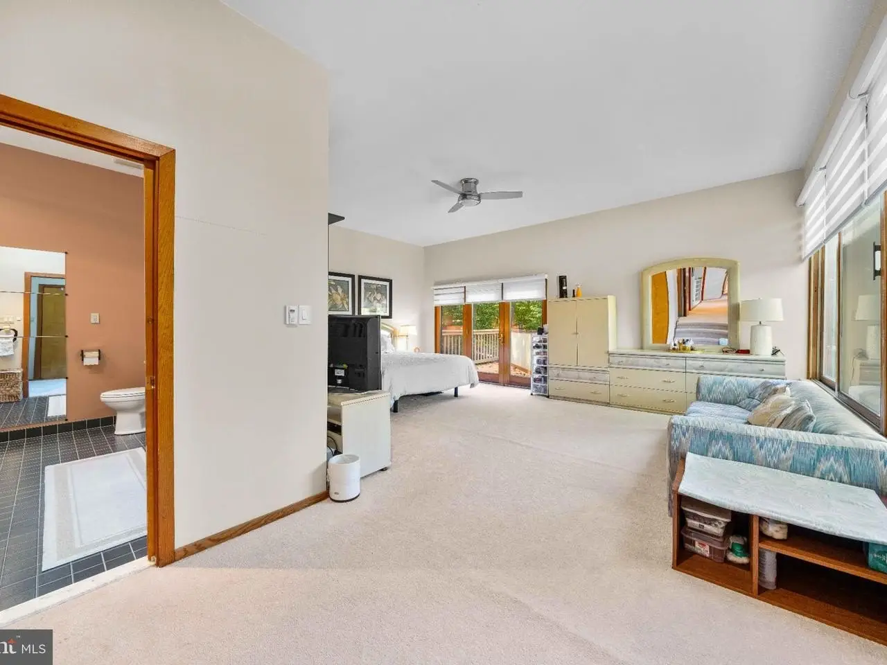 Large primary bedroom suite with private balcony