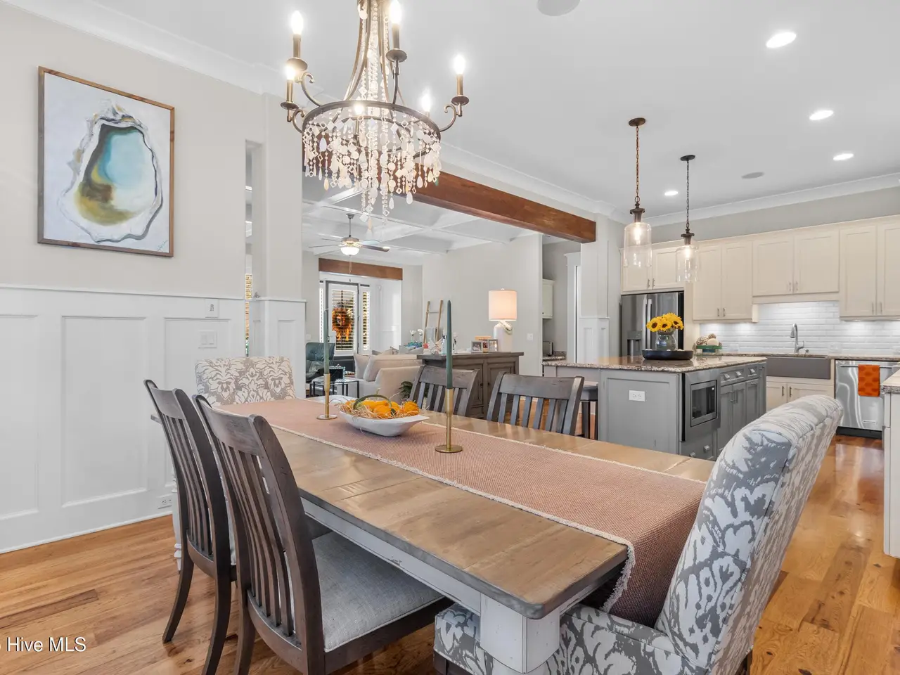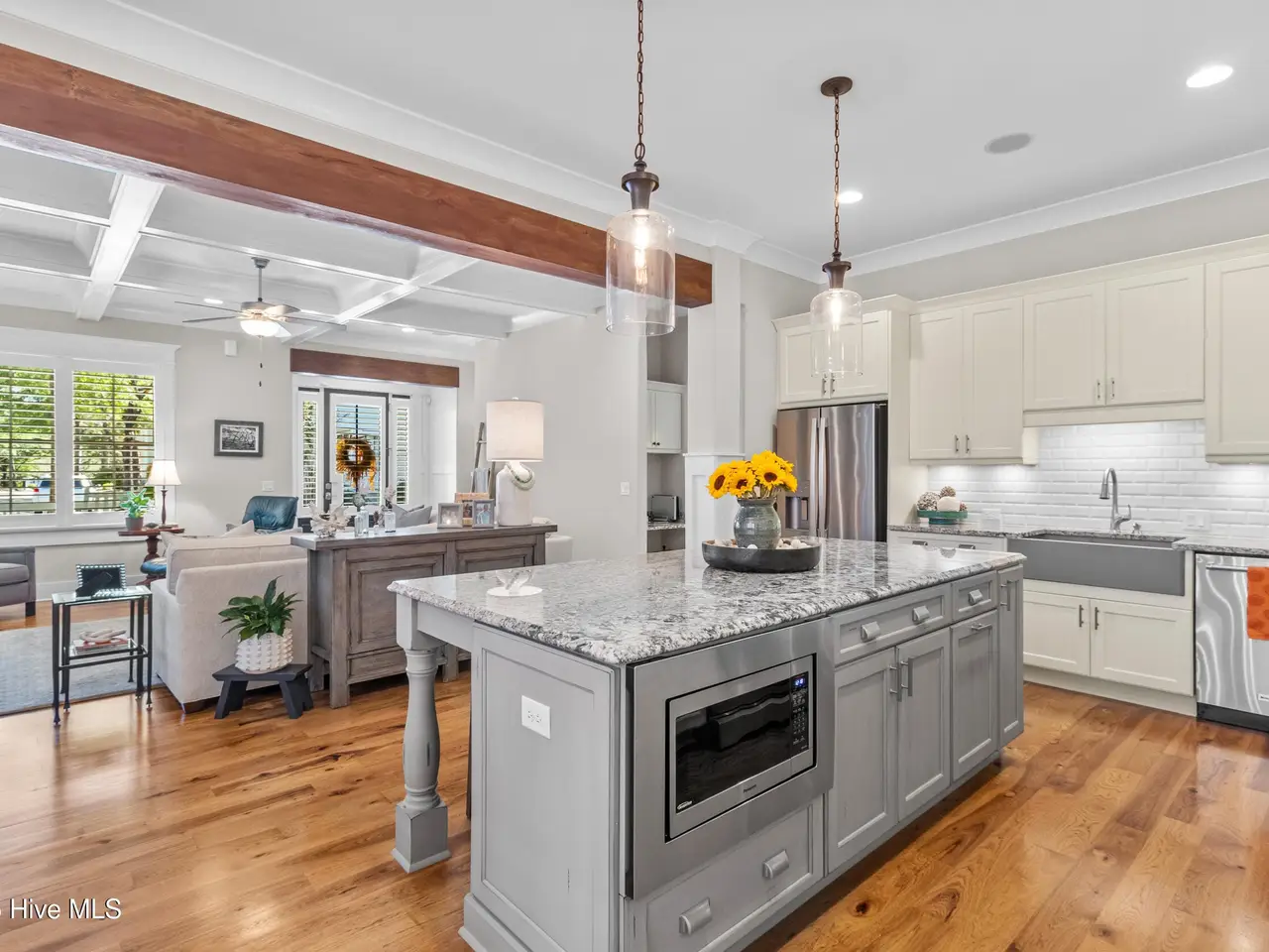Nestled along the quiet, tree lined streets of Autumn Hall, this meticulously maintained home exudes timeless elegance and showcases a thoughtful layout designed for modern living. Offering five spacious bedrooms, four full bathrooms, and a versatile bonus room, this home provides ample space for family and guests alike. The main level features two bedrooms, including the serene primary suite with a coffered ceiling and a luxurious ensuite bath complete with a soaking tub, walk-in shower, and dual vanity. The spacious living room offers abundant natural light and a cozy fireplace, creating a comfortable setting for relaxing or entertaining. The chef's kitchen impresses with a large island, gas range, and a butler's pantry with wet barperfect for entertaining or effortless everyday living. Upstairs features three inviting bedrooms, including one with its own ensuite and two connected by a shared Jack and Jill bath. A large family room anchors the upper level, offering the perfect space for movie nights, a playroom, or a quiet retreat. Outdoor living extends the home's appeal with a covered rocking chair front porch and a peaceful screened porch overlooking the fenced backyard. Additional features include a whole home generator, plantation shutters, and air conditioned two car garage accessed via a rear alley. Residents of Autumn Hall enjoy access to a community pool, parks, and playgroundsall just minutes from Wrightsville Beach and the best of Wilmington living.