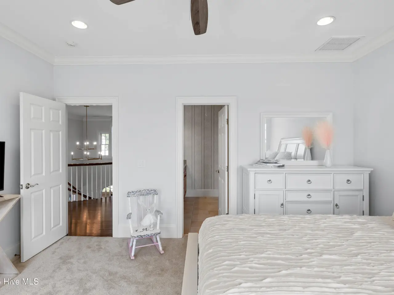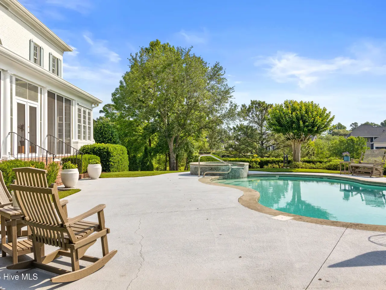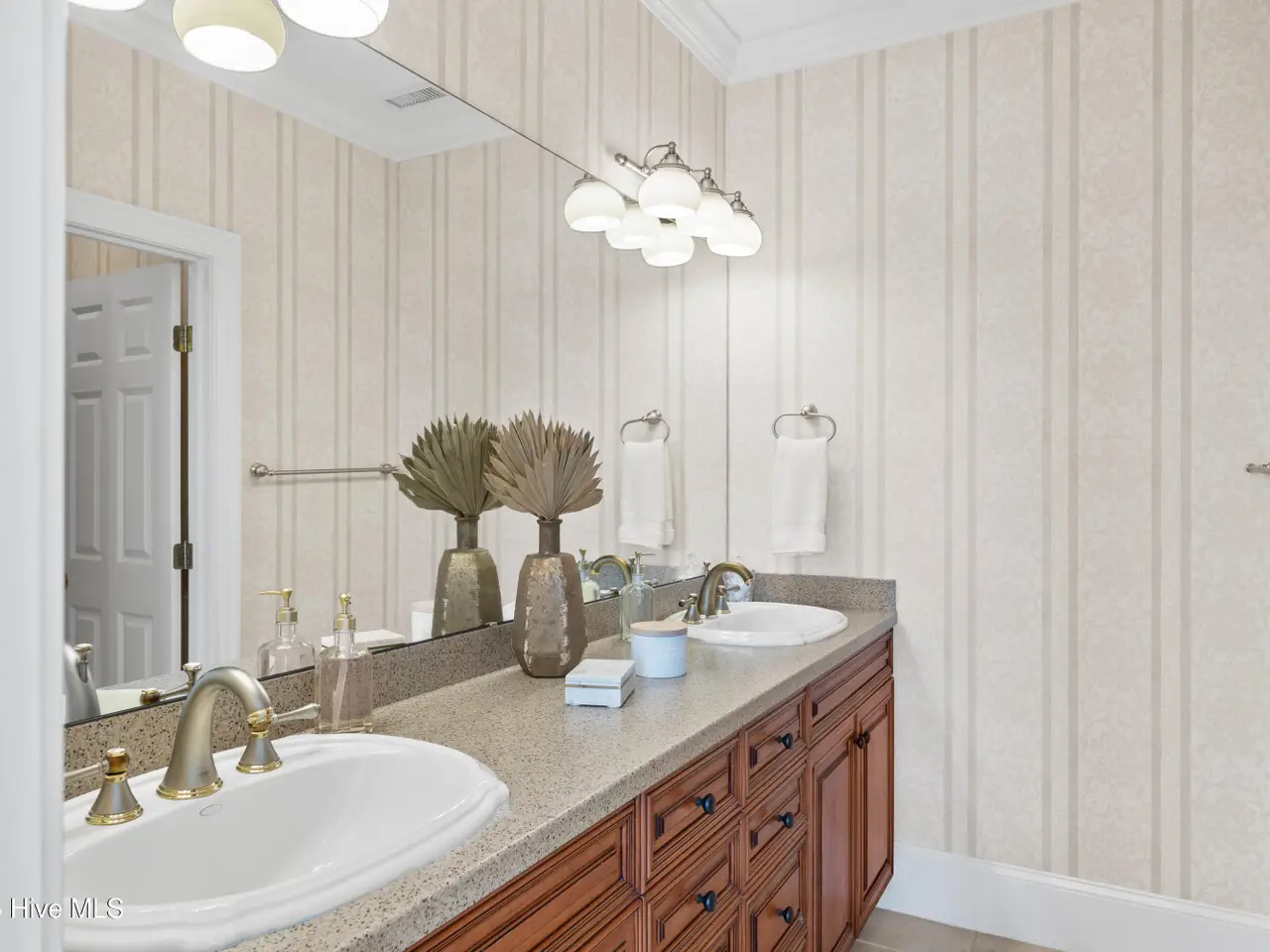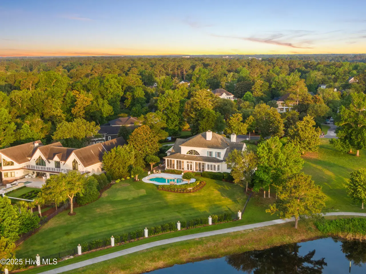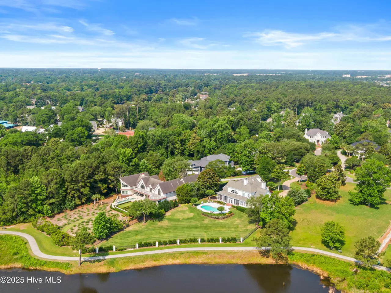 Welcome to 2220 Moreland Drive on the stunning Landfall Lake with breathtaking views. As you pull up to this stately home you will notice the great curb appeal, large driveway, and 3 car garage. As you step inside, your eyes will be drawn straight to the gorgeous view of the lake and even views of the Intracoastal waterway. The open foyer has a formal dining room to the right and a living room to the left complete with a gas fireplace. The family room is center in the house with a wet bar, gas fireplace, and leads to a lovely screened-in porch. The updated kitchen is light and bright with quartz countertops, ceiling-height cabinets, and a Wolfe range. There are two powder rooms downstairs plus a spacious laundry room. The master bedroom is also on the first floor positioned perfectly to wake up to heavenly views. Over the garage is a large bonus room that would be make a great fifth bedroom as it has a huge ensuite bathroom, the bonus room is currently being used as a home gym. There are 3 additional bedrooms upstairs plus a loft/flex space which would make a great playroom, media room, or office. One of the best features of this property is the high elevation of this almost one acre lot complete with a pool, spa, patio, and built-in grilling area just off the kitchen. You can start or end your day with a walk around the idyllic Landfall Lake which is right in your backyard. Whether you want to relax or entertain, this house checks all the boxes.