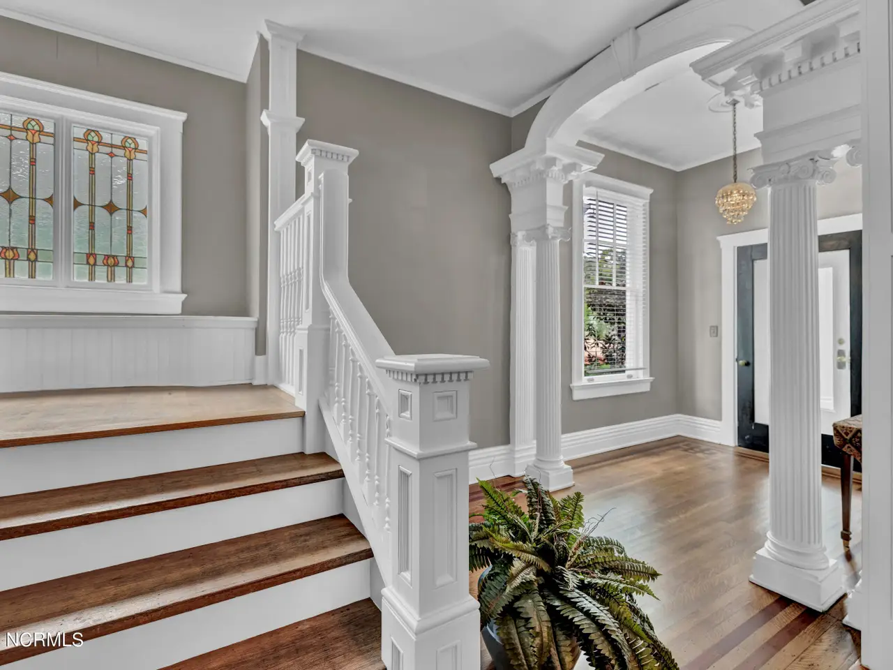 Step into the past at the Northrop-Graham House, an exemplary Neoclassical Revival-style residence that captivates with its grand 2.5-story façade. Welcoming you is a wrap-around front porch, setting the tone for an inviting entry into the home. Step through the front door to discover an impressive foyer, complete with a breathtaking oversized entry hall that is sure to enchant all your guests. The house boasts original features, including hardwood floors with intricate inlaid details, three sets of functional double pocket doors, and a single door gracing the living areas. The formal dining room, adorned with a coffered ceiling, is adjacent to the original solarium. Eight fireplaces with detailed mantels add to the historic charm. Over the years, the current owner has meticulously restored many features, and now, they are ready to pass the torch to a new owner. This presents a wonderful opportunity for someone with a passion for preserving and appreciating historic homes. This residence has borne witness to decades of history, and now it's your turn to create lasting memories in this living piece of Wilmington's past. The location is unbeatable, offering a short stroll through the Historic District to the revitalized Riverwalk and downtown area. Here, you'll find a plethora of restaurants, shops, as well as music and theatrical venues, providing an enriching cultural experience right at your doorstep.