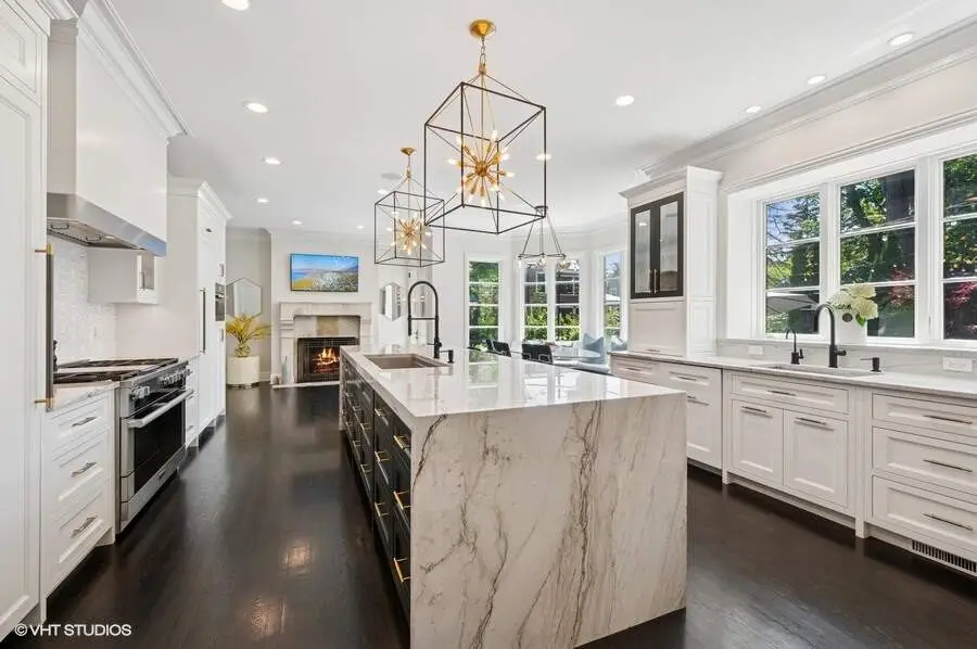 Incredible Coveted Home with 5 bedrooms, 5.2 bathrooms, 3 garages on 1/3 acre property boasts Winnetka address and Kenilworth School District. Built in 2004, this beautiful brick home feels like new construction with a complete first floor renovation in 2019 and upgrades throughout the home. As you enter the sun filled foyer, you are greeted with an open floor plan and 9'.5" ceilings. Flanking the foyer is the spacious dining room with gracious bay windows and a separate den with built-in bookshelves, fireplace and gorgeous wood beamed ceiling. The formal living room boasts floor to ceiling windows, limestone fireplace and opens into the fabulous kitchen. The kitchen is completely new from 2019 and is a chef's dream. A twelve-foot oversized island with a quartzite waterfall finish hosts custom cabinetry, generous workstation sink, custom cabinetry and island seating space. The incredible Miele appliances include a Six Burner Cooktop, 48" Dual Fuel Range with Steam Hook Up, Speed Oven, Warming Drawer, Convection Oven with Steam Hook Up and Griddle. The Miele Master Cool Built-In 30" Refrigerator and Miele Master Cool 30" Built-In Freezer make storing food a dream come true, especially when you utilize the walk-in pantry. There are two dishwashers and two sinks in the kitchen, both oversized with accessories, disposal, and an insta hot/cold filtered water dispenser. Last but not least, the built in Miele Combo steam oven adds to easy, healthy and efficient cooking. The eat-in kitchen area with custom, built-in banquet seating is nestled between the sunny bay windows. Anchoring the kitchen is the limestone fireplace making this room truly the heart of the home. From the kitchen patio doors, step out onto an outdoor entertaining space that is perfect for entertaining or relaxing in the great outdoors. The built-in bluestone bar area along with a wood burning fireplace, outdoor television, built-in gas grill, seven person all-season resort spa are included on the 1/3 of an acre outdoor playground. Moving back inside, the second floor primary suite has vaulted ceilings, separate closets and a primary bathroom with double sinks, oversized shower and Jacuzzi tub where you can gaze at the moon through the skylight. There are three additional bedrooms on the second floor, all en-suite. The laundry room is conveniently located on the second floor with folding area and built-in cabinets and sink. The lower level has an incredible recreation area with kitchenette, granite countertops, island for seating, cabinetry, a double sink, Fisher Paykel Double Dishwasher Drawers, a mini refrigerator, microwave, and a built-in wine closet. Enjoy the theatre space, exercise room, gracious 5th bedroom, full bathroom and storage galore! There are two separate garage areas: a two car garage and an additional one car garage all attached to the home equaling a 3 car attached garage with EV vehicle charger. The exterior front of the house welcomes you with an over sized circular brick driveway, with professional landscaping and lighting on the entire property. Newer roof, new hot water tanks, new thermostats and central vacuum system make this home move in ready! The home is conveniently located near schools, train, and a block and a half from Lake Michigan. This home is meticulously maintained in a prime location.