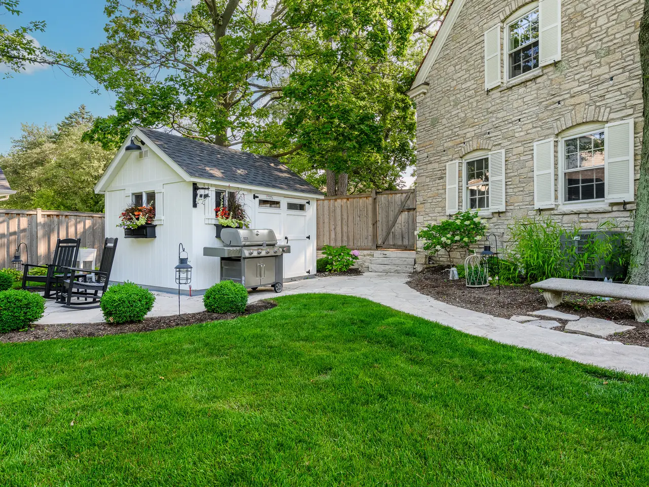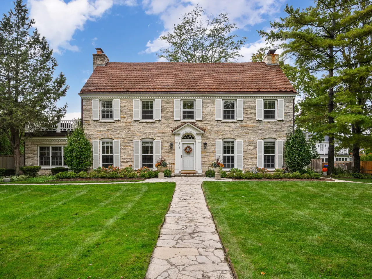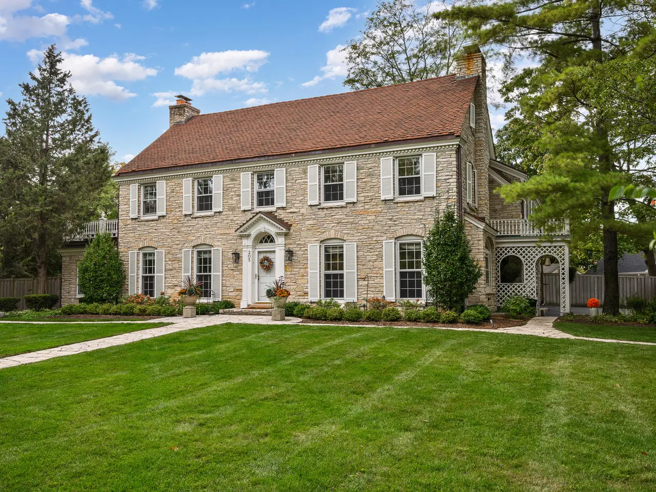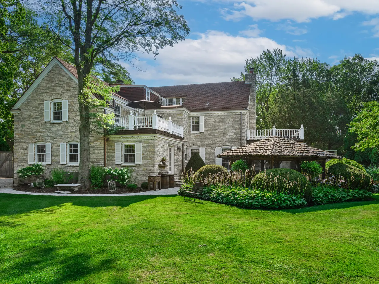 Beautifully renovated lannon stone luxury residence steps from town, train and the lake. Enter through the grand center hall that leads to both the dining room with floor to ceiling windows and an inviting living room with wood burning fireplace and views of the lush yard. The renovated Chef's kitchen features custom cabinets, high-end appliances including a La Cornue range, double oven, beverage fridge, soapstone counters and a butcher block island with prep sink. The first floor is complemented by the perfect game room leading to a back patio and dramatically decorated library/office offering a perfect retreat that opens to a patio overlooking the expansive 6/10+ acre lot. Ascend to the second floor, where a beautiful brand new primary spa suite with soaking tub, separate shower, a spacious walk-in closet and a walk out deck. Three additional bedrooms, two sharing a Jack and Jill renovated bath, and one with a 2nd private renovated en-suite bath complete the second-floor living space. The third floor offers versatile updated finished space with a 5th bedroom, ideal for an additional office along with a family room and additional storage rooms. The beautifully renovated lower level space is perfect for family entertaining around the custom built-in bar space and wood-burning fireplace. Additional exercise room/play area, wine closet, ample storage, updated powder room, and all new laundry area. The lush property boasts an expansive lawn with stone patios, outdoor fireplace complemented by a charming decorated gazebo screened porch, a new shed. The 2-car attached and heated garage with new epoxy floors. Two new double exterior doors. New fireplace liners, 2 new sump pumps with battery back ups, updated boiler auto-feeder and steam traps, Space Pac & 2 heat and A/C splits for the 3rd floor & basement water heater. New outdoor fireplace, shed, flagstone walkways, patio extensions, redwood fence, exterior lights, sprinkler system, copper gutters and asphalt driveway - all new. This home has been well maintained, updated and ready to move right in!