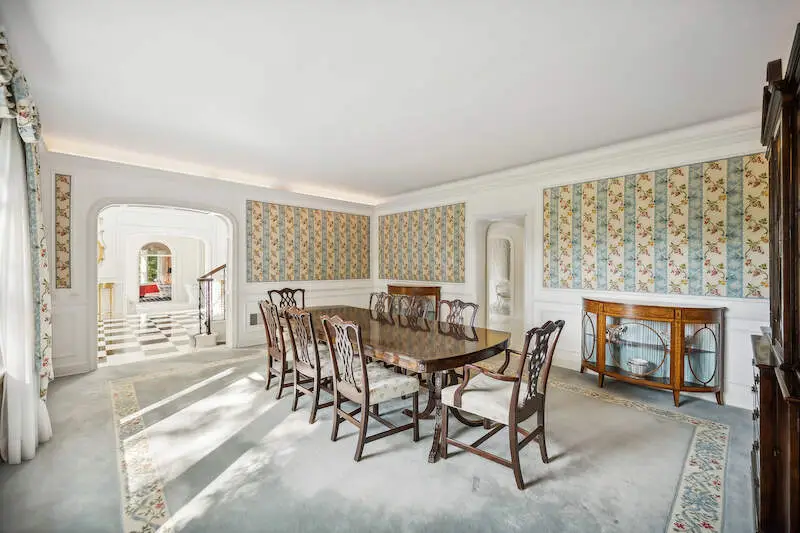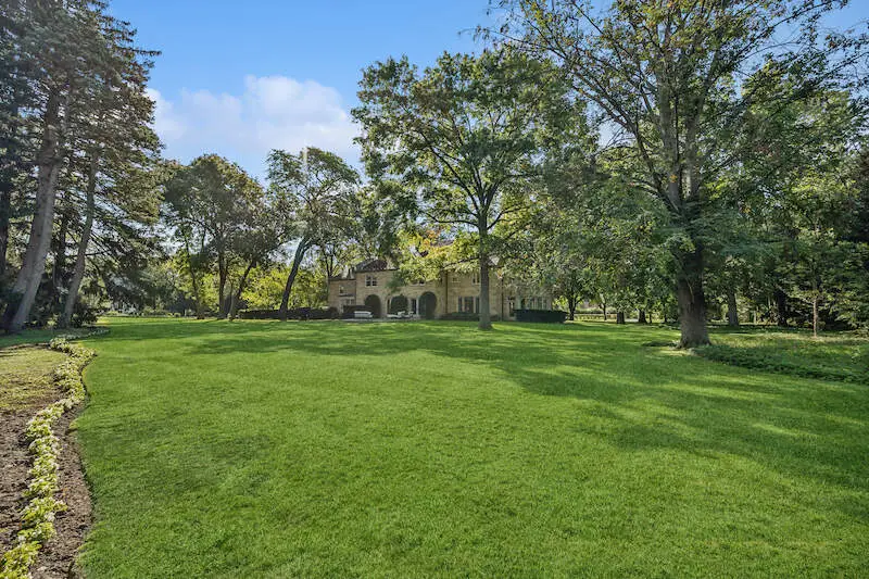 Nestled down a winding, private road on 1.9 meticulous park-like acres, this grand, almost 10,000 square foot residence exudes luxury and timeless elegance. The front entrance is set apart from the road by a sweeping circular drive bordered by private hedges and mature trees. Upon entering the stately, two-story foyer with a 25' ceiling, bridal staircase, black and white marble floor, formal powder room and two coat closets, you are greeted by the sophistication that defines this home. The main level features a spacious, step-down living room with inlaid floors, a marble, gas and wood fireplace, and two picture windows that fill the room with natural light. Pass through the living room to an adjoining, architecturally beautiful solarium with a slate floor, that offers panoramic views of the lush grounds surrounding the residence. The formal dining room also features inlaid floors, and picture window. The handsome family room with custom cabinetry, lighting, millwork, and a marble, gas and wood fireplace, provides the perfect space for entertaining and relaxation while overlooking a yard large enough for a pool. The family room seamlessly flows into a large kitchen area that includes not only a custom kitchen but also a breakfast room, butler's pantry, back staircase, and mud room. The butler's pantry has an ice maker, second dishwasher, and beverage refrigerator. Upstairs, the luxurious primary bedroom suite boasts a marble, gas and wood fireplace, walk-in closet, and an adjoining sun room with stunning views of the grounds. It is perfect for family gatherings, office space or nursery. Adjacent to the dual sink primary bath with a vanity table, there is a winding staircase that leads upstairs to the third floor where you will find a beautifully crafted wardrobe/dressing room with many custom built-ins, lighting and mirrors. This lovely area conveniently leads to an exercise room, powder room and an oversized cedar closet, and this completes the third floor. There are four additional family bedrooms on the second floor, two share a Jack and Jill bathroom, one has its own en-suite, and the fifth bedroom suite offers versatile living space. The fifth bedroom and sitting room, located near the back stairs, welcomes an in-law arrangement, live-in nanny, or out-of-town guests. The full basement offers at least another 2,444 square feet of living space and includes a large recreation room with fireplace, billiard room, wet bar, spacious laundry room, large cedar closet, another storage room with built-in shelving, and a powder room. The yard is professionally landscaped, private, and nearly two acres is quite hard to come by in Winnetka. Additional features of this remarkable residence include: a three car, heated, attached garage, magnificent craftsmanship, glorious room sizes, four fireplaces, a slate roof, copper gutters, circular driveway and uncommon privacy. This residence is a true gem in the heart of Winnetka. Live a life of luxury and sophistication in this exceptional home. Woodley Road, with its canopy of mature trees, is a coveted private oasis, and yet is conveniently located near town, train, restaurants, schools and a public golf course. This property is not located in the flood plane.
