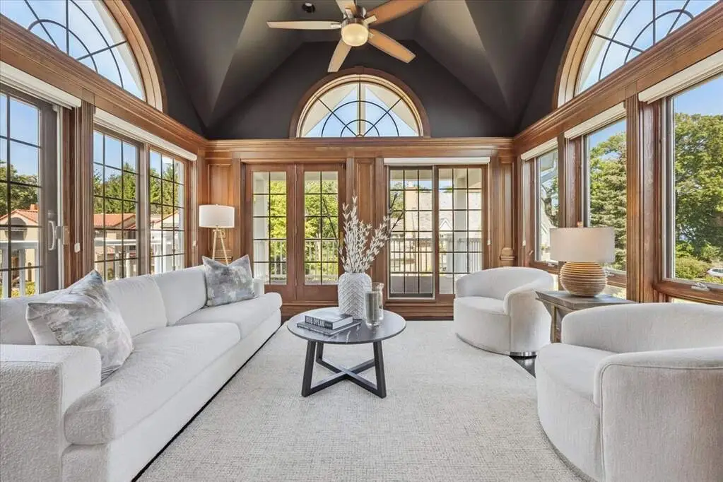 East Winnetka One-of-a-Kind Home with Private Beach Access. Tucked away on an exclusive private lane, this exceptional East Winnetka residence offers a rare opportunity to enjoy privacy, luxury, and direct access to your own private beach. Recently renovated, 5 bedrooms, 3 baths + 2 half baths home seamlessly blends timeless elegance with modern sophistication, featuring premium finishes and meticulous attention to detail throughout. Step into the welcoming foyer, greeted by a bright and airy open-concept floor plan. The spacious living room is ideal for entertaining guests or enjoying quiet family moments. A stunning, newly updated family room features a newer fireplace and custom, built-in bookcases, creating a warm and inviting ambiance. Adjacent to the dining area, NanoWall 10'+ folding doors open to a beautifully landscaped patio, perfect for outdoor dining and relaxation. French doors lead into a heated floor cozy four-season room, filled with natural light and offering lake views. Currently used as a workout area, this flexible space can easily transform into a den, sunroom, office, or playroom. Upstairs, the primary suite is a serene sanctuary, blending timeless elegance with refined comfort. Enjoy the warmth of the fireplace, take in stunning lake views from two private balconies, or retreat to the wood-paneled sitting room-a peaceful space filled with natural light and breathtaking views, perfect for lingering over morning coffee or unwinding at your day's end. The second floor also features a newly designed laundry room, three generously sized bedrooms, and two fully renovated bathrooms. Beautifully refinished hardwood floors flow throughout the first and second levels, adding warmth and character! The third floor 5th bedroom offers a perfect space for teens or guests, featuring a large loft area, skylights, and an additional balcony, creating a bright and airy space for relaxation, study, or hobbies. The lower level is designed with both functionality and entertainment in mind. Enjoy a newly renovated media/recreation room with a beverage center featuring a sub-zero bar fridge, custom storage including a cedar closet, a renovated half bath, and an additional laundry room. A well-organized mudroom provides direct access to the attached two-car garage, while a heated driveway ensures convenience in all seasons. Curb appeal is unmatched, thanks to recent exterior upgrades that include new James Hardie plank siding, all-new balconies and decks designed by Airoom, and newer rear Lannon stone stairs leading to the garage. A dedicated dog run is also included. Enjoy your private beach, shared only with the five homes on your lane, making it the perfect escape just steps from your door. This prime East Winnetka location is close to Lloyd Park, top-rated schools, the Metra train, and the newly redesigned Plaza Del Lago shopping and dining district. It's also just minutes from downtown Winnetka. Combining luxury, comfort, privacy, and a truly unbeatable location, this East Winnetka gem is truly a one-of-a-kind home. Don't miss your opportunity to make this exceptional home yours!