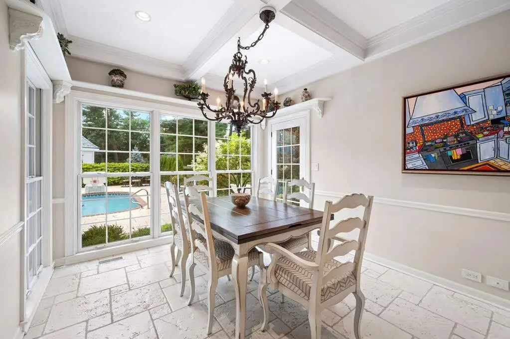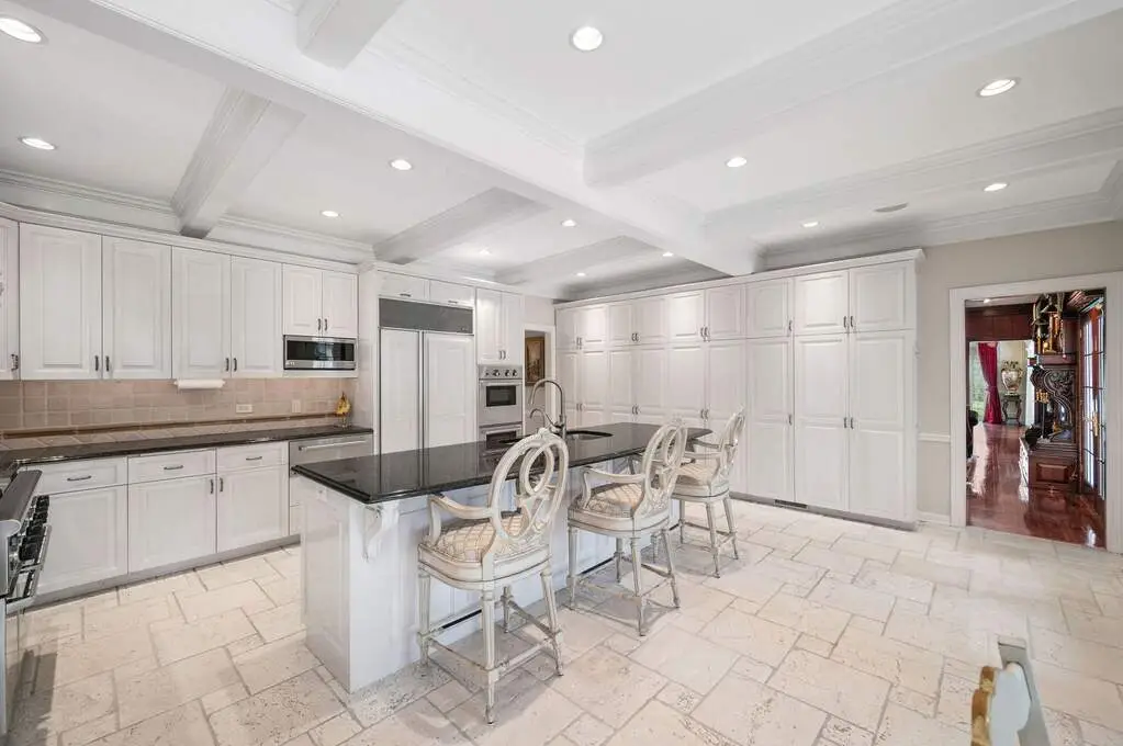 Perfectly nestled on one of Winnetka's finest enclaves, this stately 6-bedroom, 5.2-bath Georgian estate offers a rare fusion of architectural elegance, exceptional craftsmanship, and resort-style amenities. Set on nearly an acre of meticulously manicured grounds, the estate is introduced by a sweeping circular drive that highlights the home's classic brick facade, brand-new DaVinci slate roof, columned portico, and timeless symmetry. Together, these elements create a striking first impression and set the stage for interiors that exude sophistication at every turn. Step inside the grand "bookmatched" marble-floored foyer, where a dramatic staircase sets a refined tone for the home. To one side, the formal living room offers an inviting gathering space anchored by a marble fireplace, while the formal dining room is perfectly scaled for both intimate dinners and large-scale entertaining. A massive, richly paneled home office with dramatic coffered ceilings offers an impressive and inspiring workspace. At the heart of the home, the gourmet kitchen boasts professional-grade appliances, an oversized island, full wall of pantry storage, and a sunlit breakfast area all overlooking the magnificent pool and grounds. A butler's pantry ideally placed between the kitchen and dining room provides effortless entertaining. Just beyond, the kitchen opens to a cozy family room with a fireplace and wet bar, while French doors lead to an expansive covered terrace framed by graceful curved archways and cooled by ceiling fans. This spectacular outdoor living space features a brand-new outdoor kitchen fully equipped for grilling and al fresco dining, leading to the sparkling pool, surrounding patio and yard, creating a seamless setting for summer entertaining and secluded relaxation. A convenient first-floor laundry/mud room right off the 3-car heated garage with epoxy flooring and 2 powder rooms adds everyday ease. Upstairs, the elegantly appointed primary suite offers dual walk-in closets, a dedicated vanity area, and a spa-inspired bath with separate vanities and radiant heated floors. Four well-proportioned additional bedrooms, each with generous closets and either en-suite or adjoining baths, provide comfortable accommodations for family and guests. This level is further enhanced by expansive linen closets, abundant storage, and a dedicated luggage room. The impeccably finished lower-level rivals any private club, featuring a state-of-the-art home theatre, richly paneled billiards and game room, fully outfitted bar, expansive fitness studio, wine cellar, guest suite, and a dedicated woodshop for refined hobbyists or craftsmen. Located in one of Winnetka's most prestigious locations and served by its award-winning schools, this remarkable estate perfectly balances classic sophistication with modern luxury. Combining architectural pedigree, unparalleled amenities, and impeccably landscaped grounds, this is a home to be cherished for generations. Furniture available for sale.