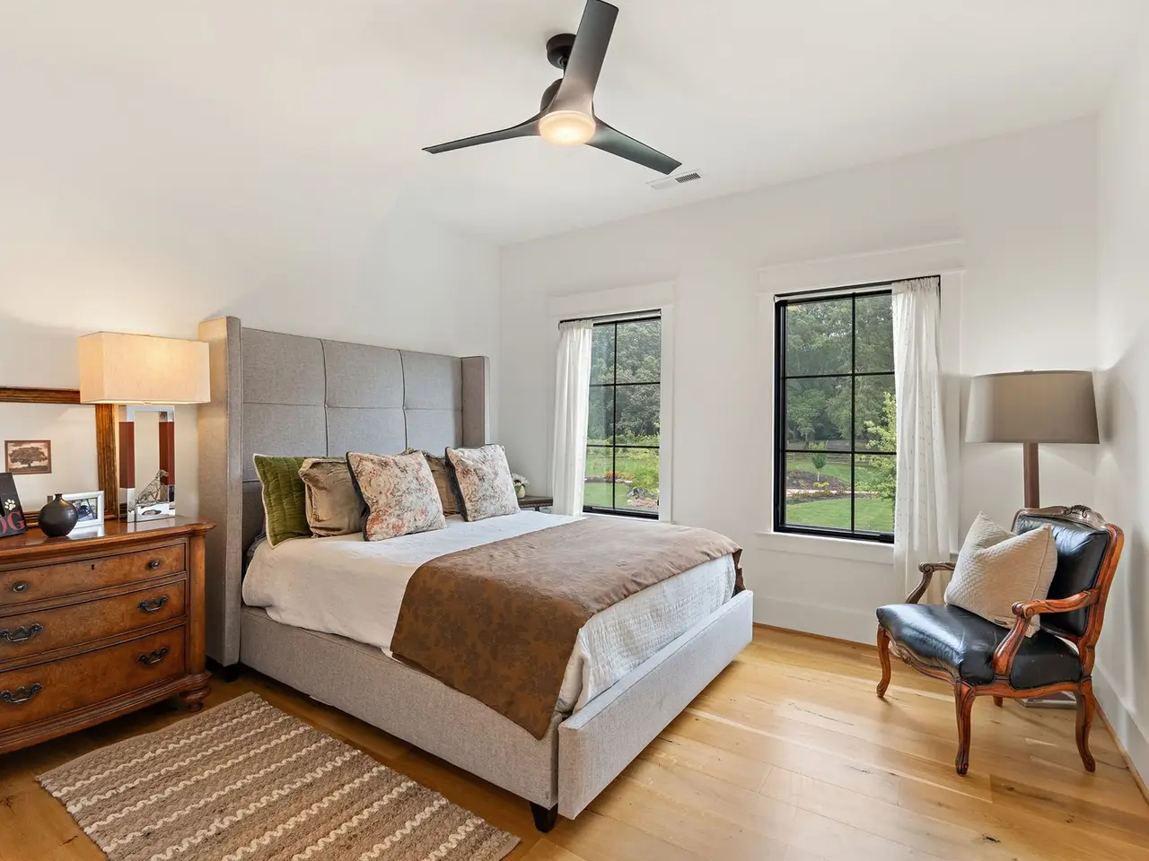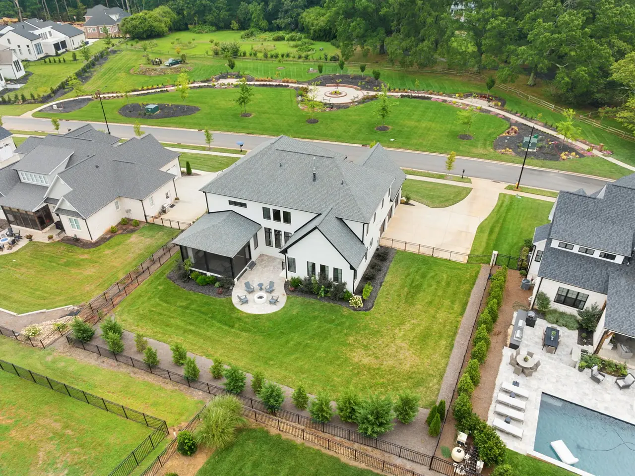 Generous millwork throughout sets the tone for this stunning Brookberry Farm home by local builder Marc Nevin. This 5-bed, 4.5-bath home welcomes you with a grand entrance, flanked by a formal dining room and cozy den, leading into the open-concept kitchen and living room. The chef's kitchen, with waterfall quartz island, Wolf gas cooktop, double ovens, and hidden pantry, opens to the two-story living room with sleek fireplace and natural light. The luxurious primary suite boasts a spa-like bath and large walk-in closet. Main-level highlights include breakfast nook, mudroom/drop zone, laundry, and half bath. Upstairs offers four bedrooms, three baths, bonus room, second laundry, and attic storage. Outdoor living features front views of the neighborhood common area, screened porch with fireplace, patio with firepit, and fenced backyard. Enjoy all of Brookberry Farm's amenities -clubhouse, pool, trails, and more?making this a truly exceptional home for entertaining and everyday living.