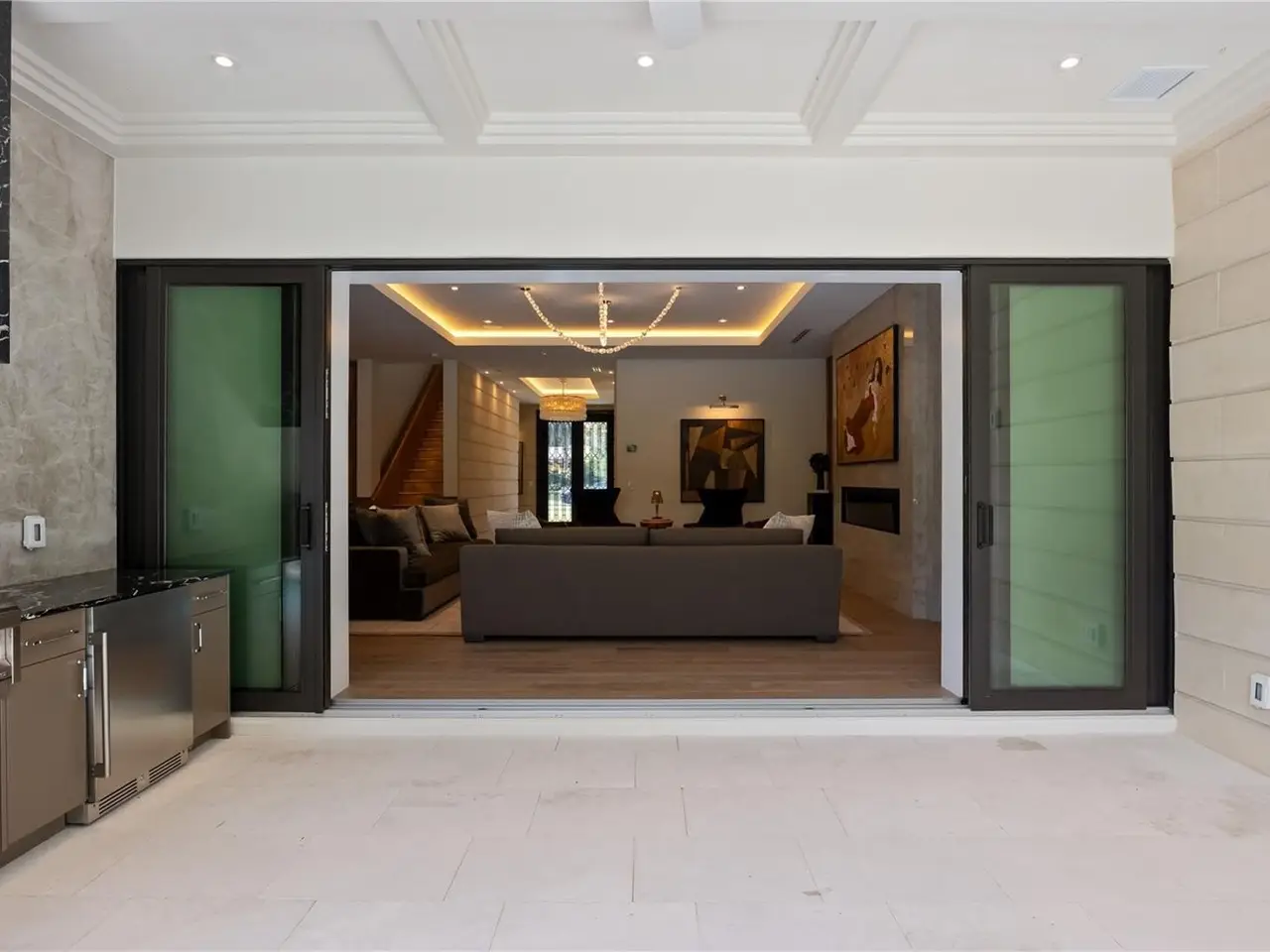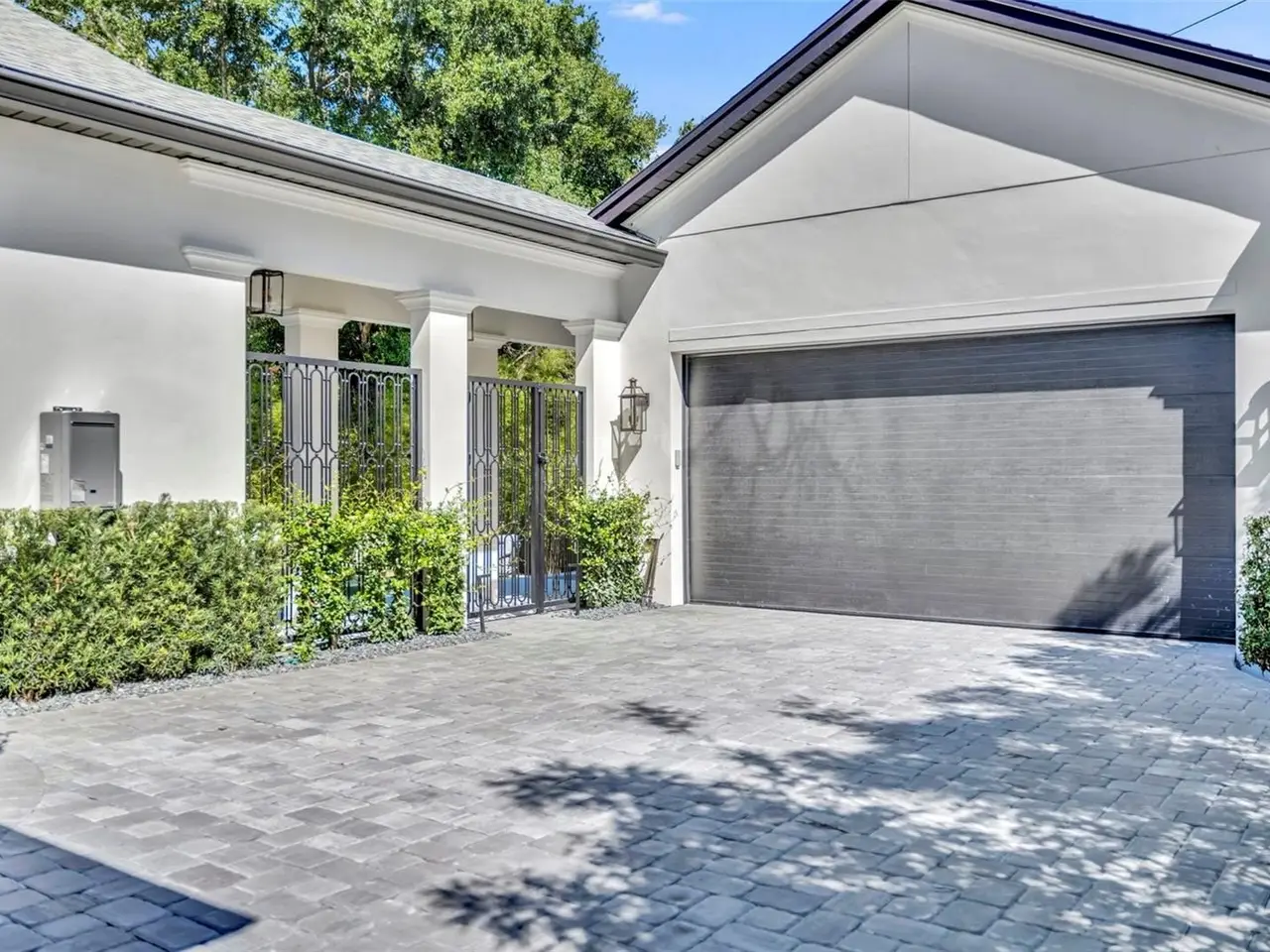 An expression of modern luxury by SMRS Design and Cole Homes, The Maybourne masterfully blends Neoclassical elegance with Art Deco sophistication—all just steps from Winter Park’s iconic Park Avenue. A curved, manicured driveway leads to a grand entrance featuring bespoke double doors with electromagnetic privacy glass, setting the tone for the artistry within. Inside, a European hotel–inspired foyer greets guests with precast stone-clad walls, inlaid marble flooring, and a Murano-style polyhedral chandelier. Two first-floor guest suites, each with its own bath, are adorned with rift-cut white oak millwork, curved ceilings, and crystal chandeliers. At the heart of the home lies the main salon, where oak detailing and a deco-style stone fireplace with a holographic insert create an atmosphere of understated grandeur. The two-tone oak kitchen, wrapped in natural quartzite and anchored by a curved island and custom hood, features a curated suite of professional-grade appliances: • ILVE range • Miele refrigerator, freezer, and dishwasher • Sub-Zero wine and beverage preservation systems Adjacent, a dining area glows under a custom chandelier, while the powder bath impresses with wood and marble accents, an integrated stone sink, and a Saint Louis crystal faucet by Kallista. A scullery expands the culinary capability with a chef’s sink, Samsung Bespoke laundry and refrigeration, Wolf microwave drawer, and additional Miele dishwasher—ideal for both entertaining and daily ease. The first floor primary suite, discreetly hidden behind millwork, offers a serene retreat with an opulent closet system and a marble mosaic-clad bathing suite featuring Kohler digital shower technology and MTI tub. Upstairs, two additional ensuite bedrooms, a bonus room with walk-in closet, and a secondary laundry continue the home’s standard of refined luxury. Outdoors, the residence embraces resort-style living with a natural gas summer kitchen, infinity-edge pool, and 360-degree raised glass-tile spa. A two-car garage and porte cochere, both EV-ready, provide elegant utility. Modern conveniences include Lutron HomeWorks lighting and shade prewire, built-in SONOS audio zones, pre-installed speakers, and a commercial-grade Ubiquiti WiFi network ensuring flawless connectivity throughout. A feast for the senses, The Maybourne is more than a home—it’s a statement of artistry and craftsmanship, conceived for the most discerning Winter Park resident.