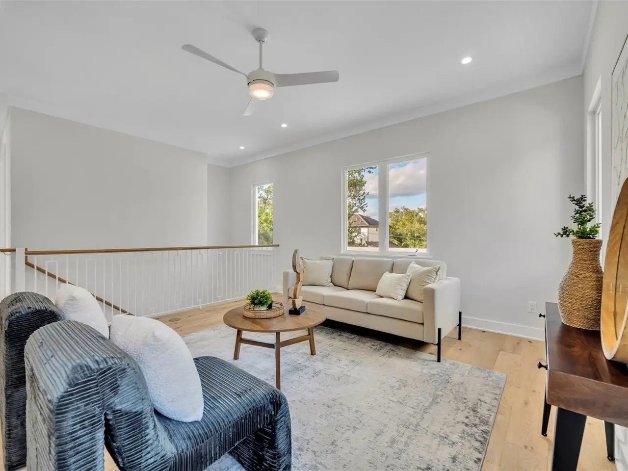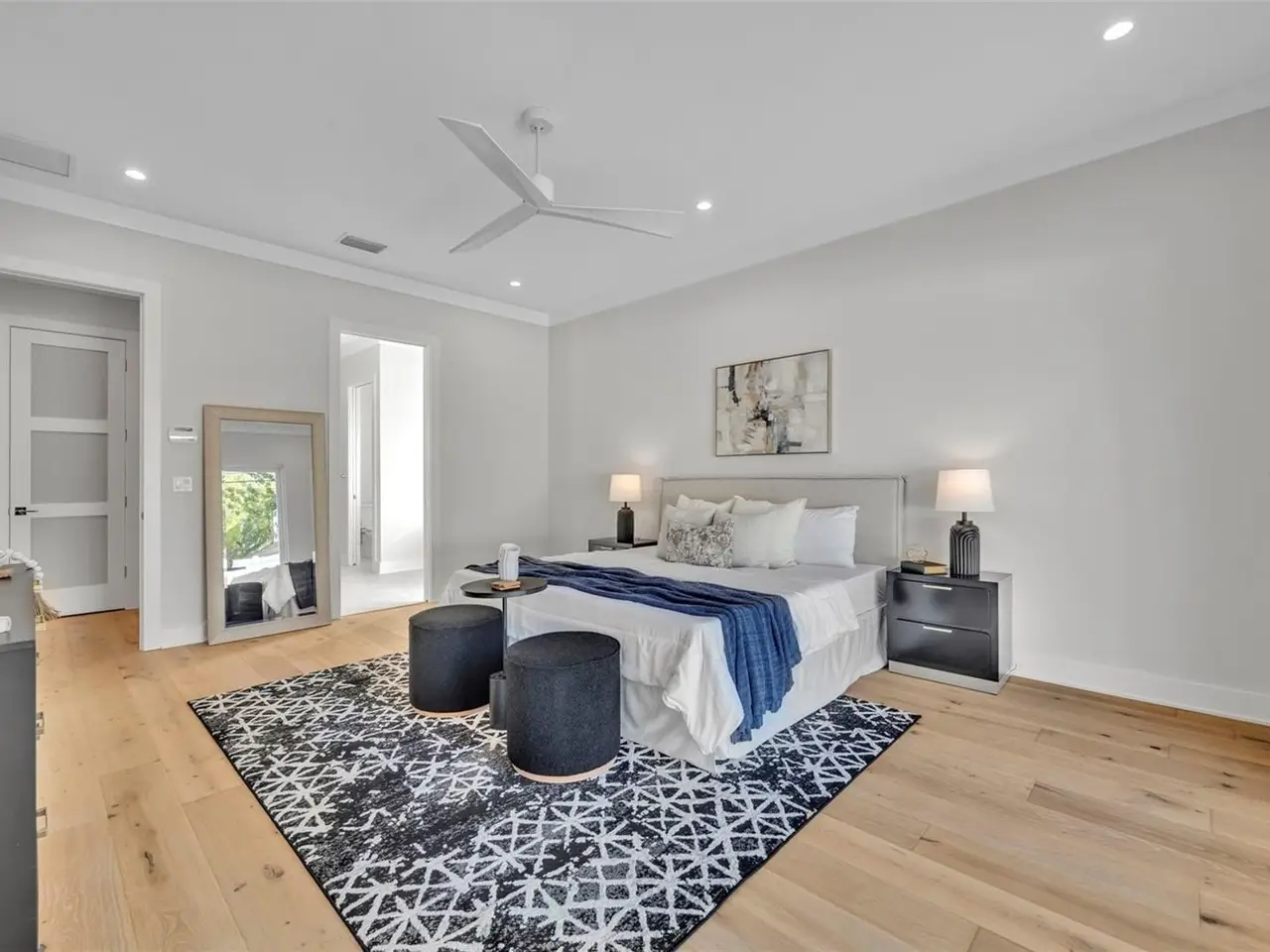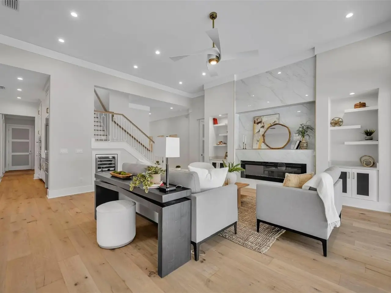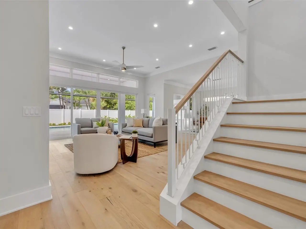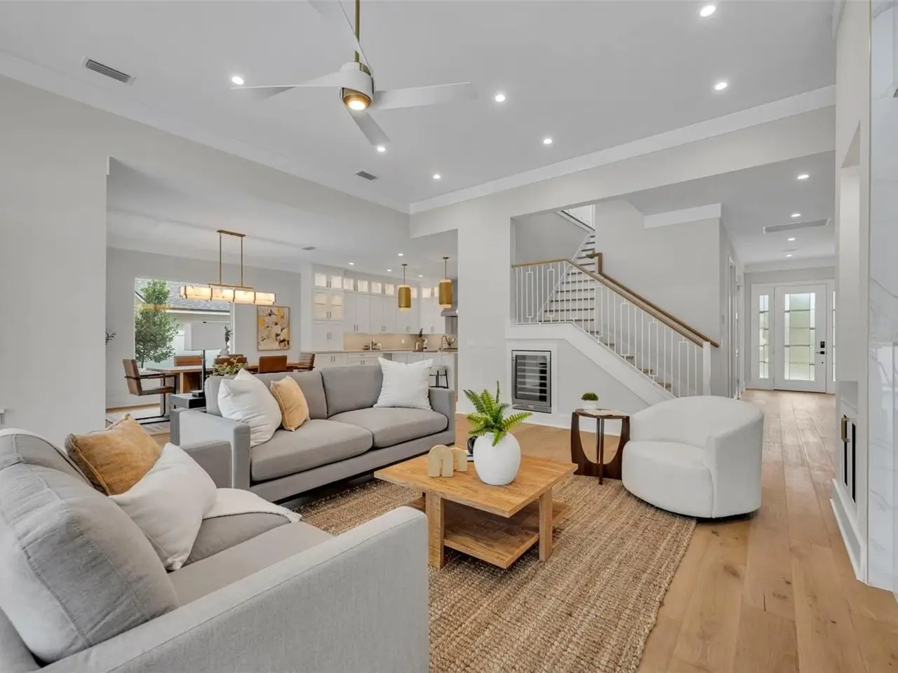 Introducing a stunning new custom home by Ellsworth Gallimore and Butler Ridge Development, ideally situated in a prime Winter Park neighborhood. This residence combines timeless elegance with modern luxury, showcasing exceptional design and craftsmanship throughout. The thoughtfully designed home features a marble front façade and professional landscaping. Inside, you’ll find an open, bright layout with high ceilings, wide-plank white oak floors, oversized picture windows, and refined crown molding. A welcoming flex space—perfect as a sitting room or den—greets you at the entry, across from another room ideal for a private office. The great room, at the center of the home, offers 12-foot ceilings, a sleek fireplace, and a full wall of sliding glass doors that open to the resort-style backyard. Designed for both entertaining and daily living, the open-concept kitchen, dining, and living areas flow seamlessly together. The chef’s kitchen impresses with a striking waterfall island, premium Thermador appliances, a dual-fuel range with a 6-burner gas cooktop, a third oven plus convection microwave, and an expansive custom pantry. A stylish mudroom and decorative laundry room complete the main level’s amenities. The primary suite on the first floor features direct access to the pool, a spa-inspired bath with a soaking tub, multi-spray shower, dual sinks with a large vanity, and a spacious custom walk-in closet. Upstairs, a loft-style bonus room connects to three additional bedroom suites, each with custom closets and ample storage. Outdoor living includes a saltwater pool with an elegant fountain feature, marble pavers, a summer kitchen with a built-in grill, sink, and beverage fridge, an outdoor bathroom, and a lush grassy area perfect for play or pets. Additional highlights include a two-car garage and zoning for top-rated schools—Lakemont Elementary, Maitland Middle, and Winter Park High. Walk to the Winter Park YMCA and Phelps Park, and enjoy being just minutes from vibrant downtown Winter Park. Elegant design, modern luxury, and a prime location—this exceptional new home offers the very best of Winter Park living.