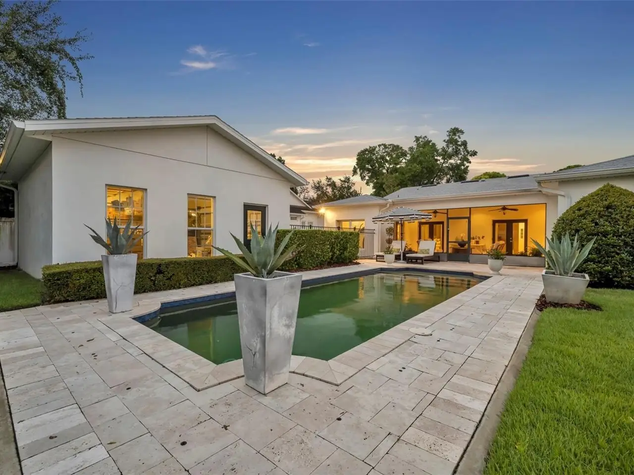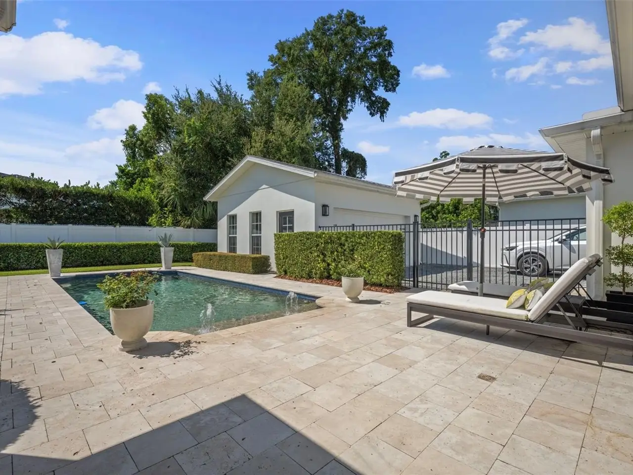 Welcome to this stunning SINGLE STORY five-bedroom home in one of Winter Park’s most desirable neighborhoods, where charming restorations and luxury new builds create a vibrant community feel. Designed with both beauty and comfort in mind, this open-concept home offers bright, welcoming living spaces and thoughtful upgrades throughout. Completely rebuilt in 2014 and tons of upgrades completed in 2025. The home sits on a 1/3-acre lot with 5 bedrooms and 3 ½ baths plus an office and features a 4-way split plan with privacy for all. Upon entering, you're greeted by an open floor plan with marble foyer and white oak engineered wood flooring. The Owners' Retreat is a true sanctuary, featuring newly sanded and smoothed walls with luxe finish, automatic Hunter Douglas shades and an artful chandelier. The brand-new spa-inspired bathroom (2025) showcases the best in design and function which includes Kohler Bask heated surface tub, private toilet room with heated seat, auto lid and integrated bidet. The primary bath also has a new expanded shower, a new double sink vanity and Kohler champagne brass fixtures. The Family/Gathering space with an open chef's kitchen includes a stainless gas range, French door refrigerator, waterfall Quartzite counters and touchless kitchen and bar champagne faucets. The great room has a modern electric fireplace and leads to a screened porch and overlooks the salt water pool and large fenced backyard. Black metal remote controlled gate leads to the large 2 car detached garage with a side entry for grocery and package drop off. Home has updated cameras and security with touch screen keypad. Smart home technology Lutron lighting to schedule and control lights with mobile or Google home. Redesigned Laundry and 1/2 bath with beautiful designer wallpaper and tile and Samsung washer/dryer integrated single unit. Ideally located in one of Winter Park's coveted neighborhoods, with easy access to Park Av, Phelps Park, YMCA and Rollins College. Excellent schools, Lakemont Elem, Maitland Middle and Winter Park High. This is a rare offering of a newer one-story home, that is move in ready in the heart of Winter Park. A Must See!