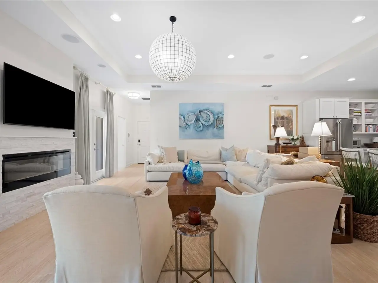 Modern electric fireplace in great room