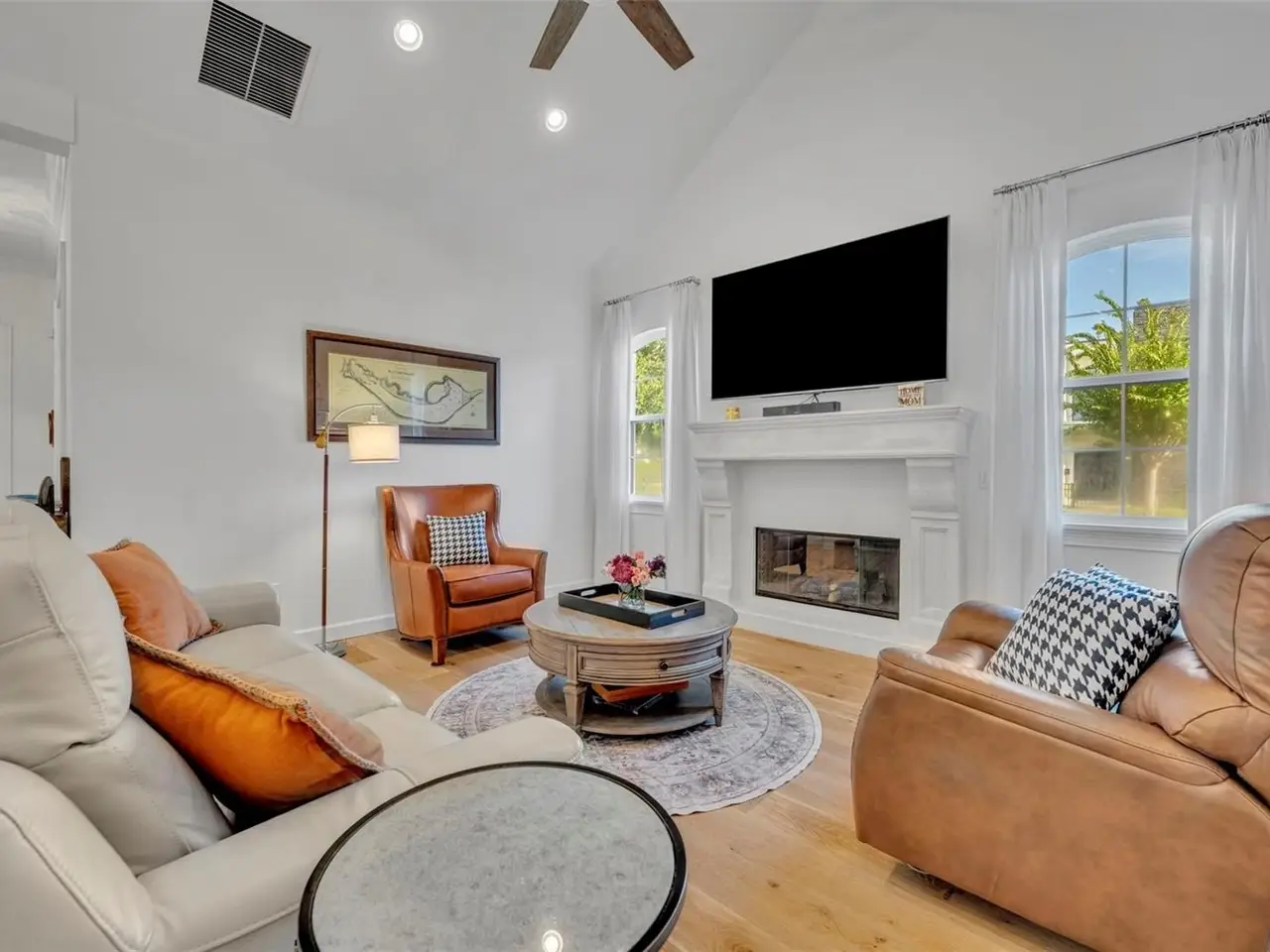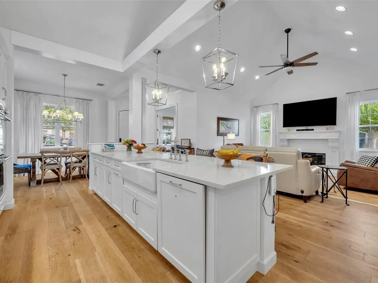 Cathedral ceiling with natural gas fireplace